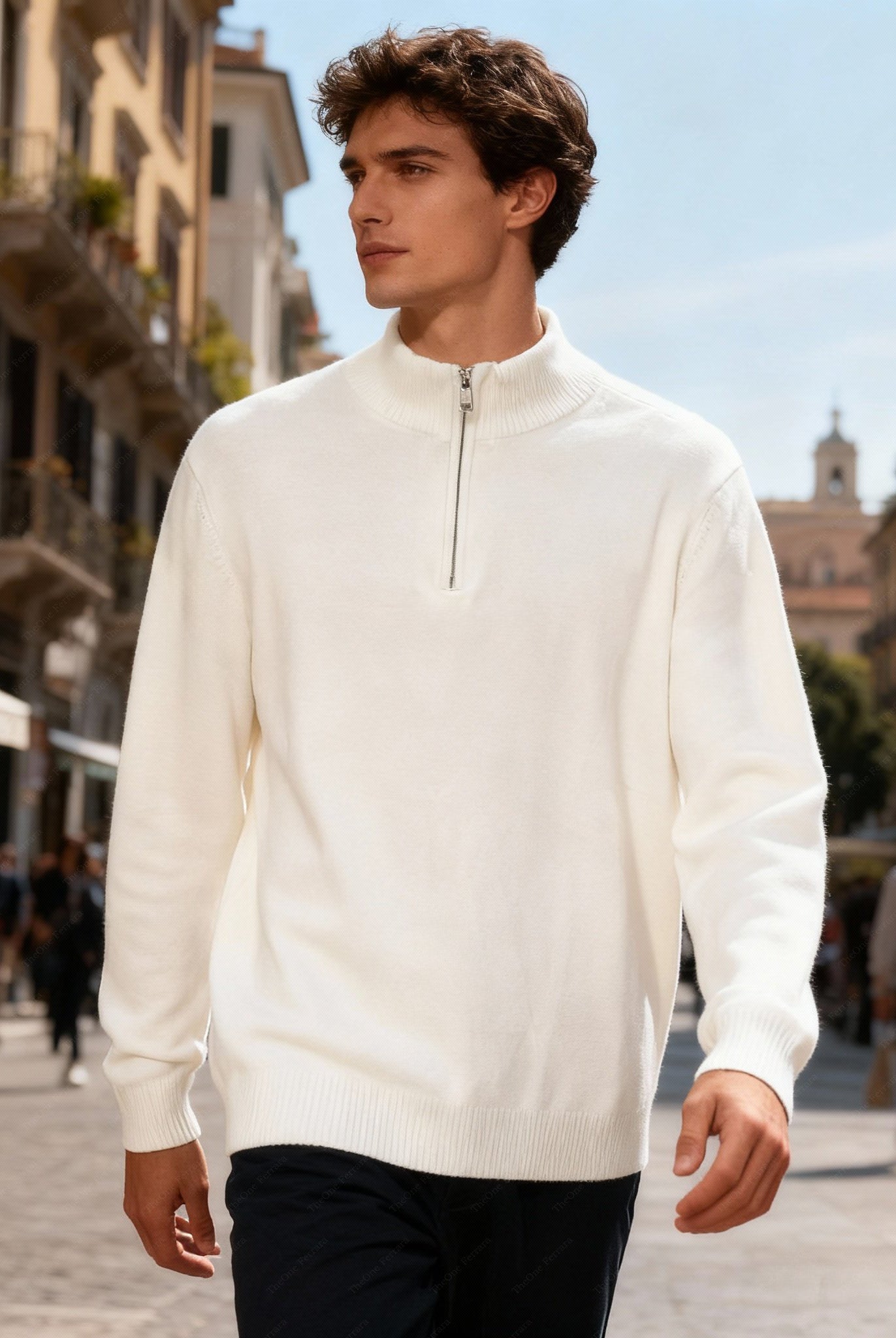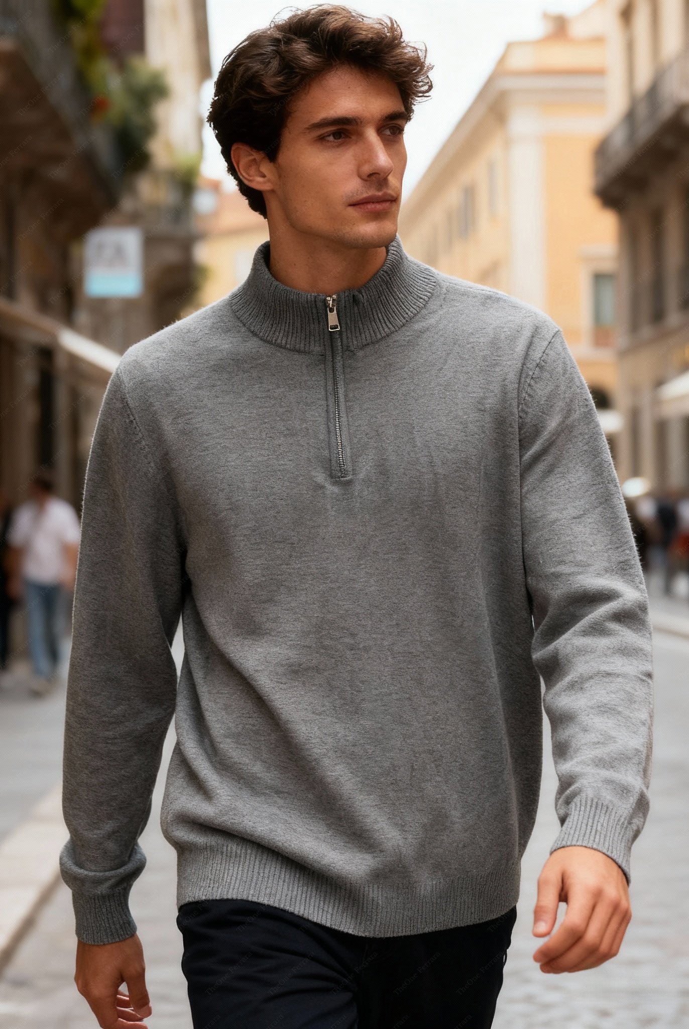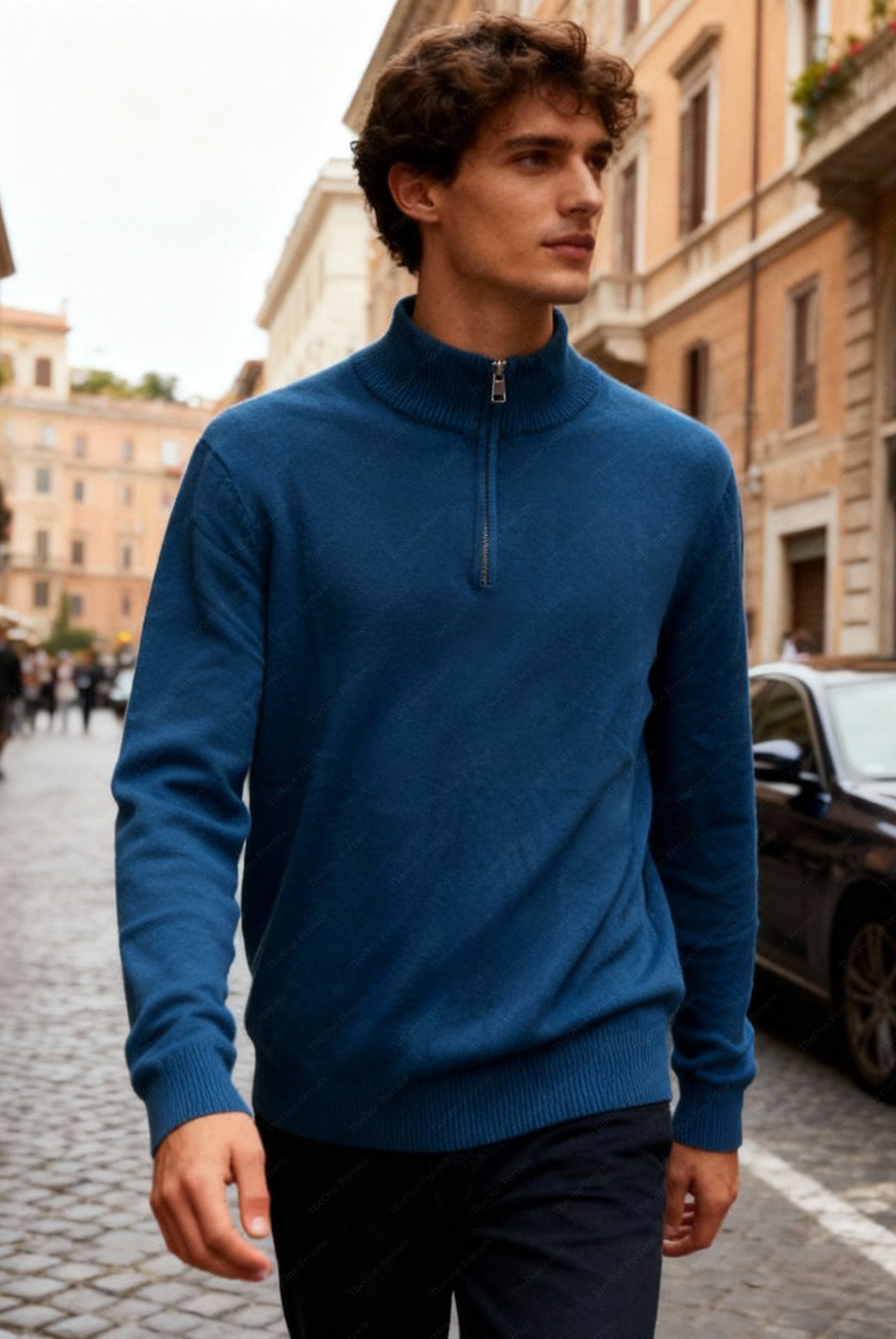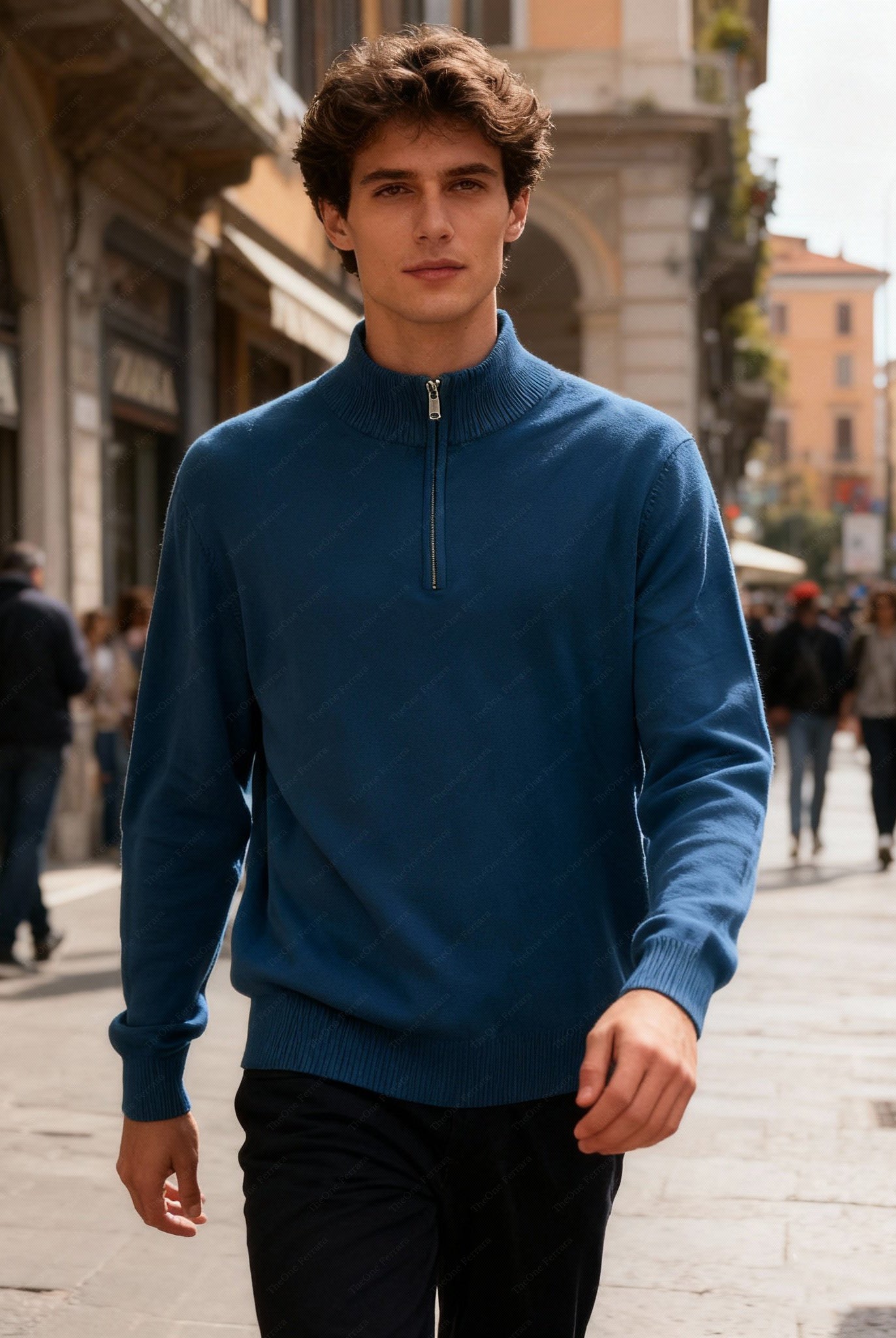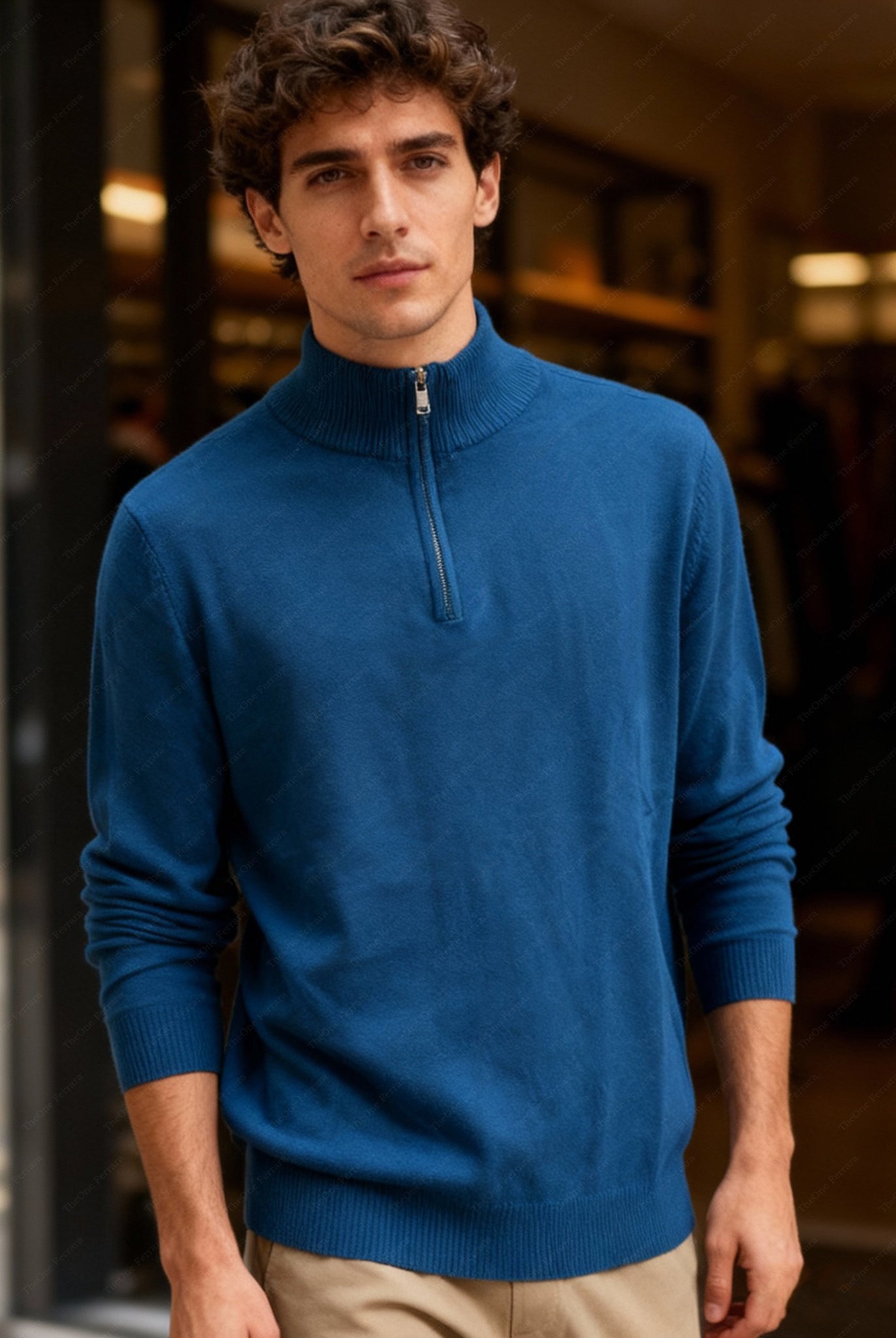 Maglione Uomo Mezza Zip - Pullover Viscosa Modal Collo Alto c t-007