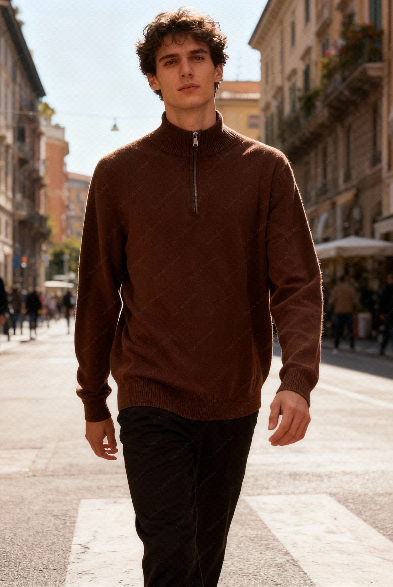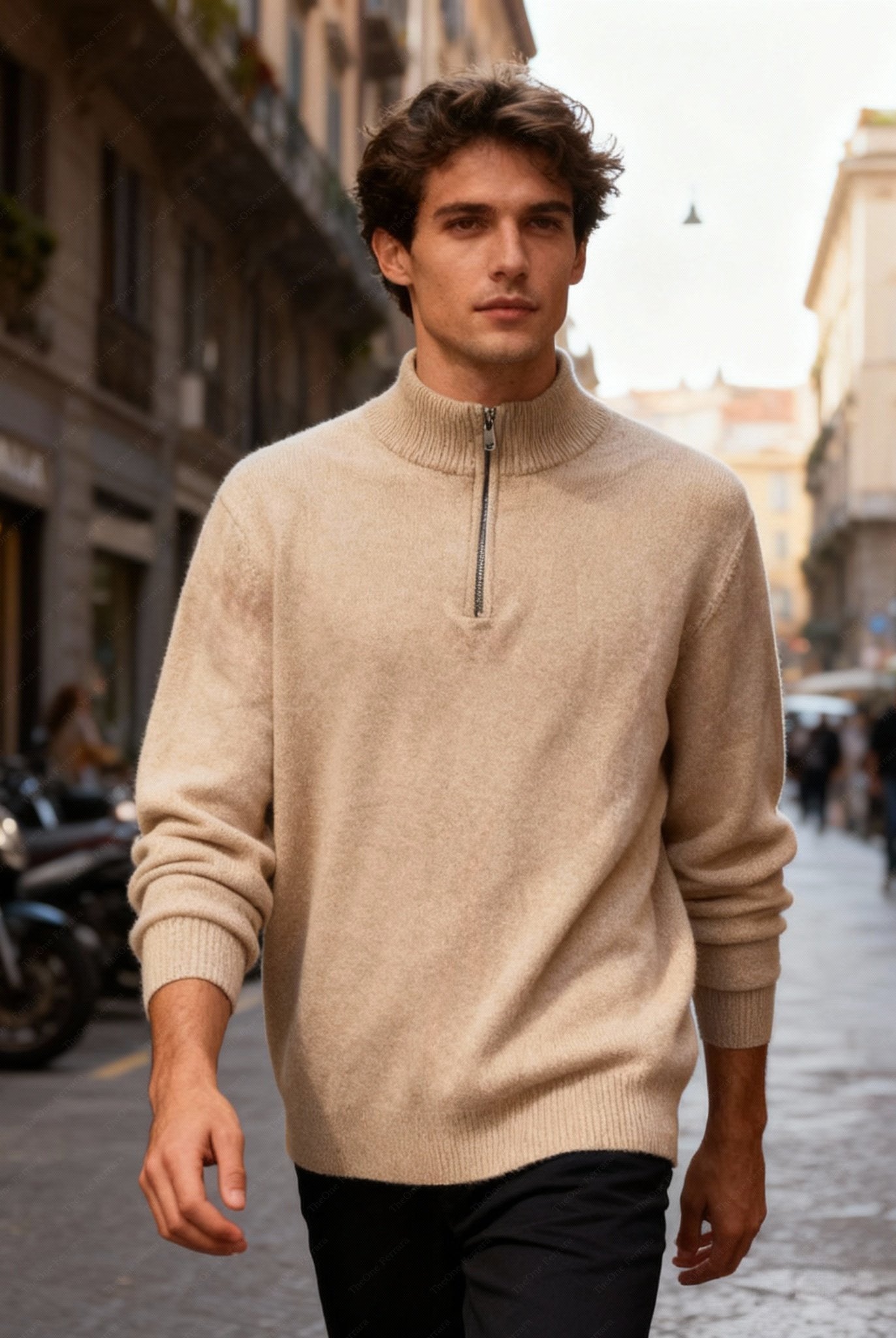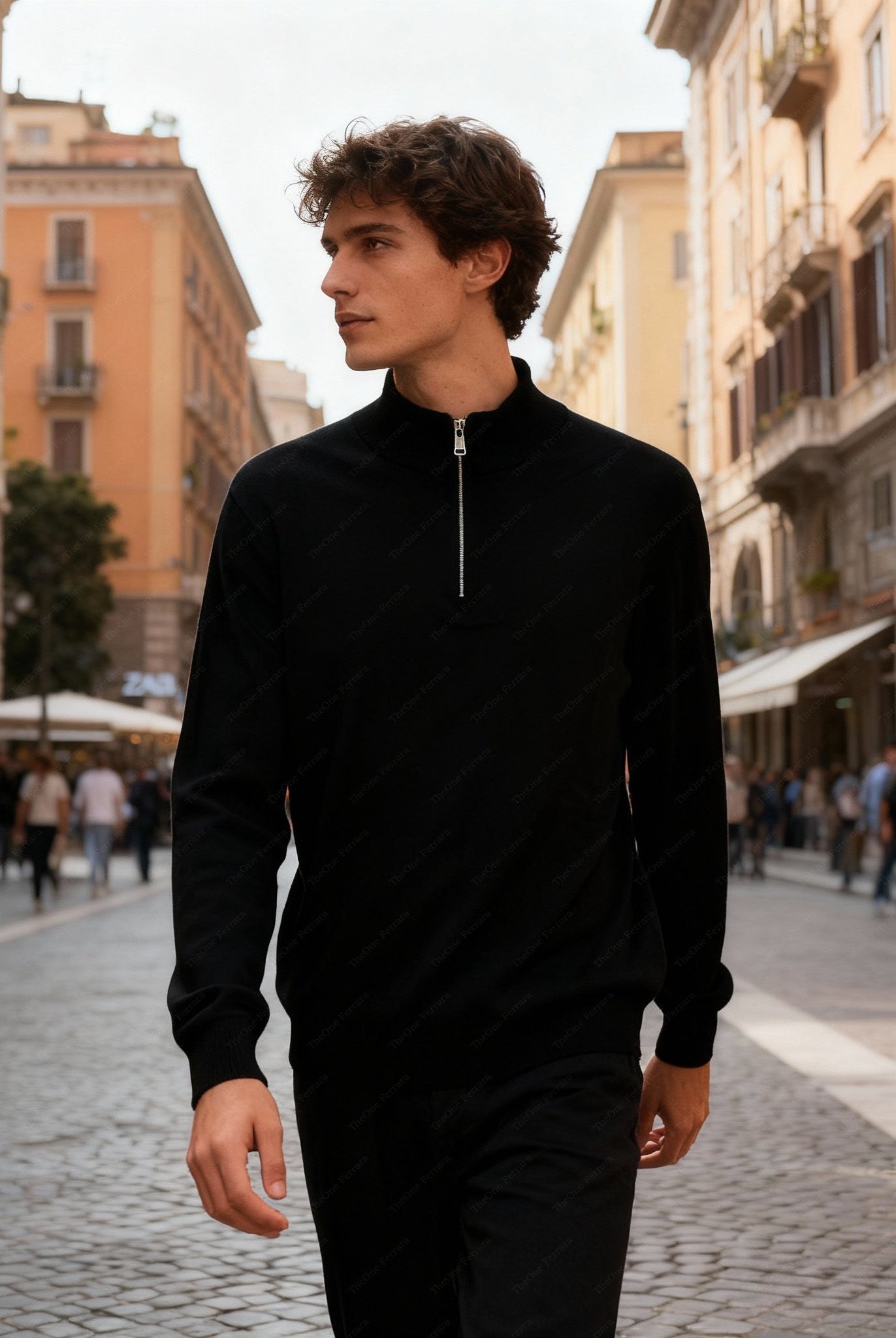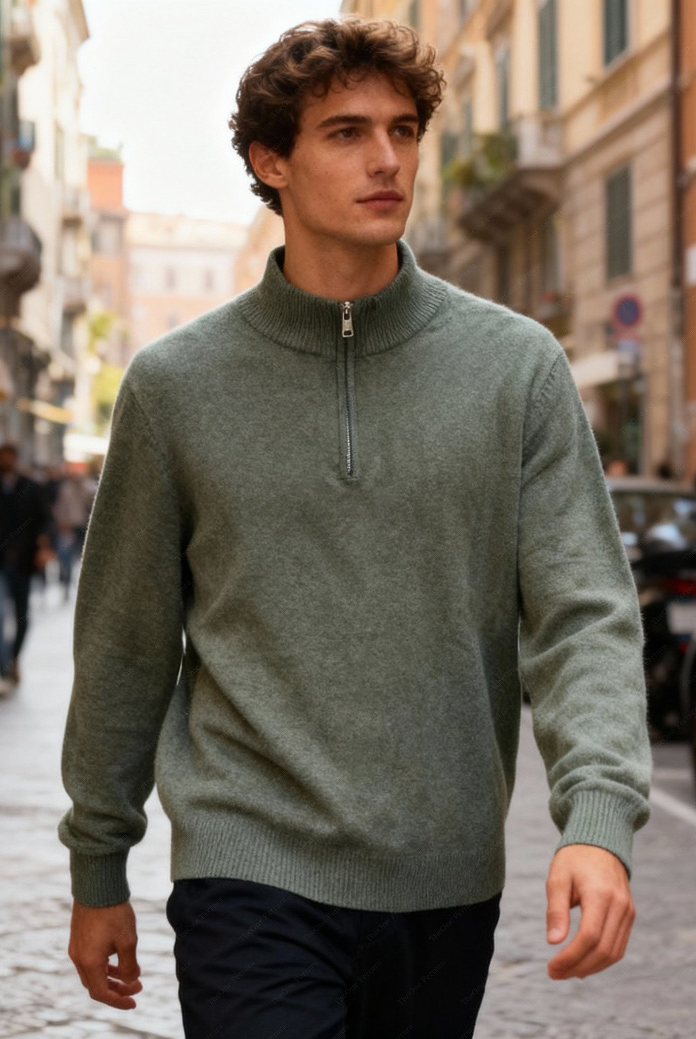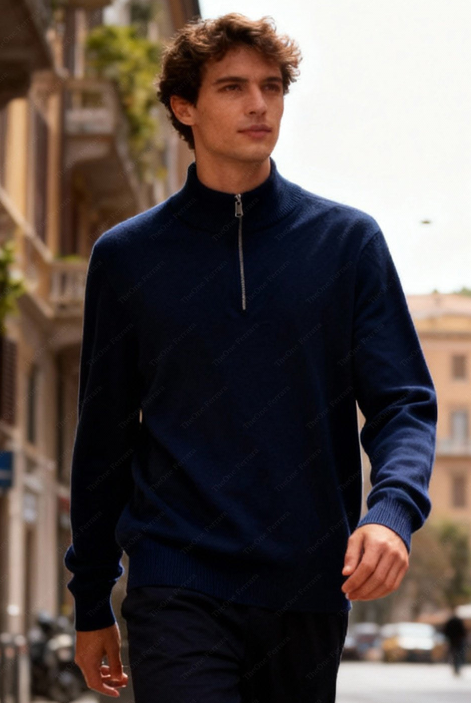 Maglione Uomo Mezza Zip - Pullover Viscosa Modal Collo Alto c t-007