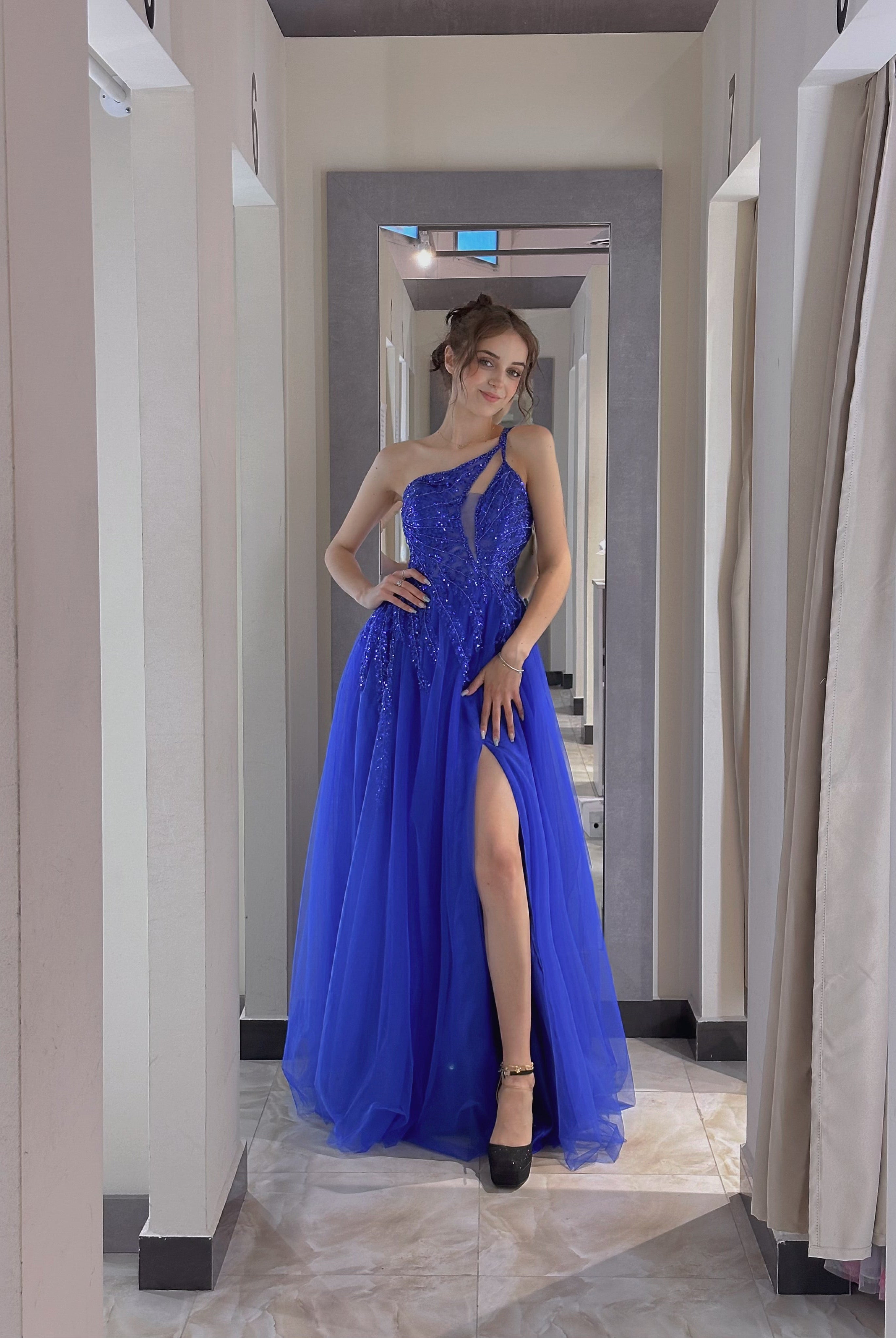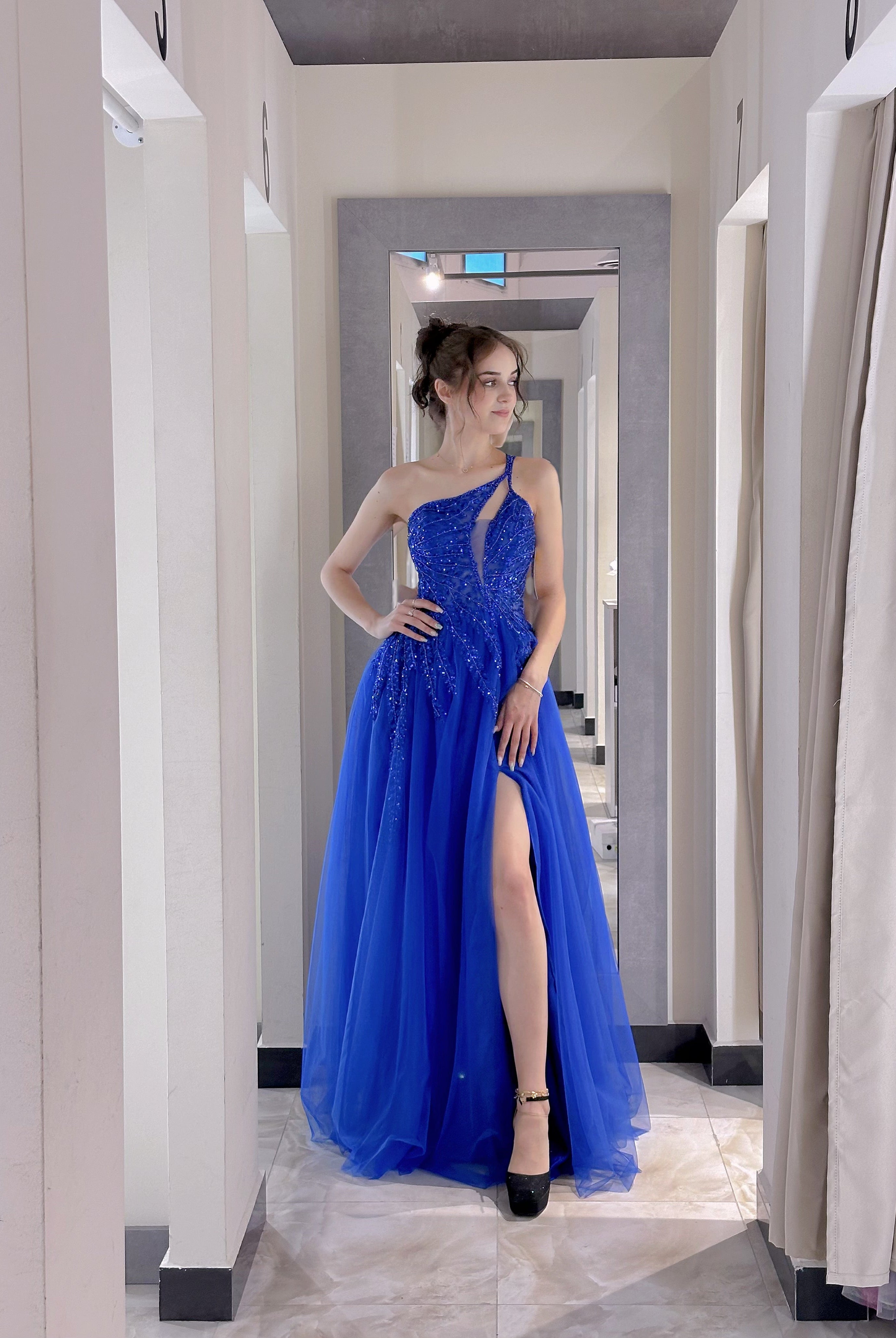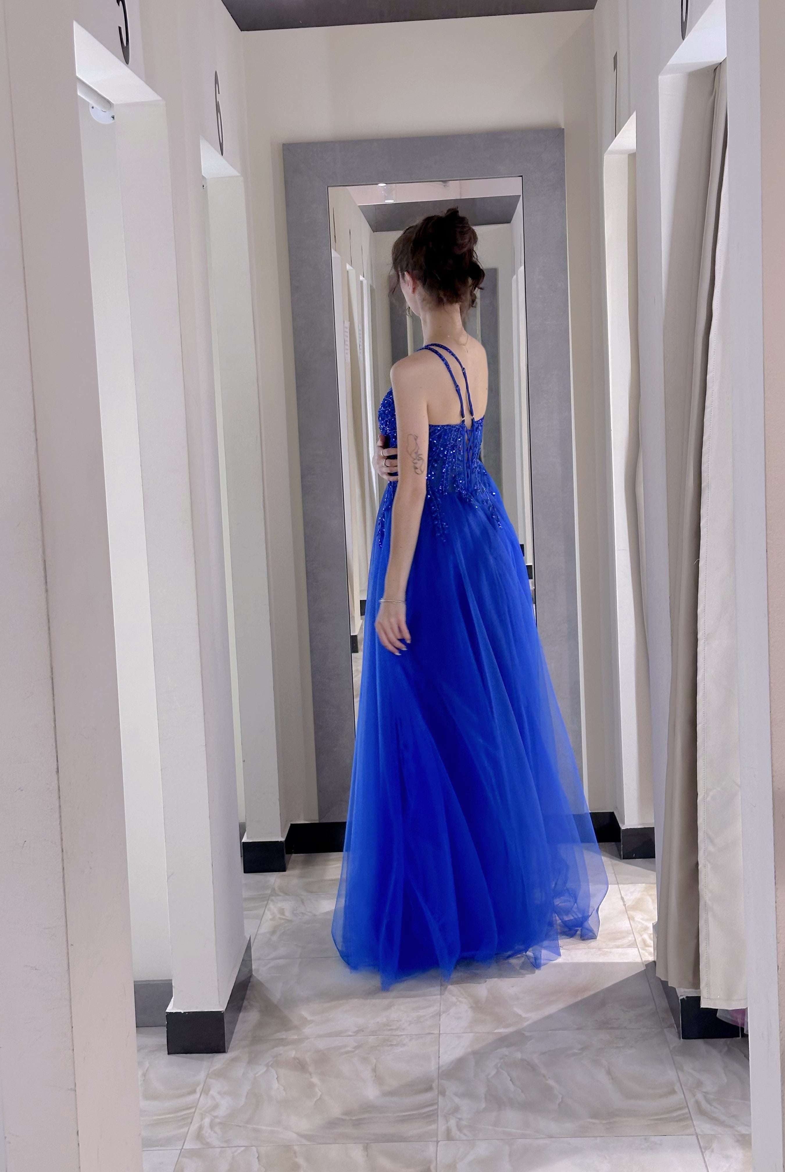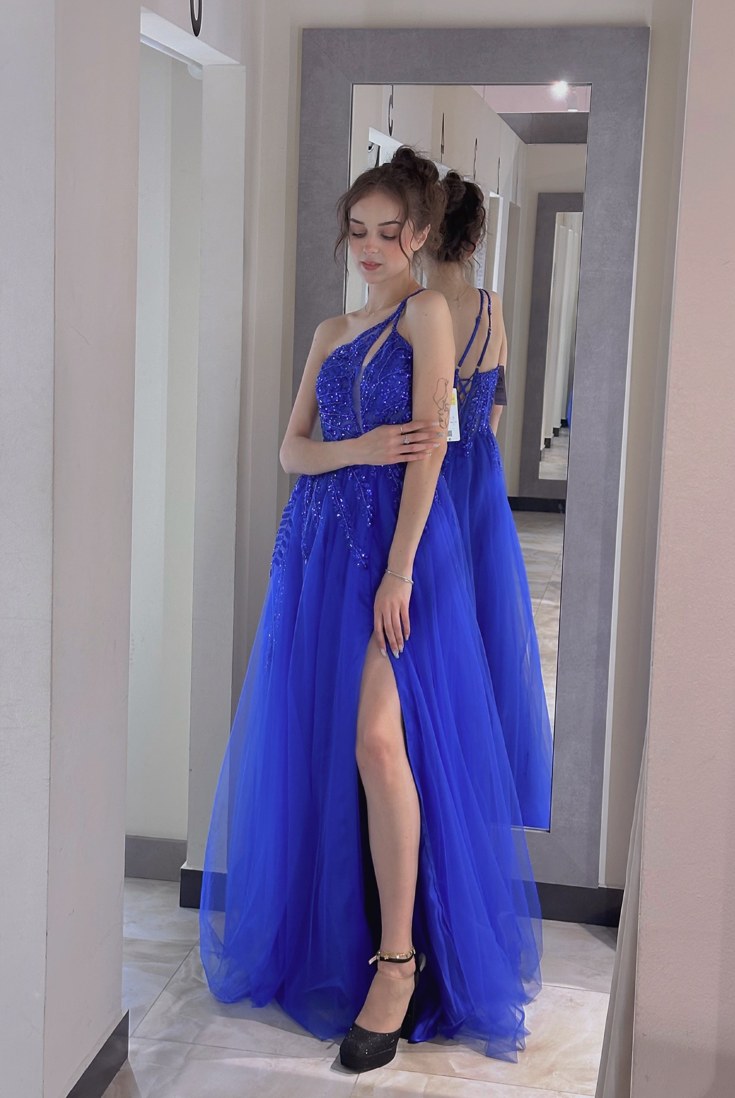 Abito da Sera Asimmetrico in Tulle Blu Reale