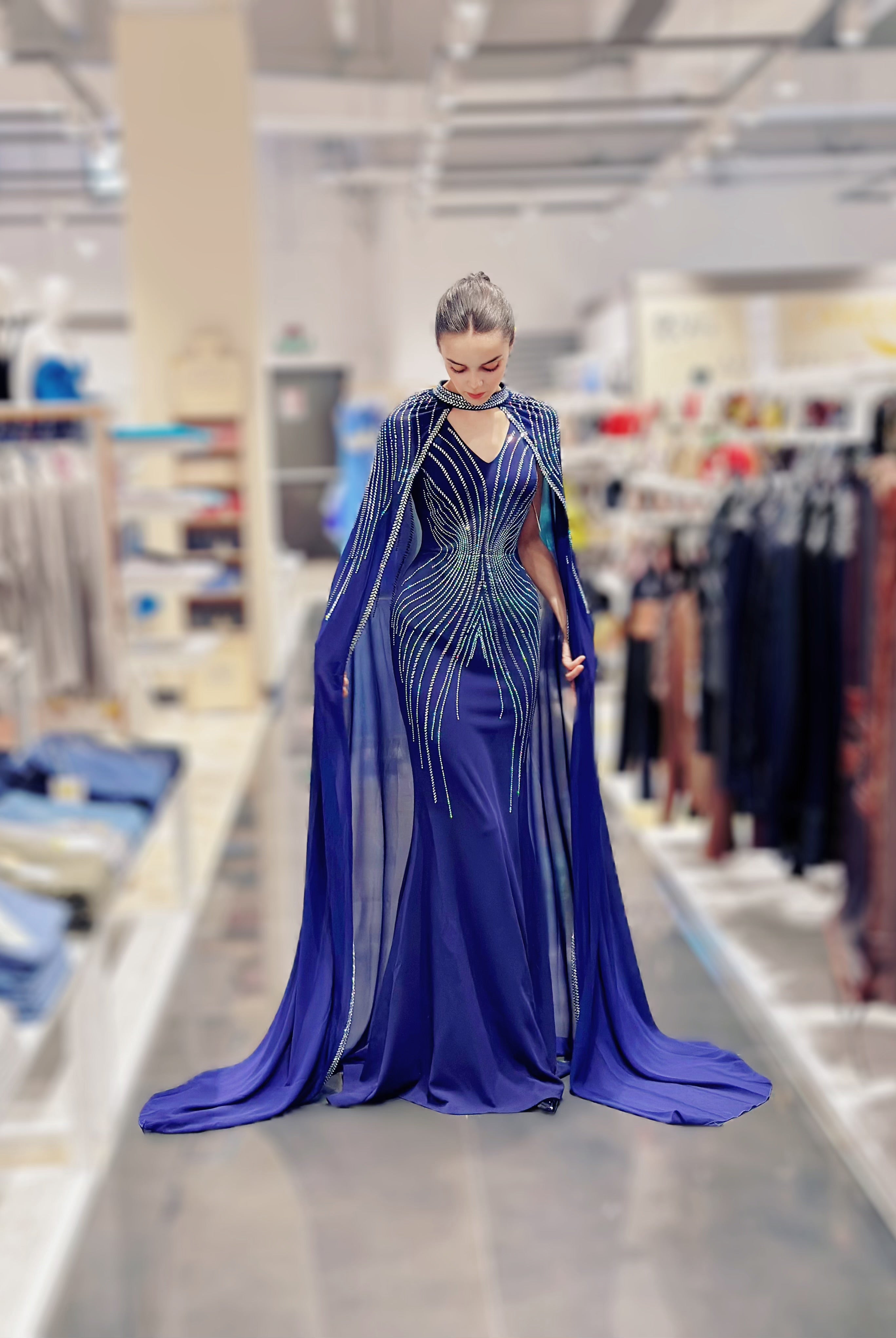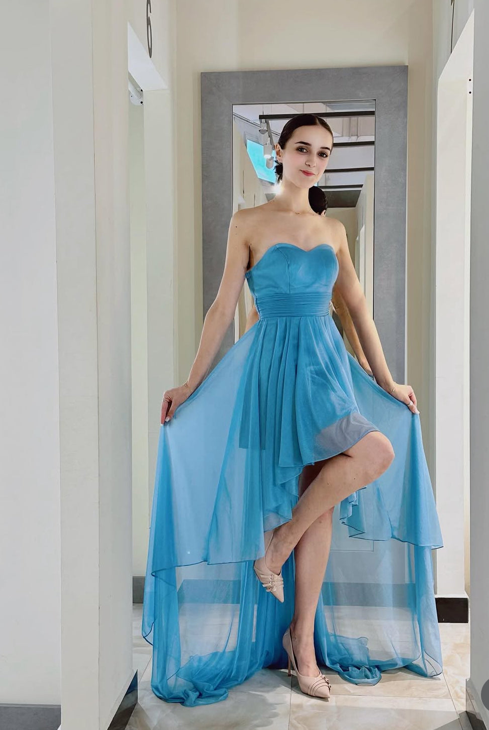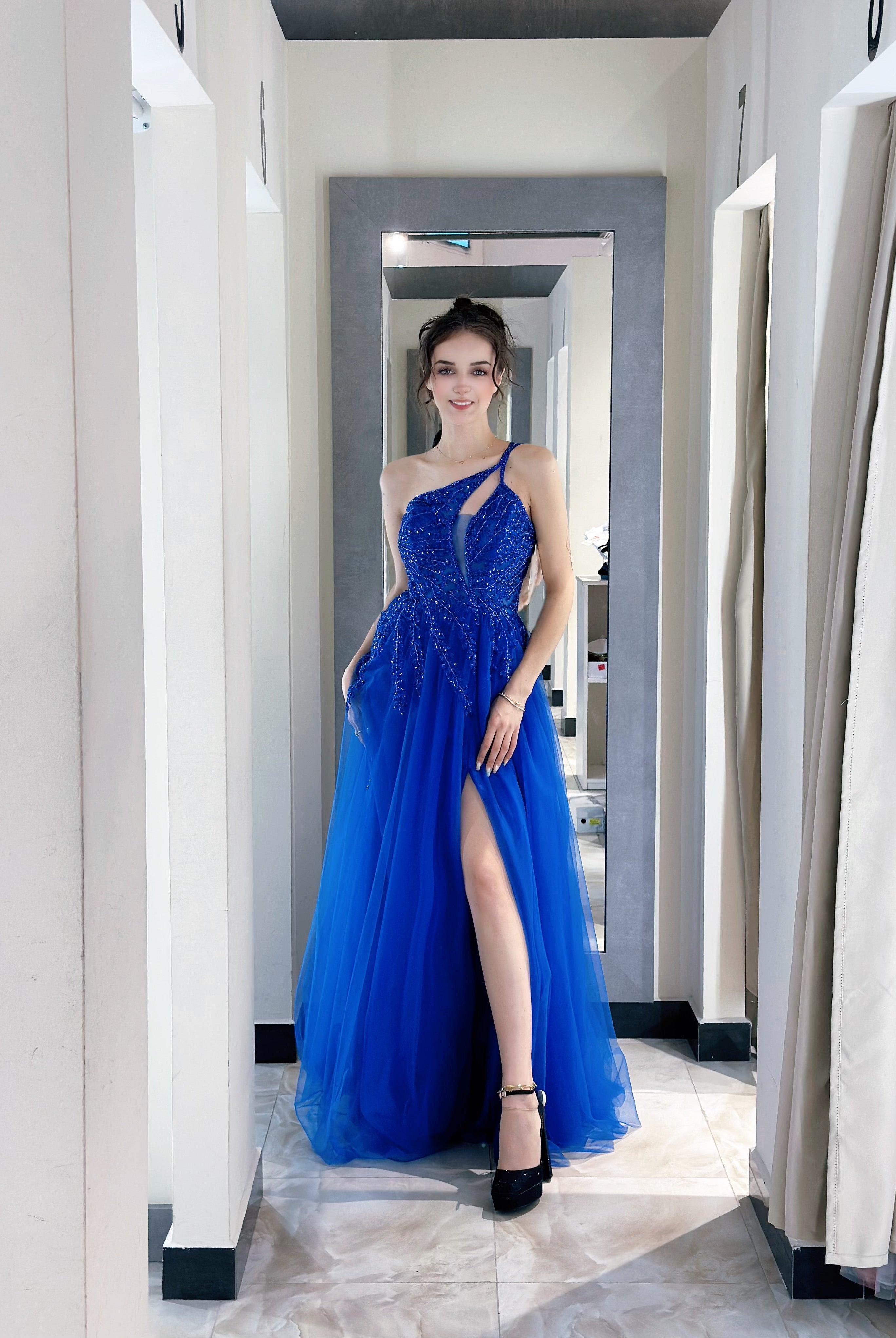 Abito da Sera Asimmetrico in Tulle Blu Reale