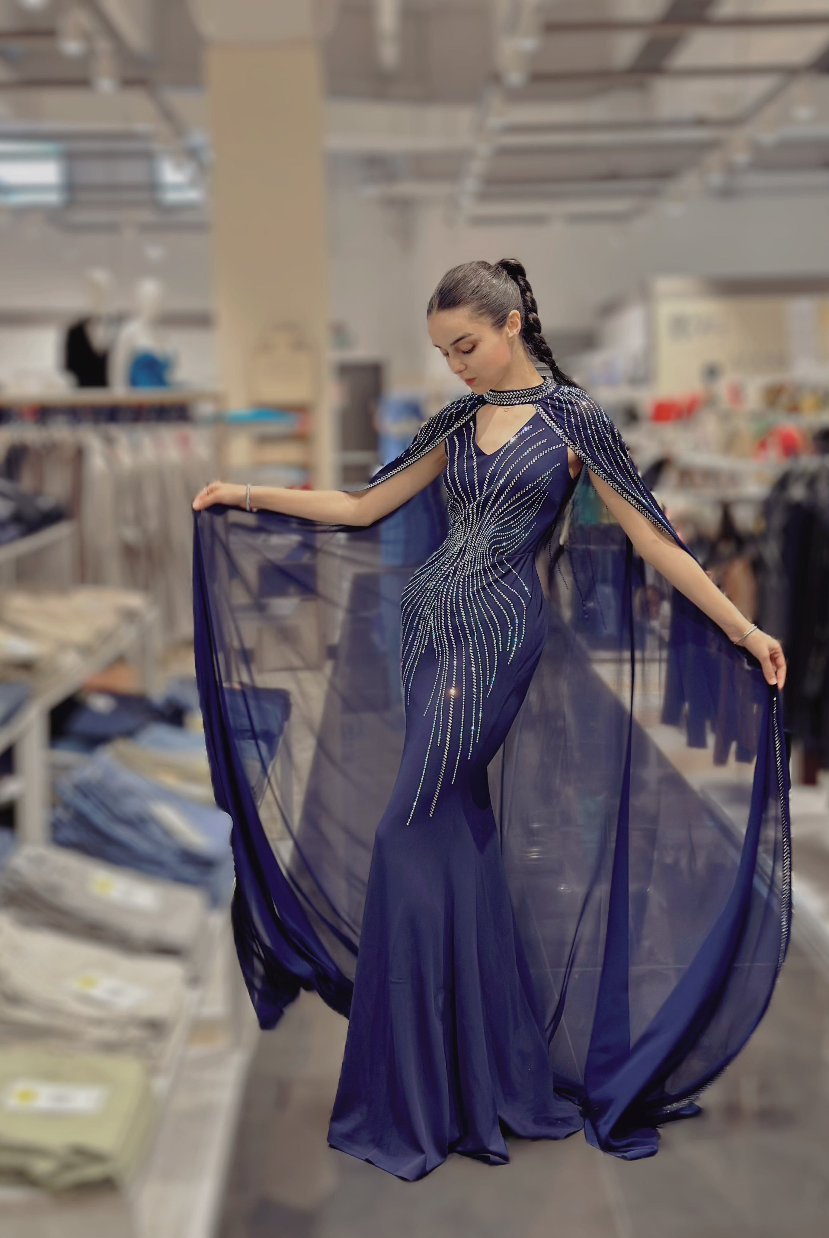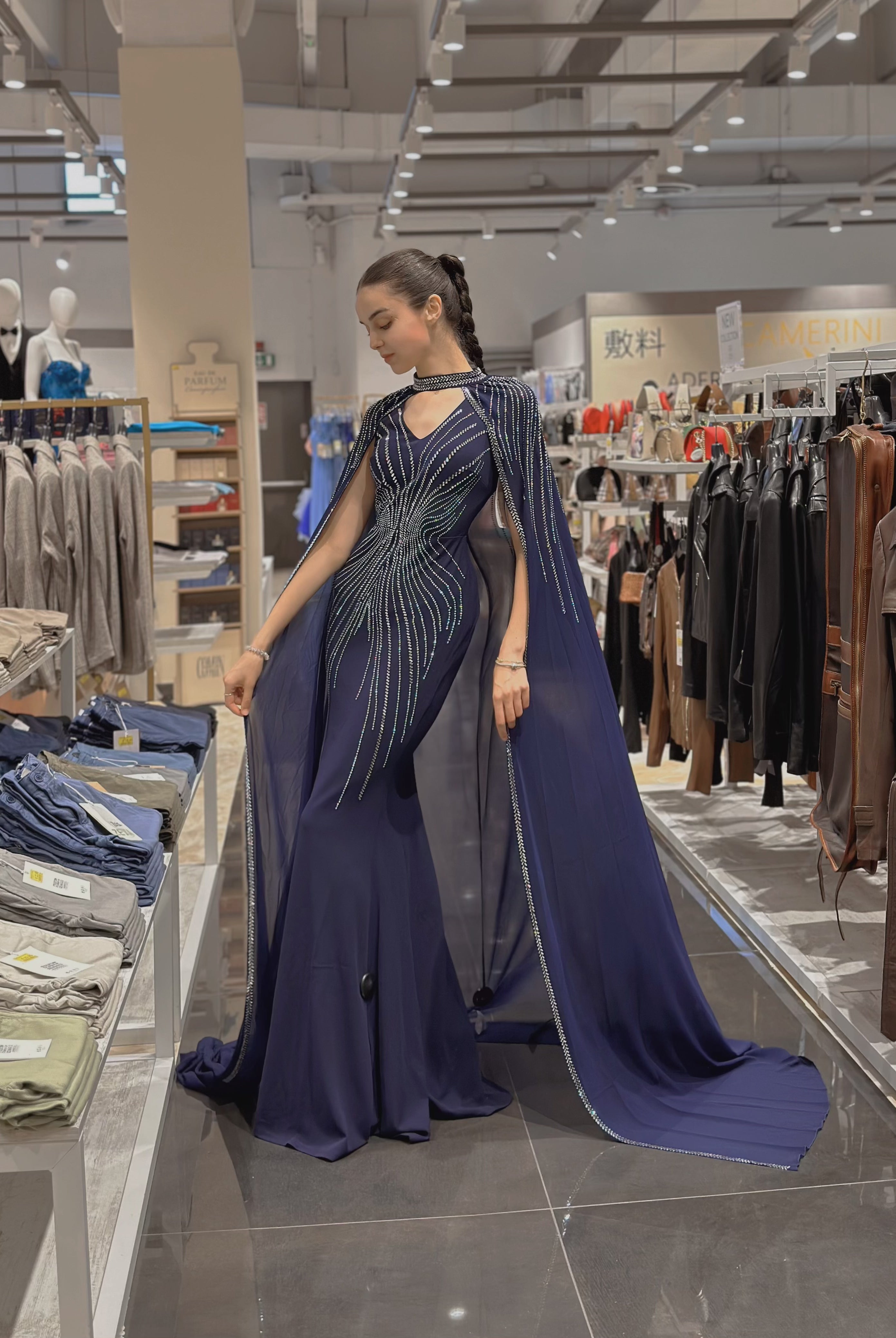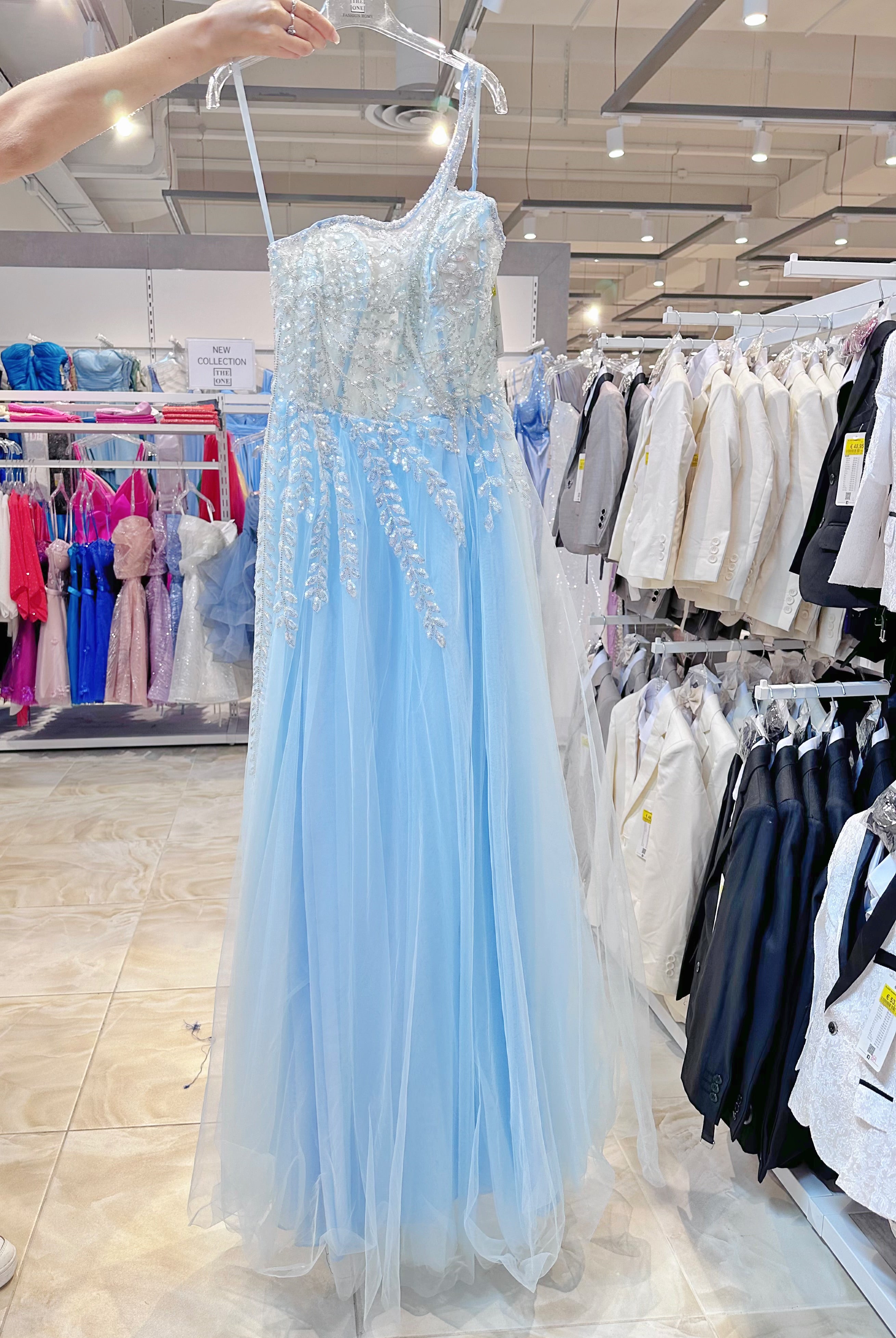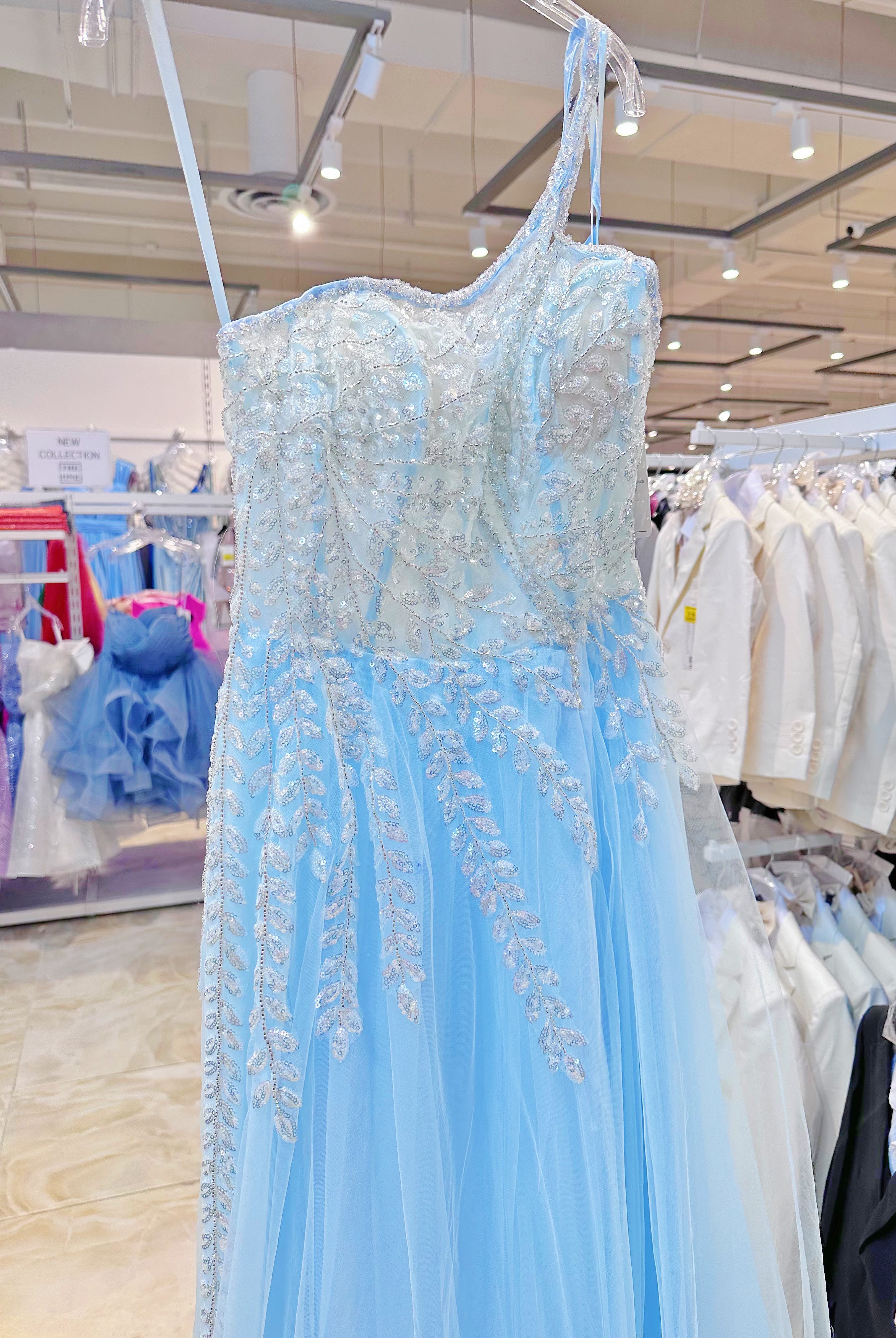 Abito da Sera Asimmetrico in Tulle Blu Reale