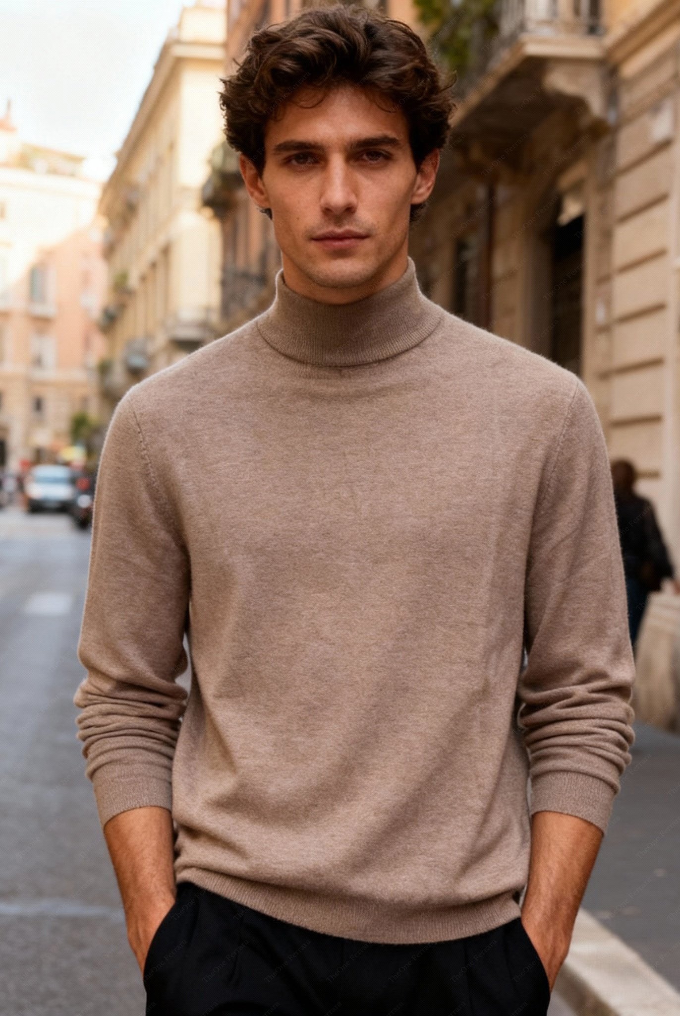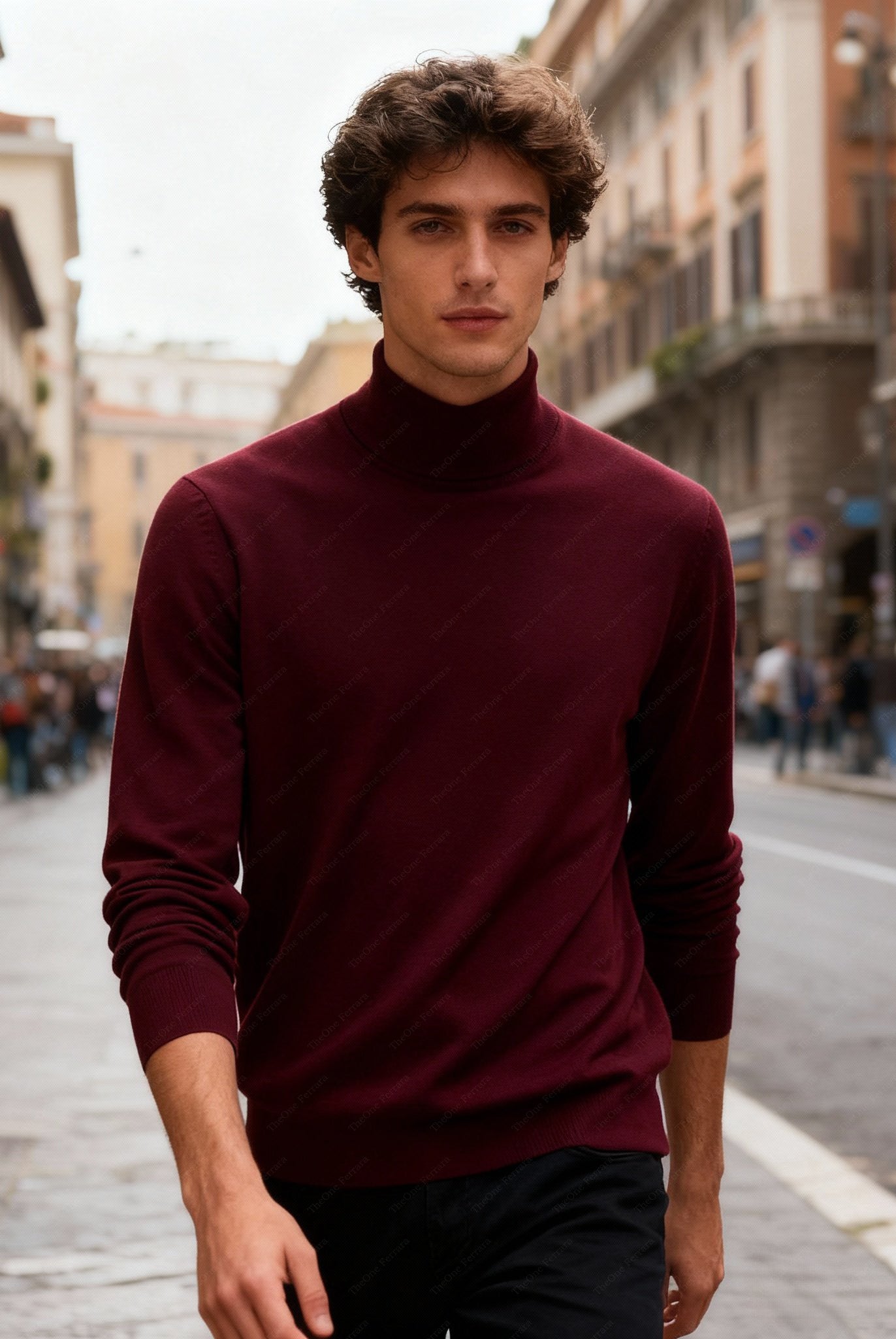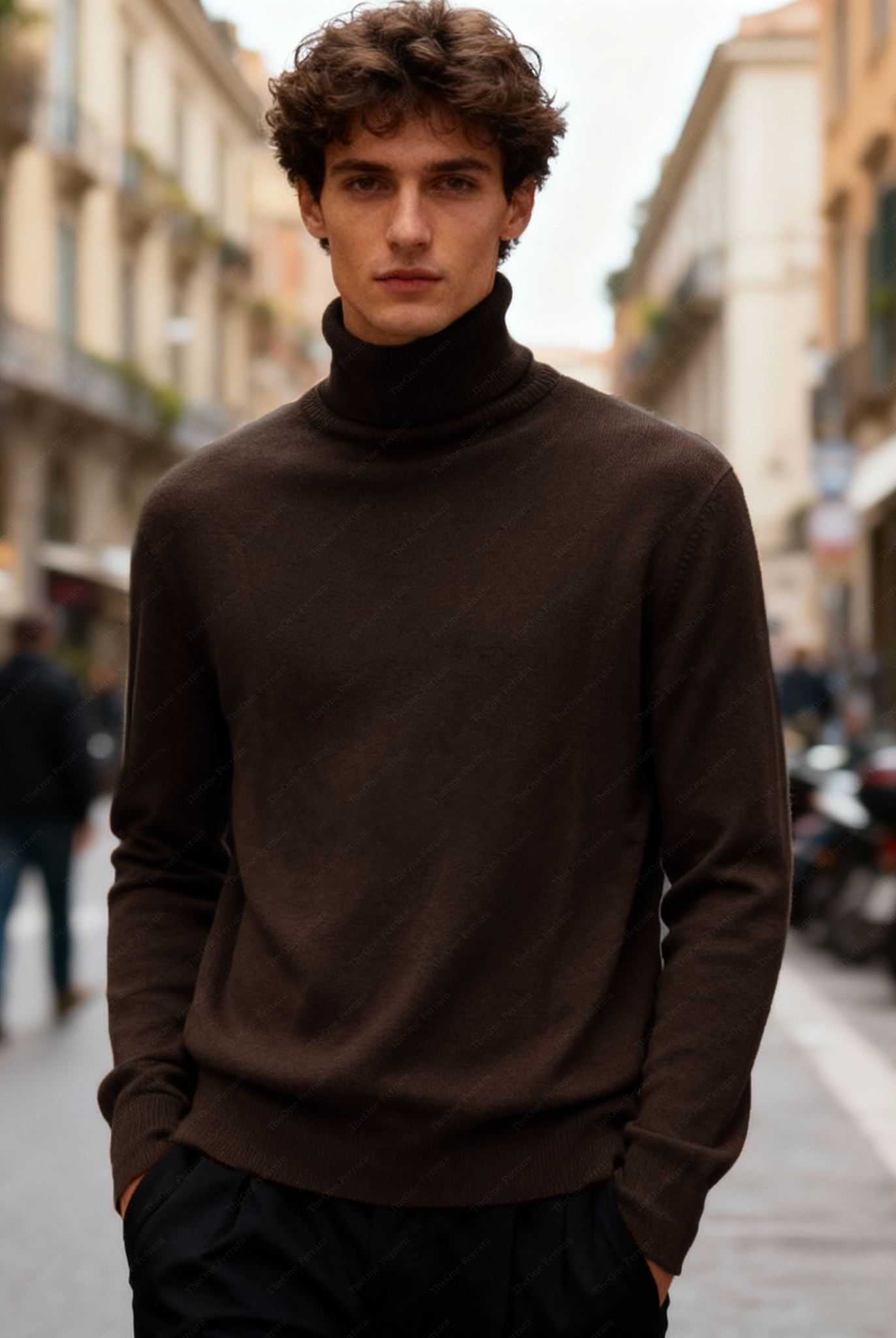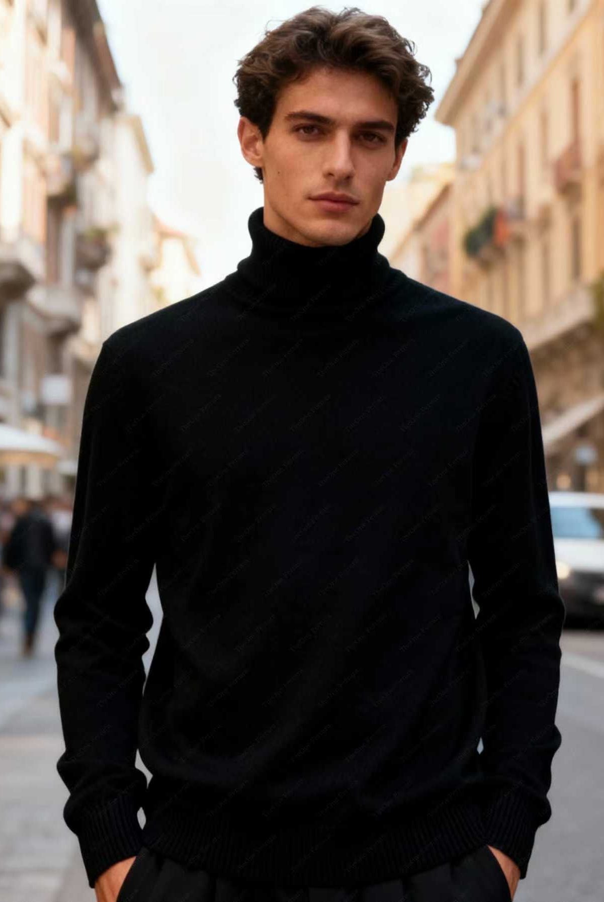 Maglione Uomo Dolcevita Classico - Collo Alto Maglia Fine Elegantec t-003