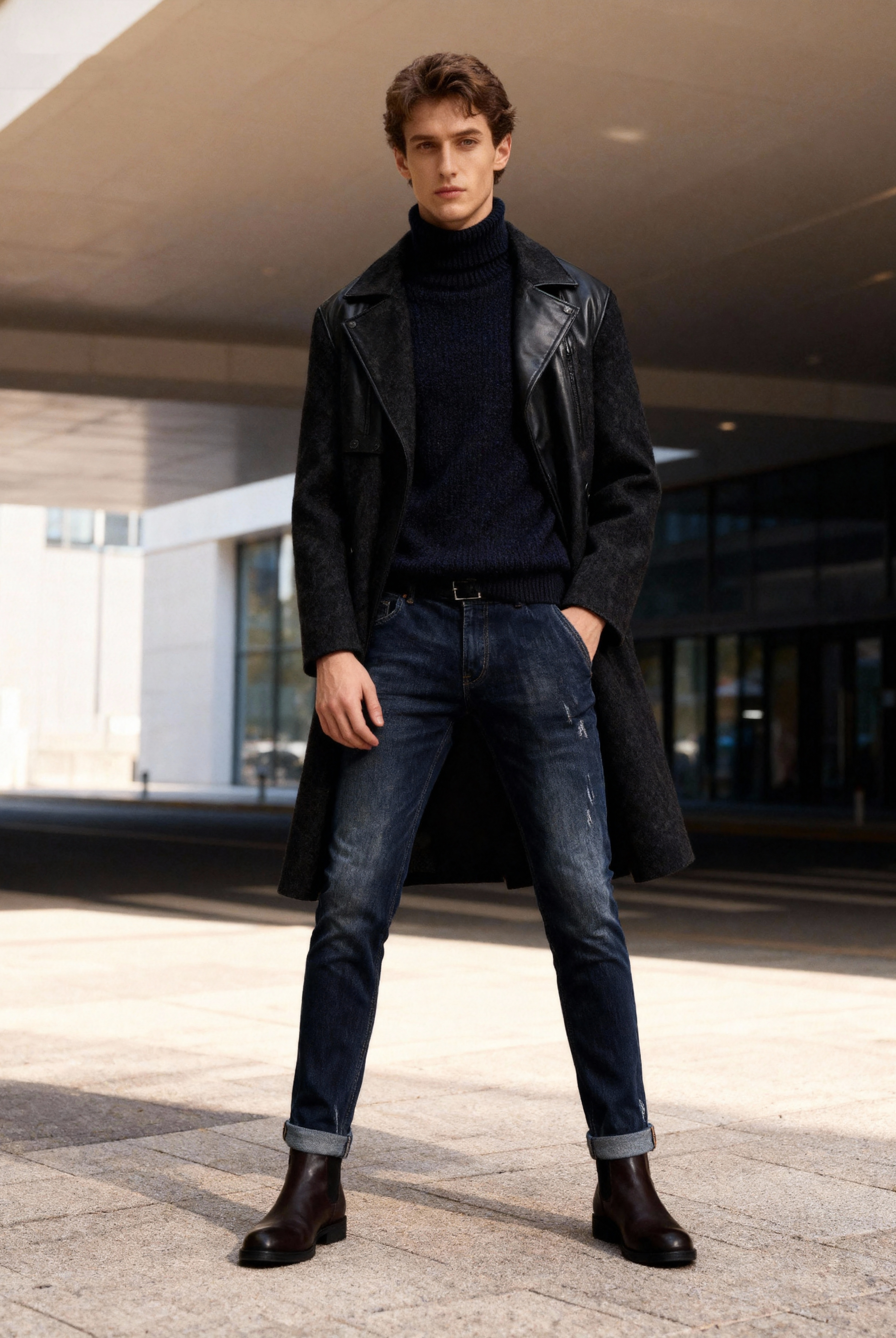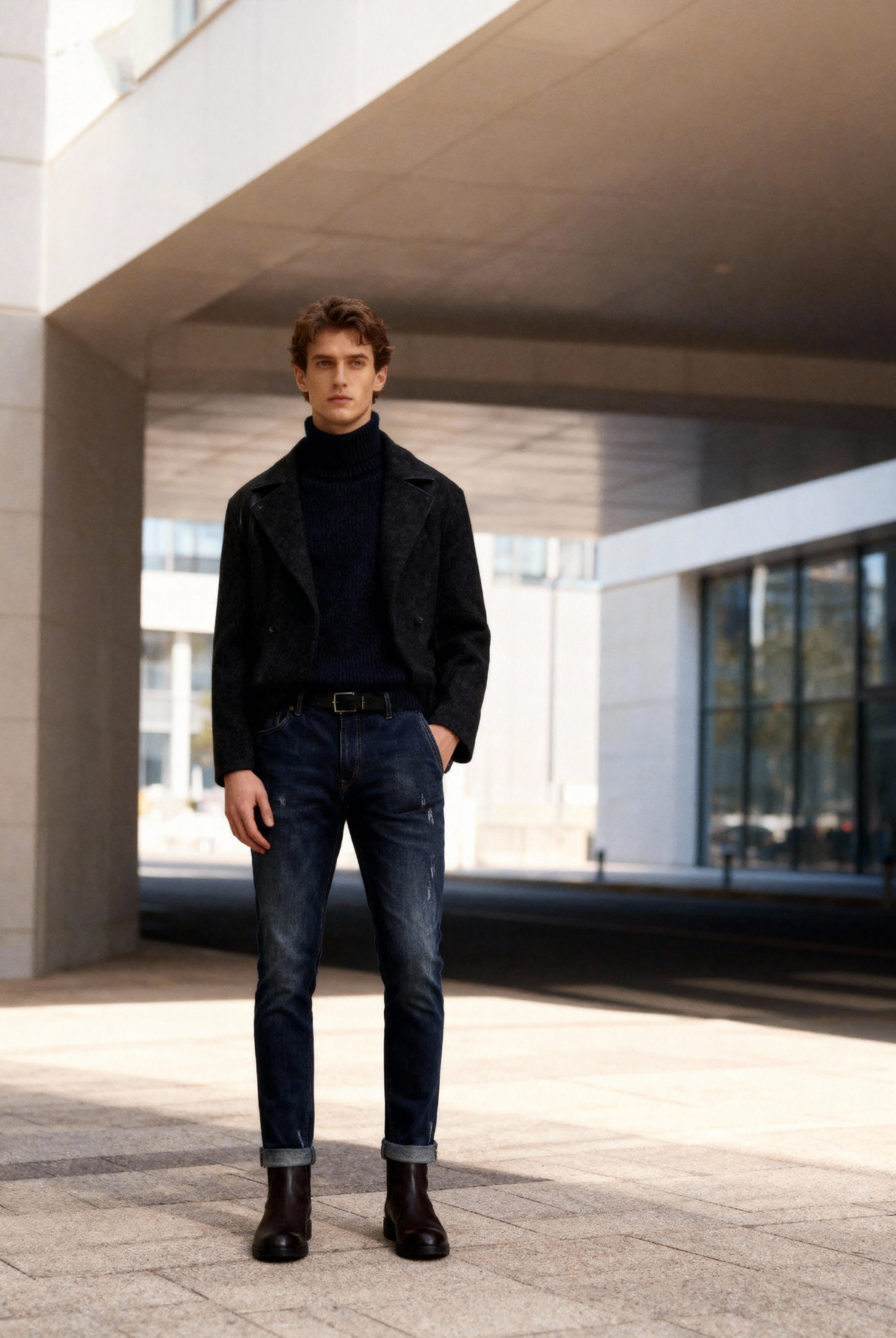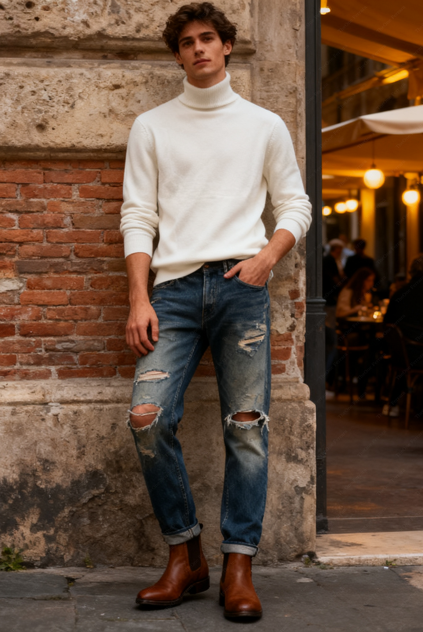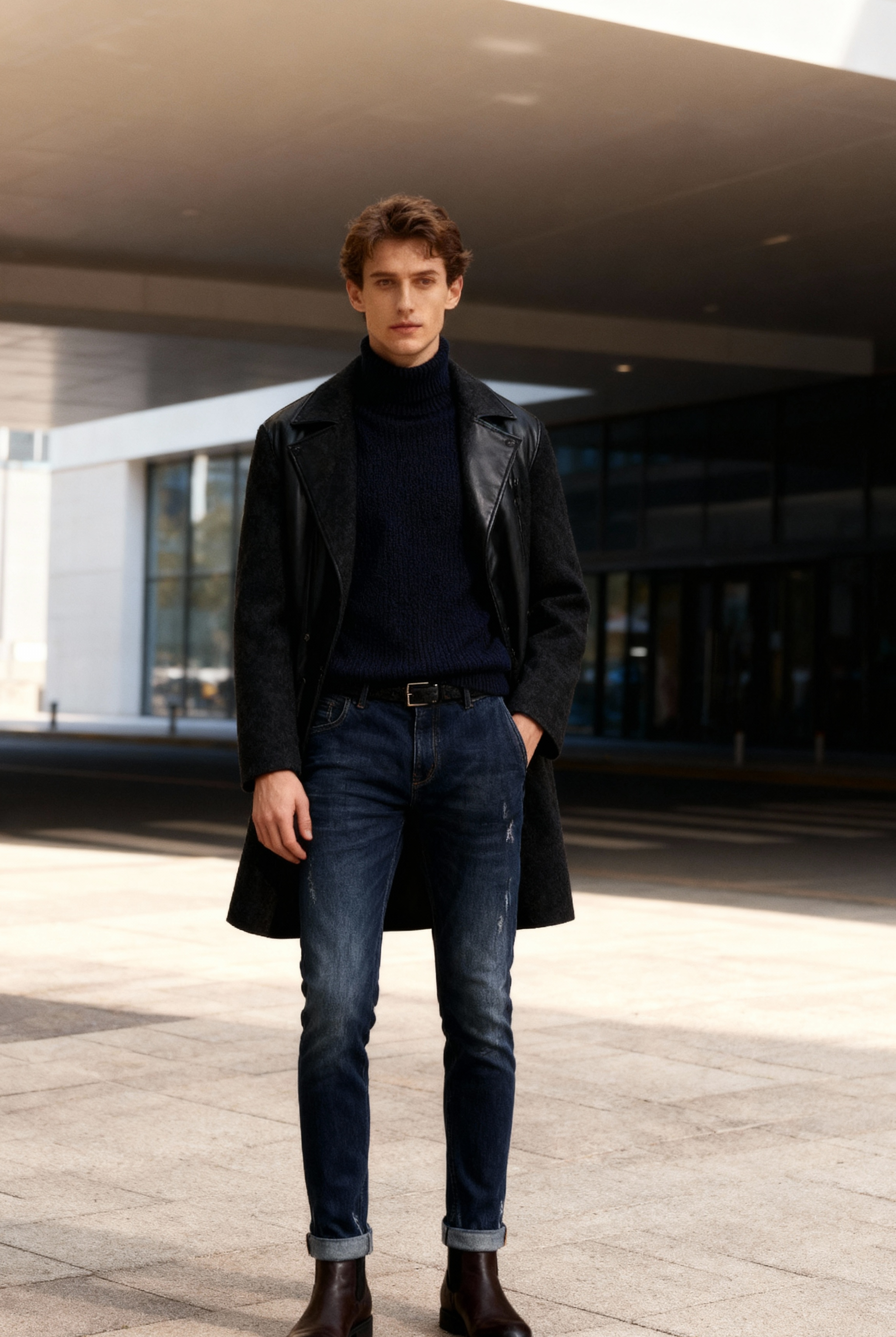 Maglione Uomo Dolcevita Classico - Collo Alto Maglia Fine Elegantec t-003