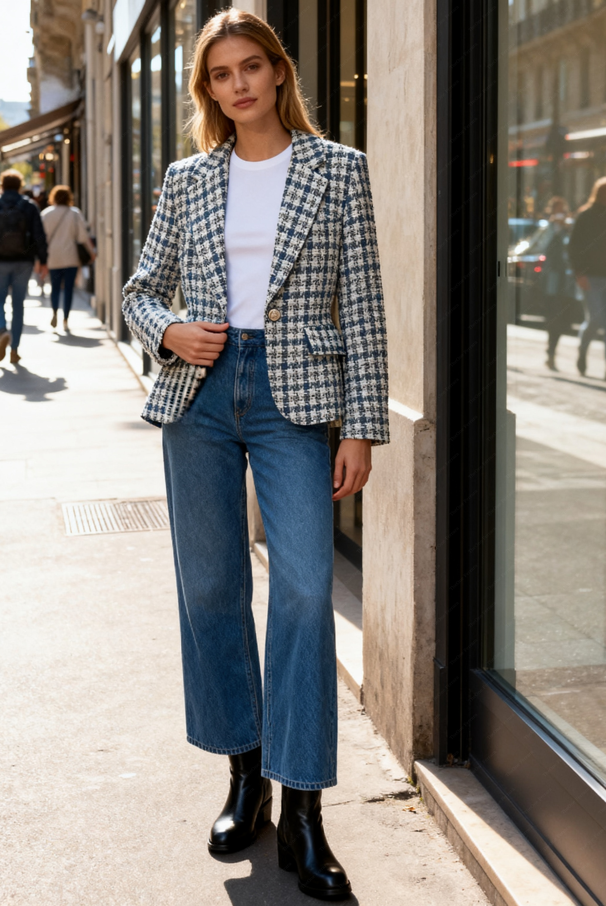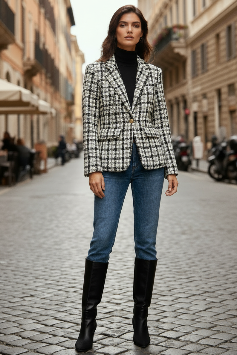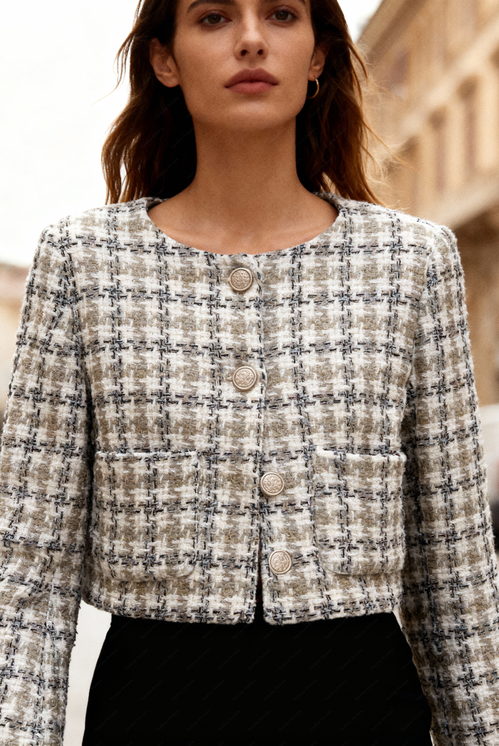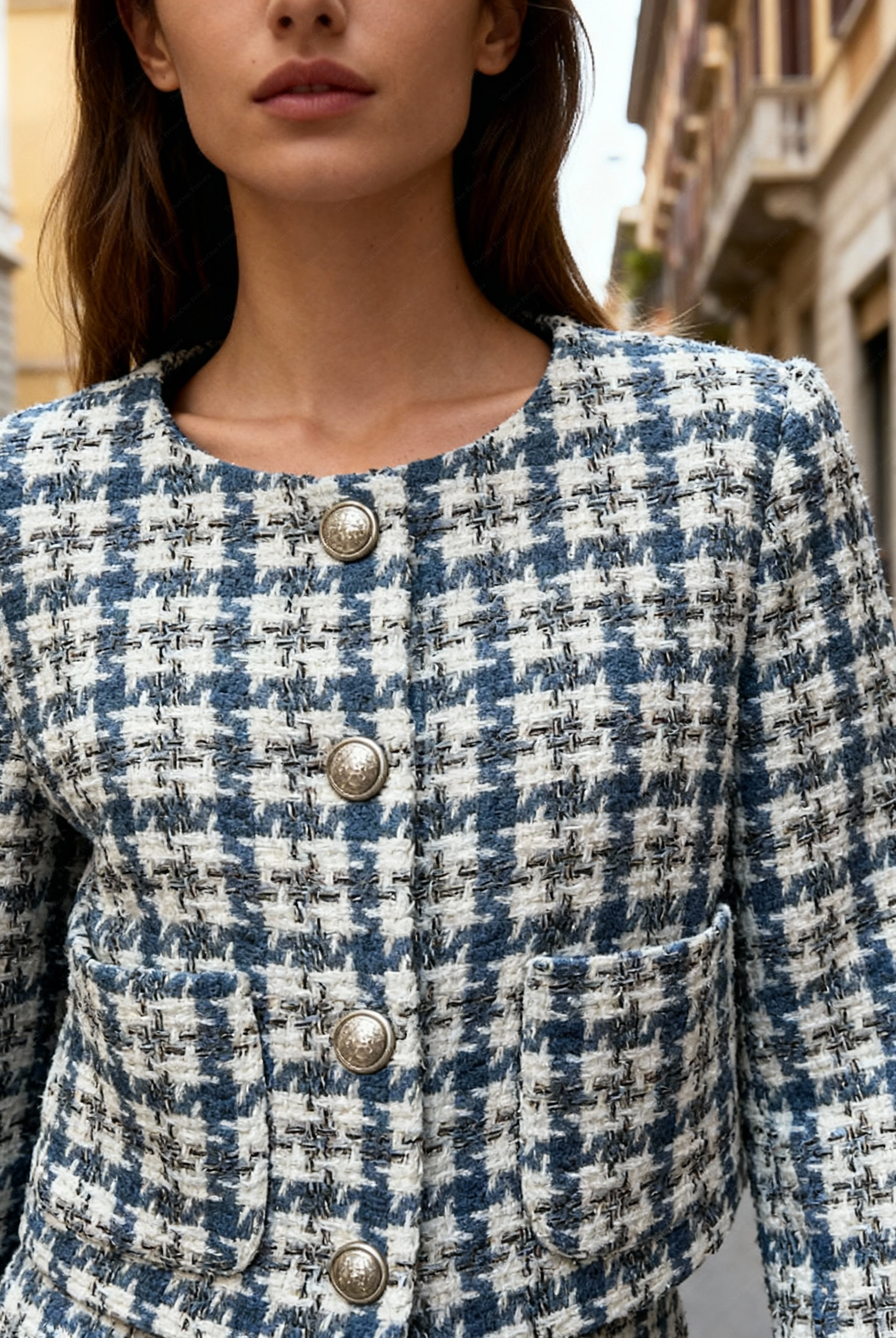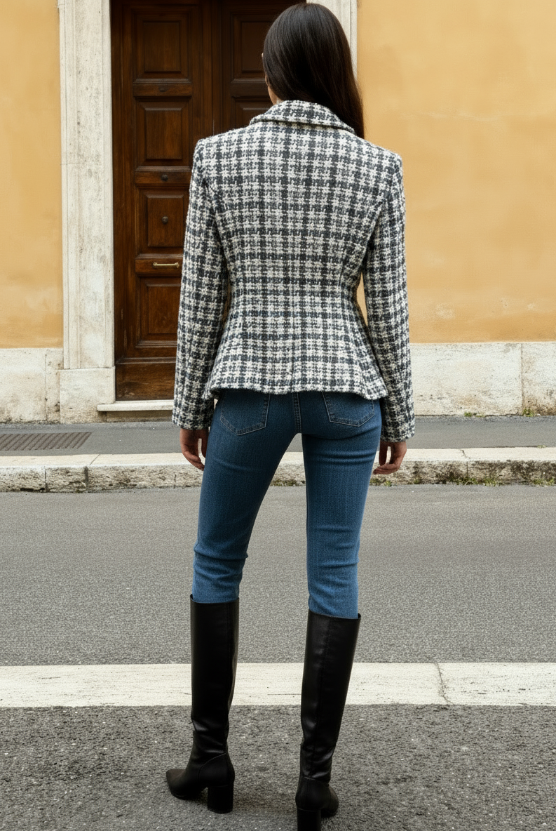 Giacca Blazer Donna Tweed a Quadri - Stile Chanel Elegante 16195