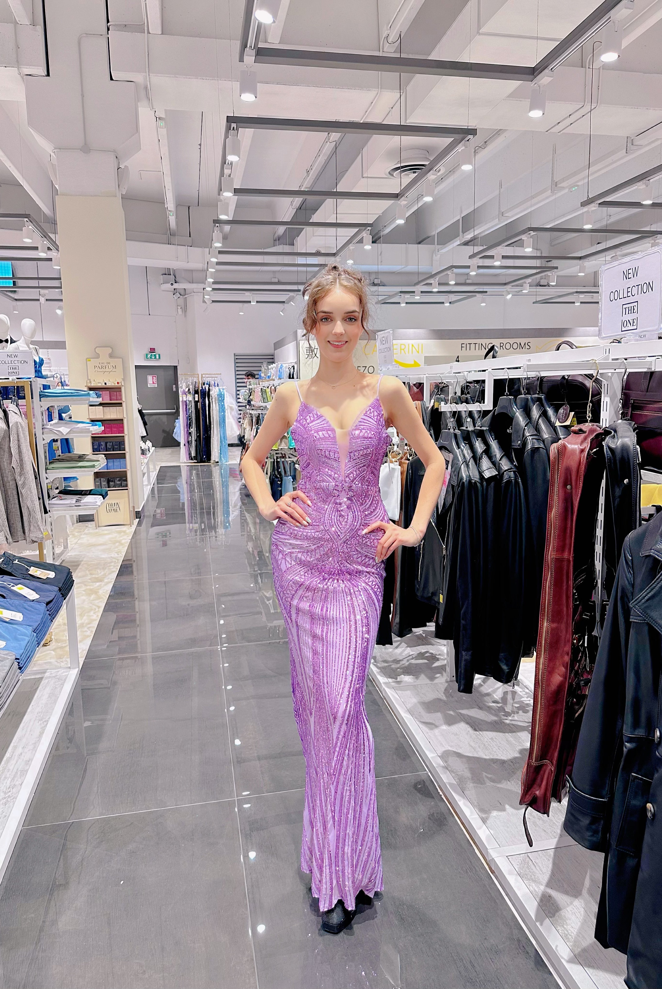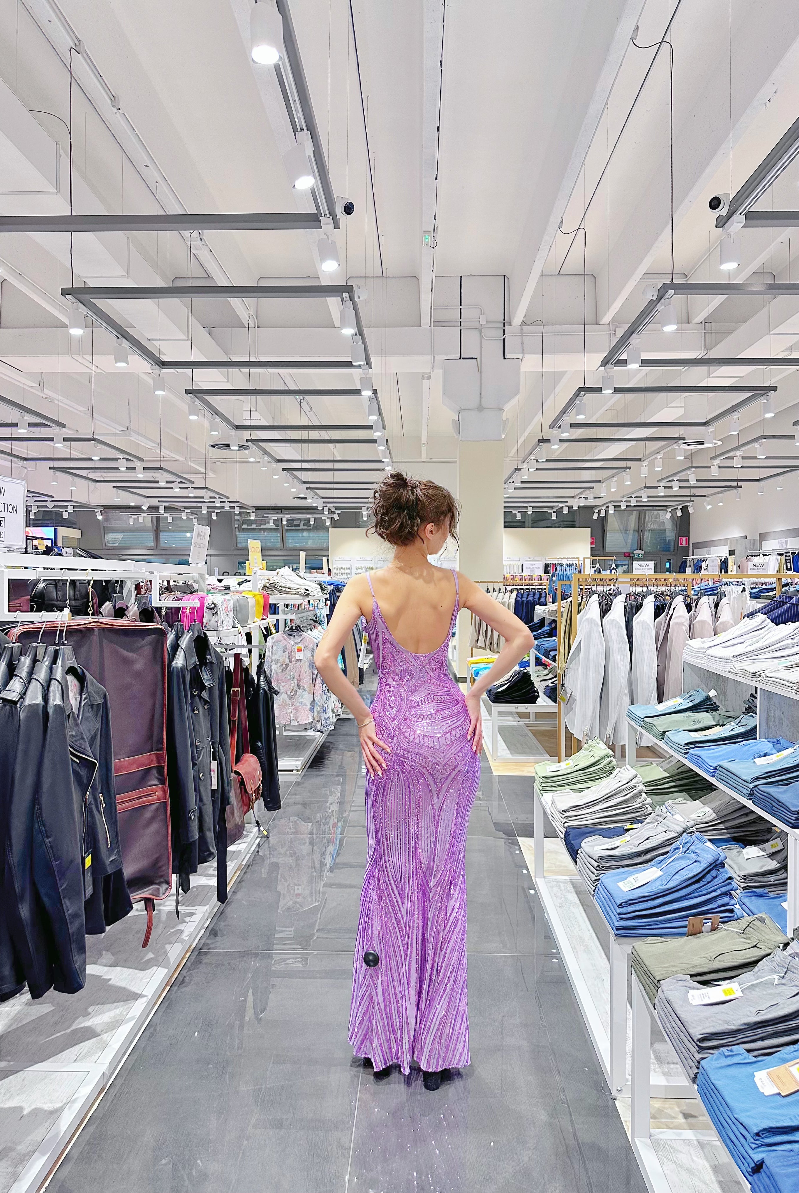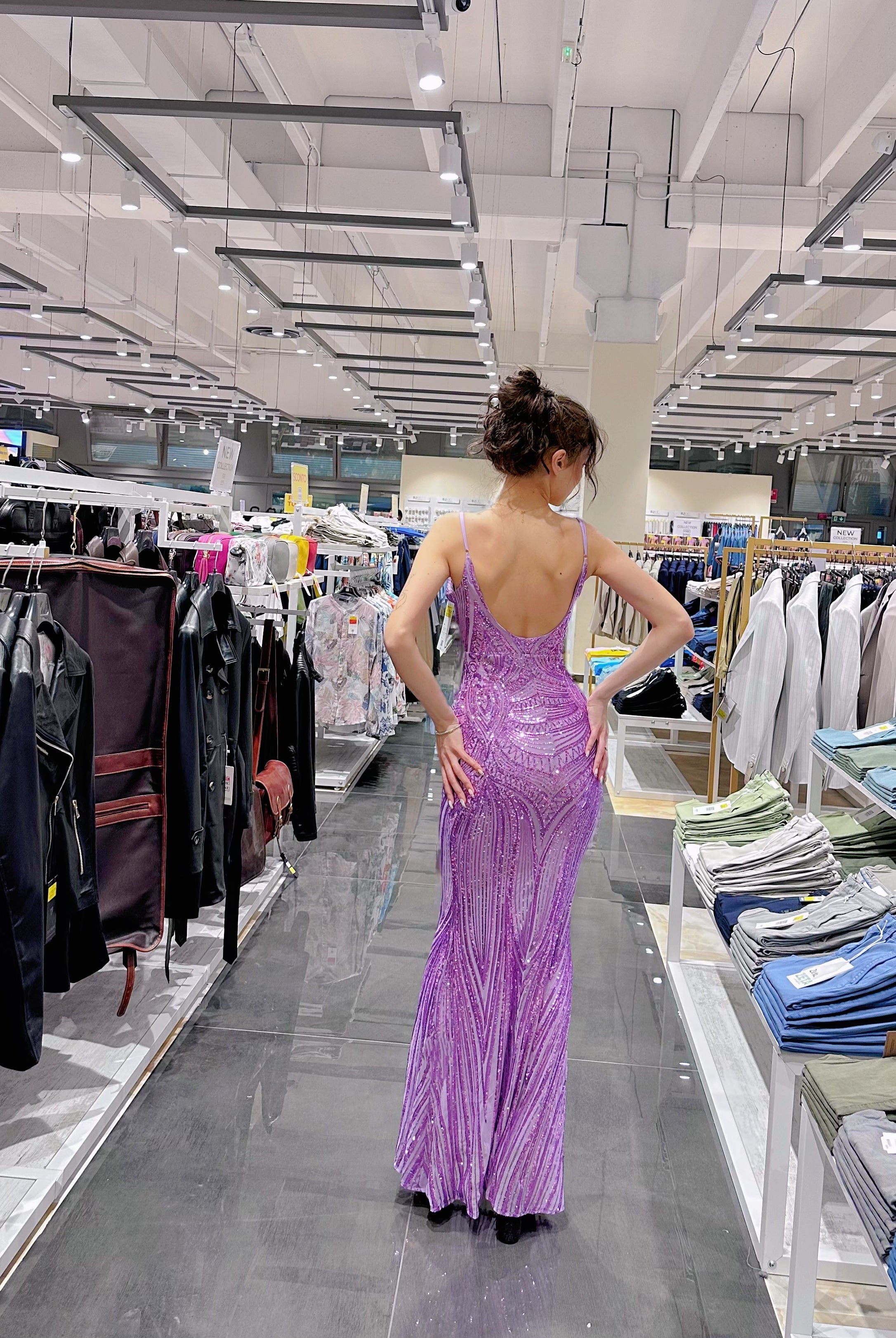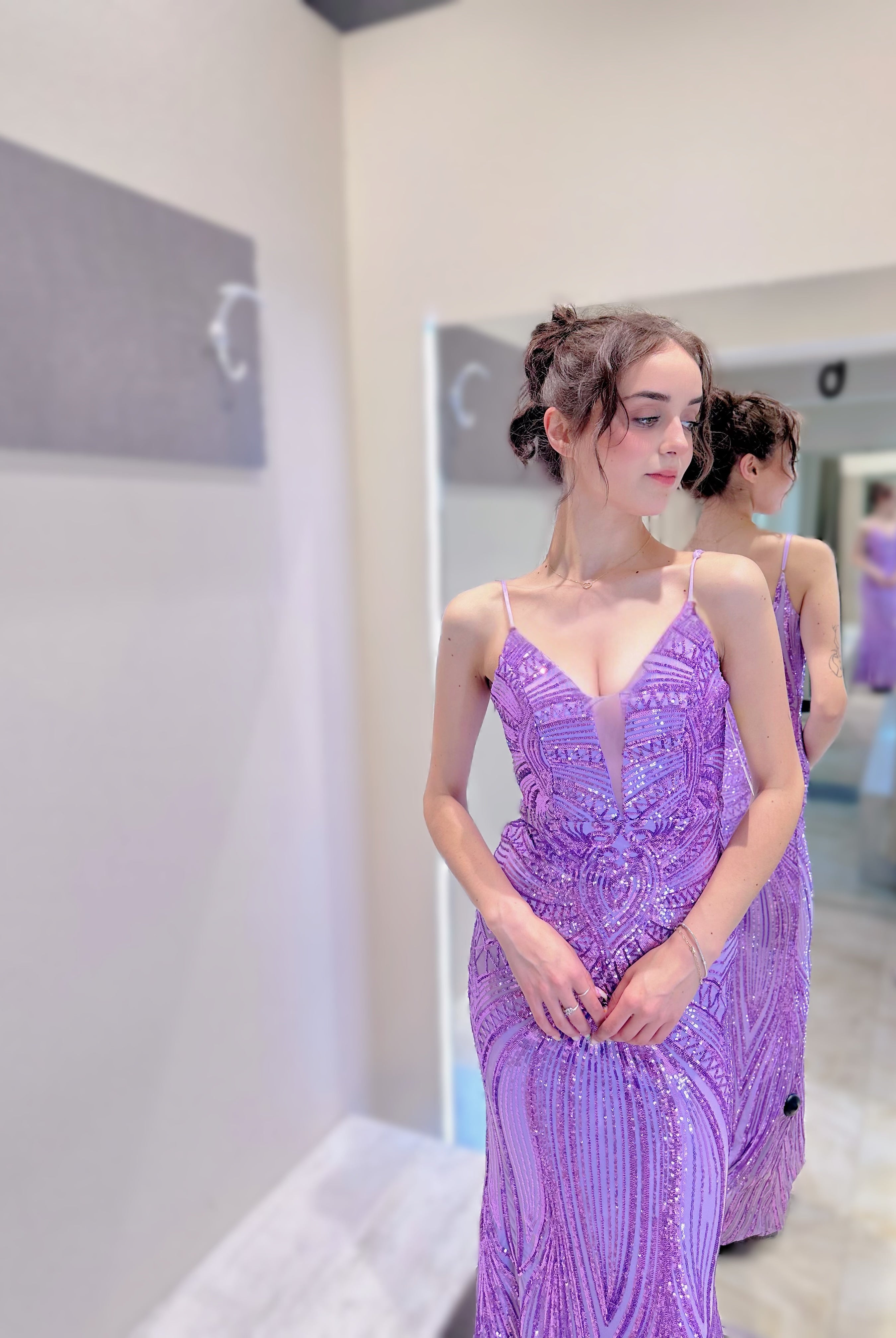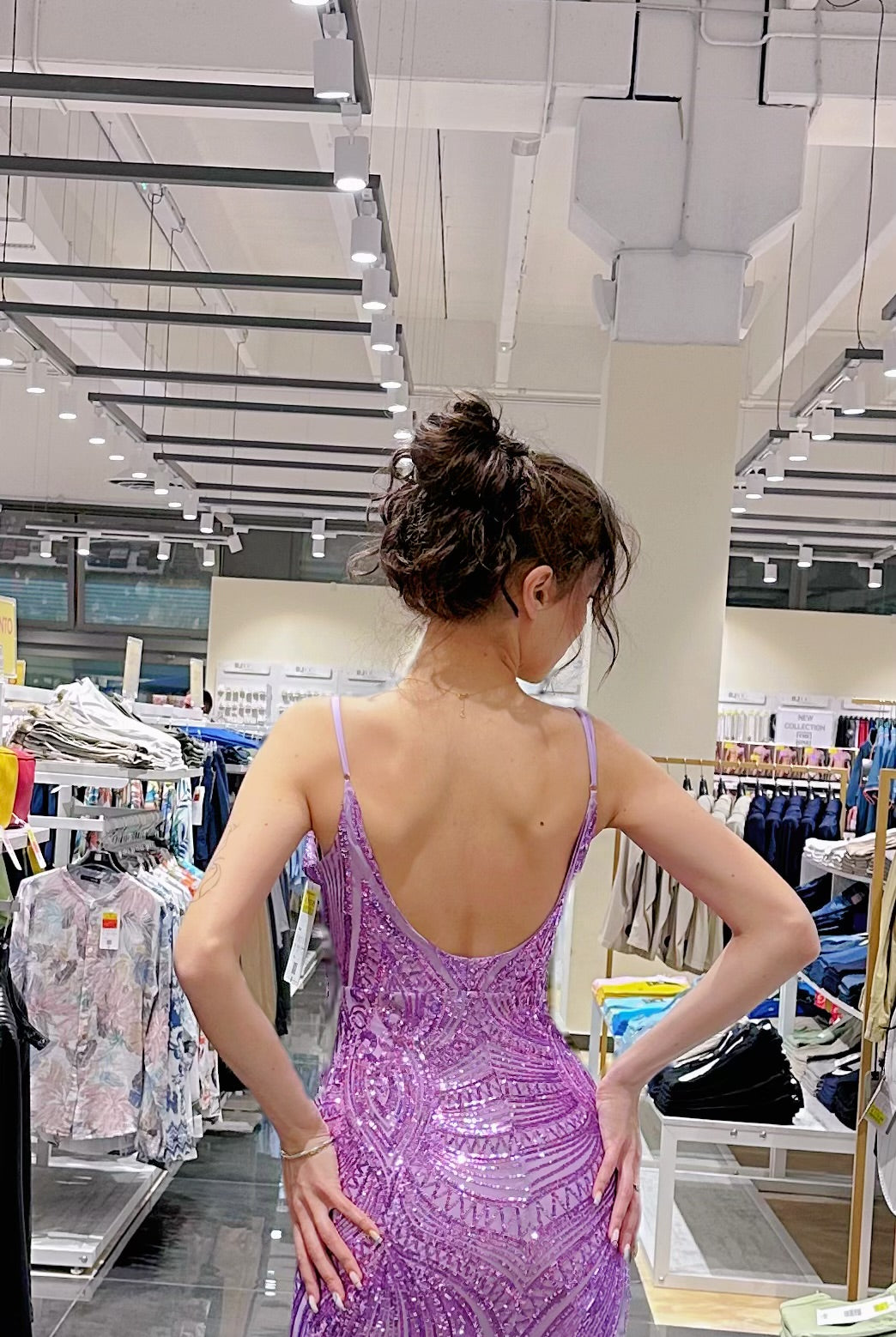 Abito Lilla con Paillettes e Schiena Scoperta|Eleganza da Dea