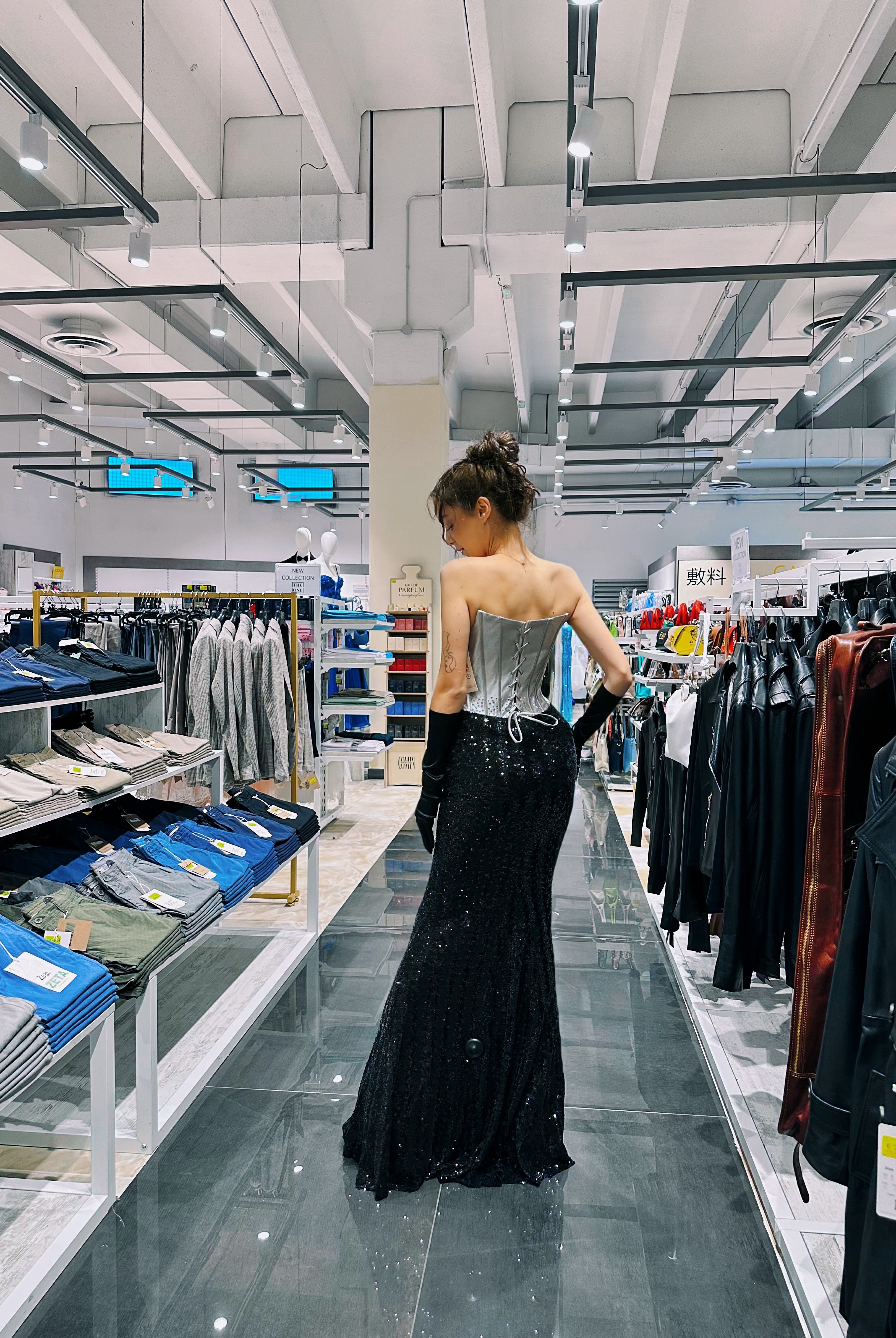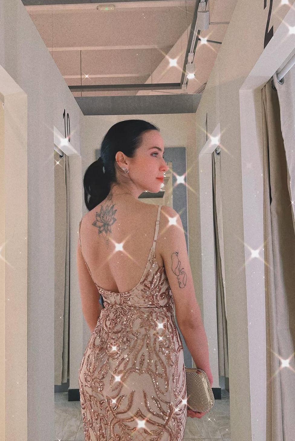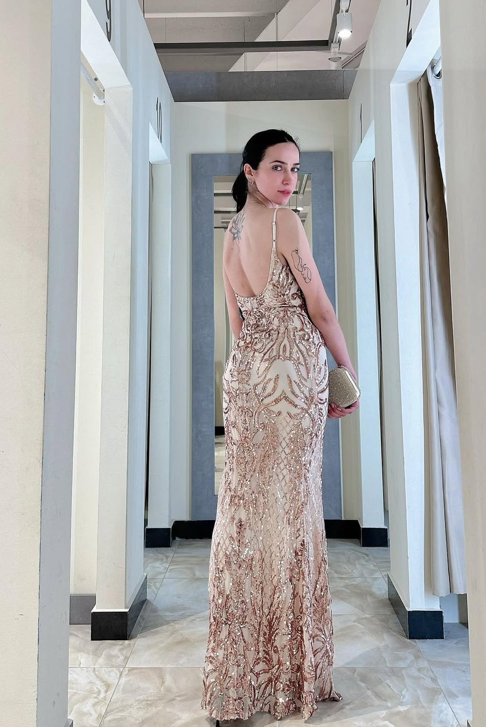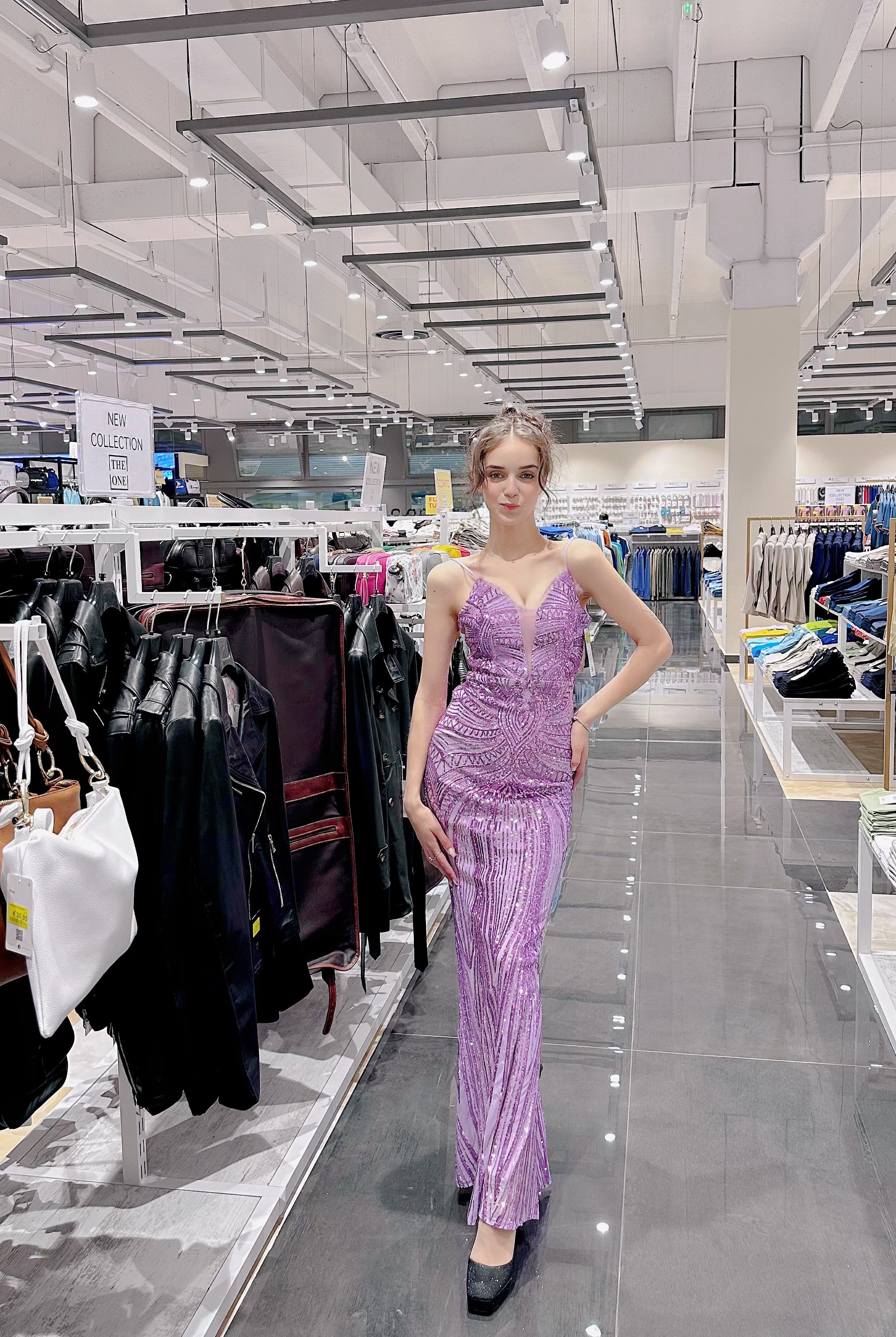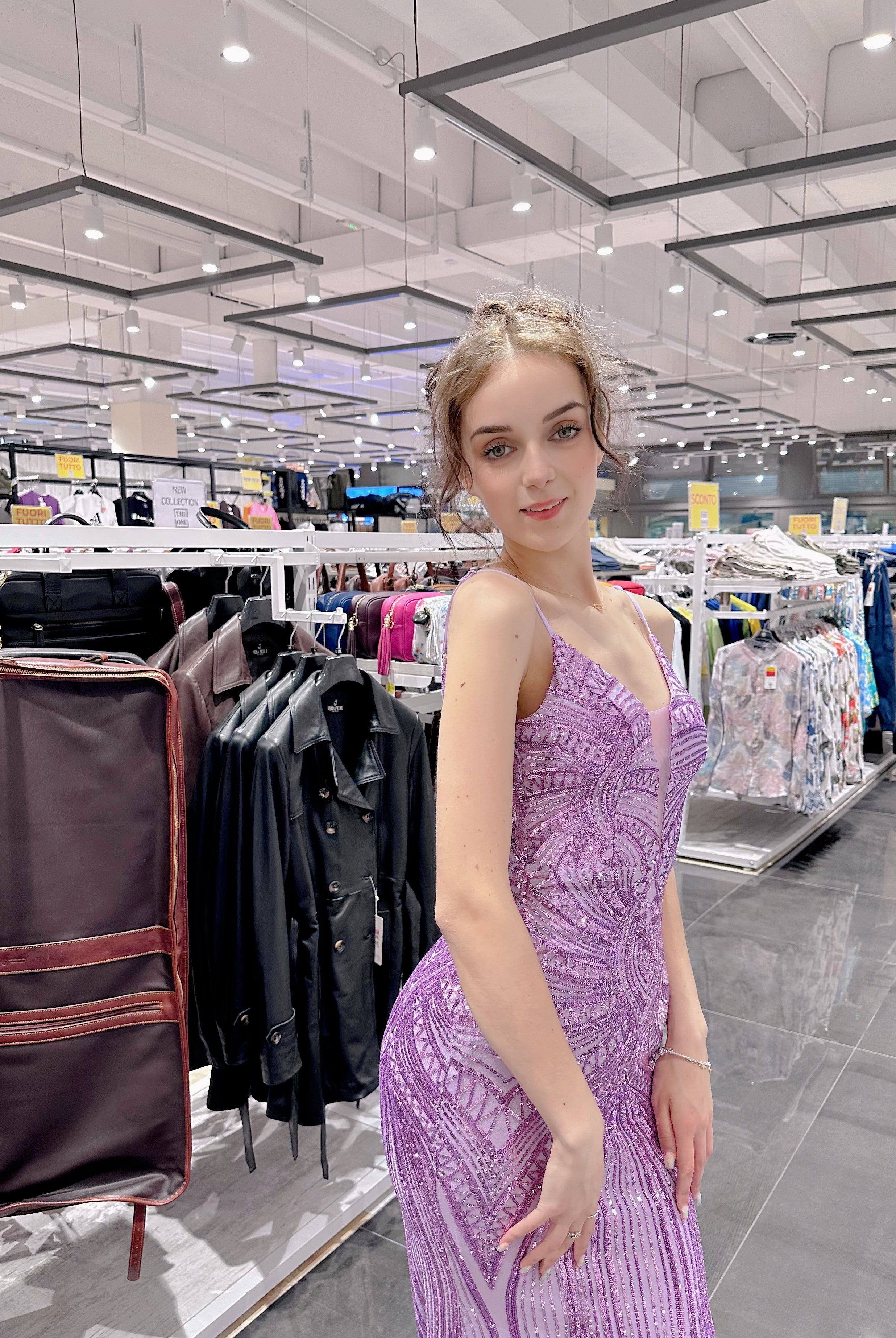 Abito Lilla con Paillettes e Schiena Scoperta|Eleganza da Dea
