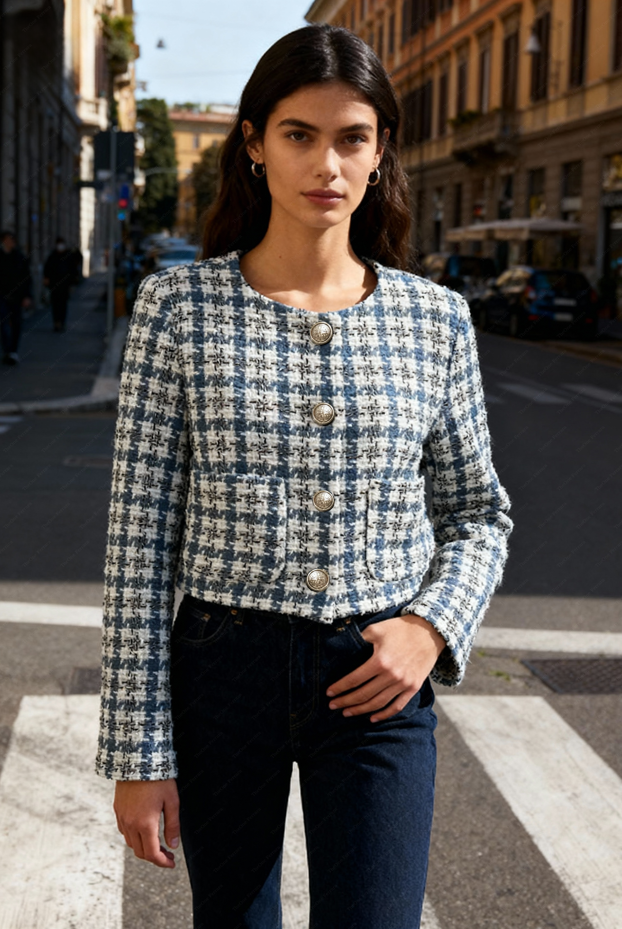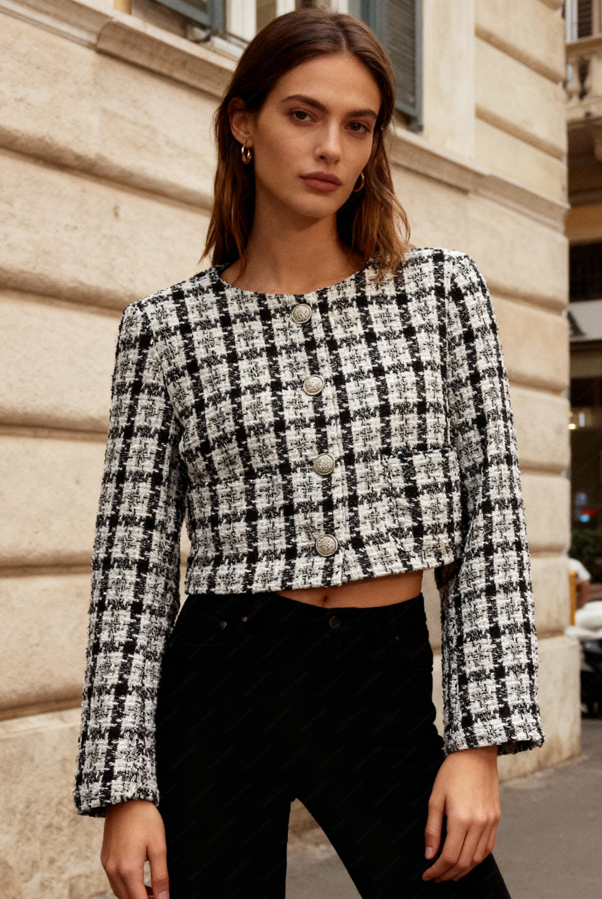 Giacca Corta Tweed Donna - Stile Chanel Cropped Jacket 16168