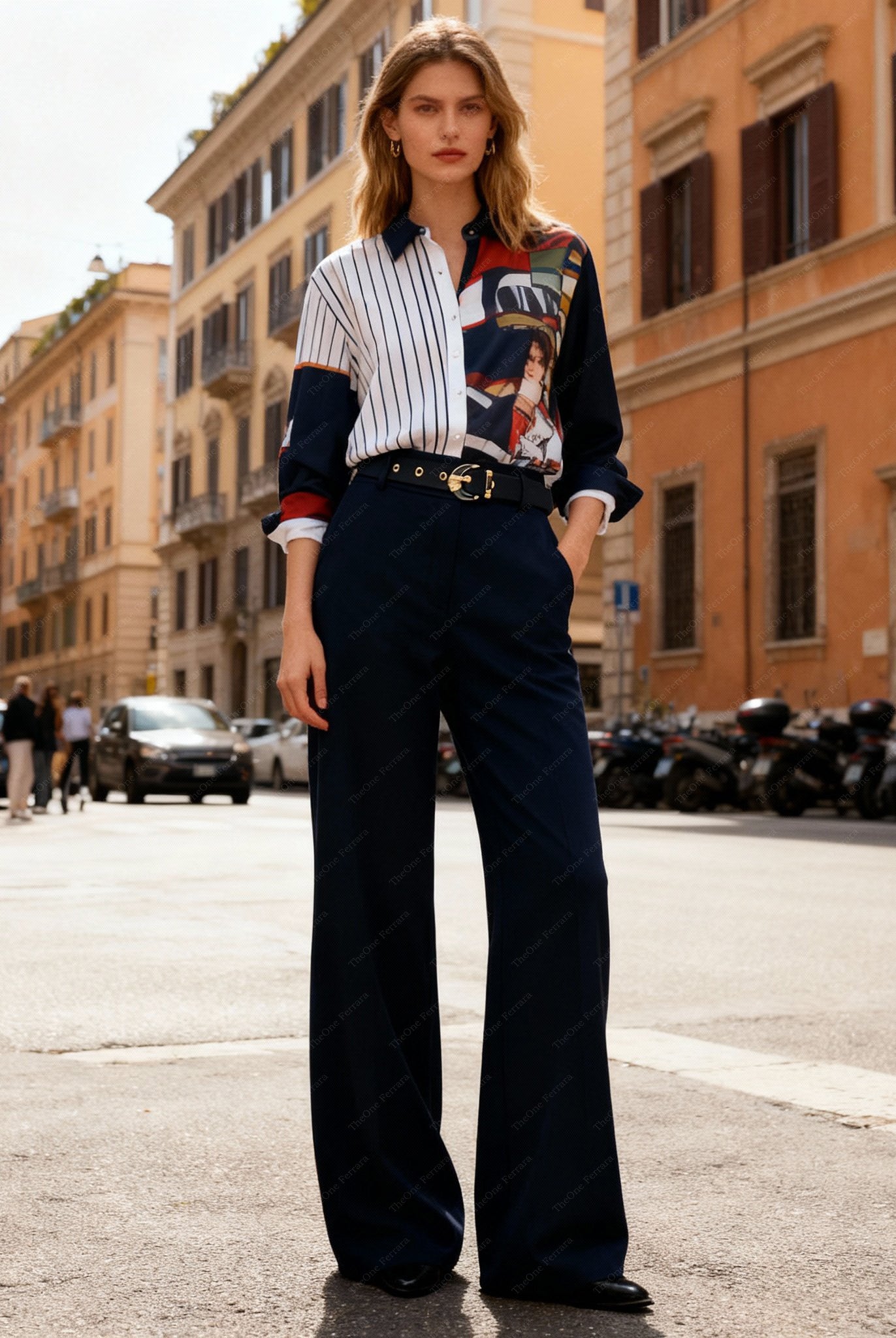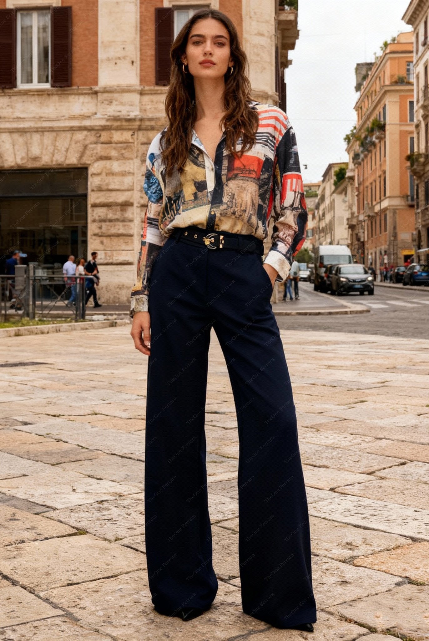 Pantaloni Palazzo Donna - Vita Alta con Cintura