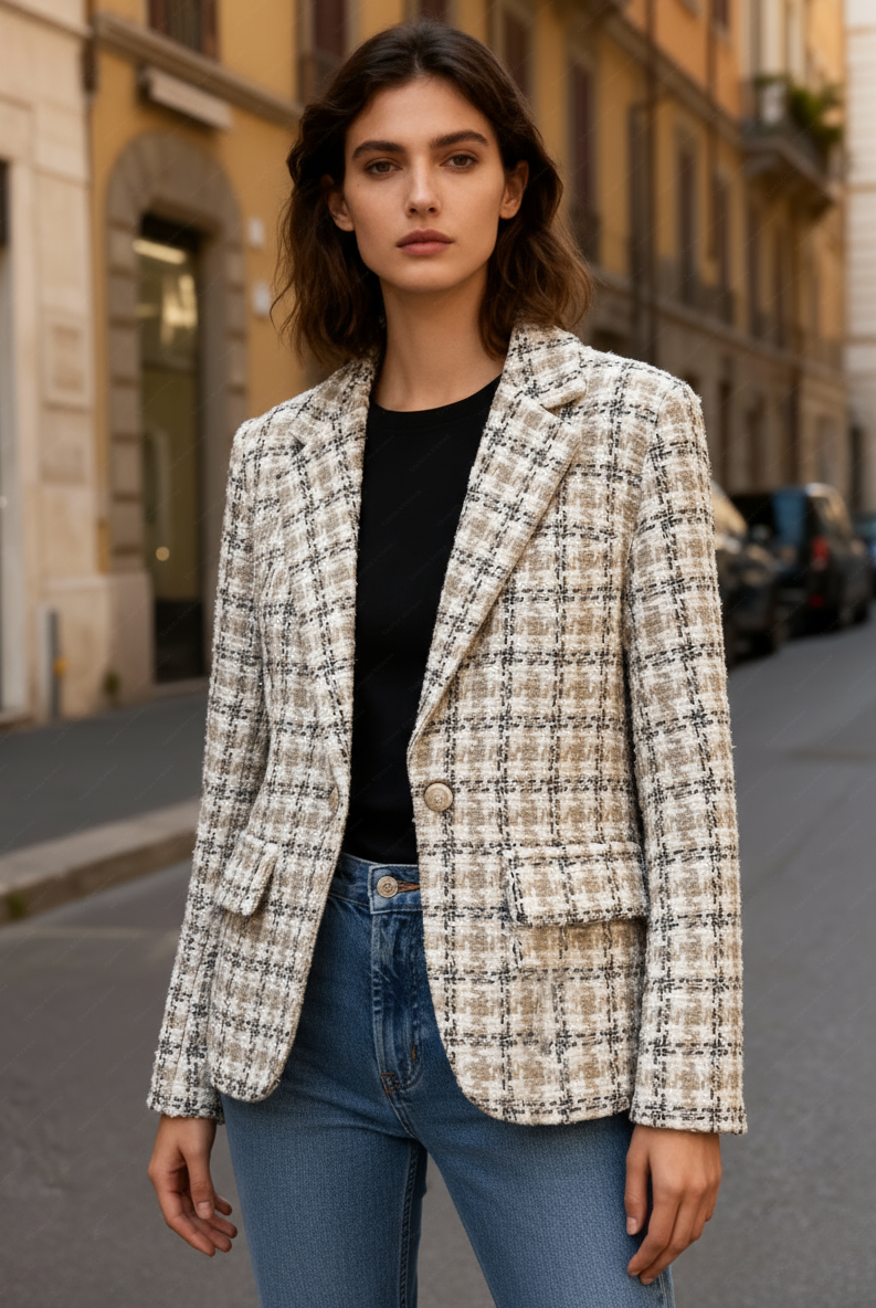 Giacca Blazer Donna Tweed Doppiopetto - Eleganza Couture 16151