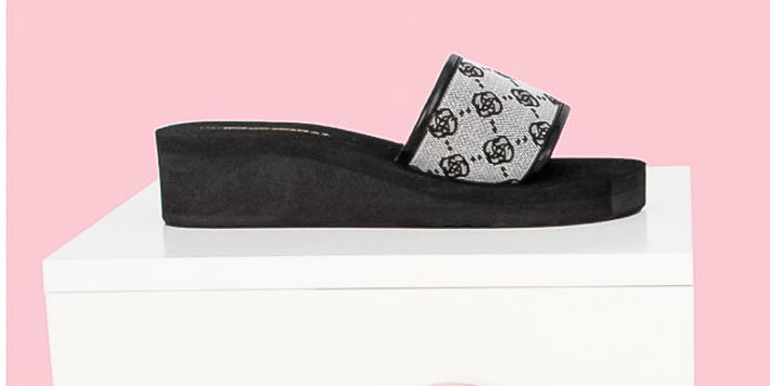 Questi sandali eleganti con suola spessa combinano un design iconico con stampa raffinata e una suola confortevole, perfetti per ogni occasione!