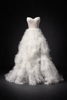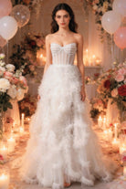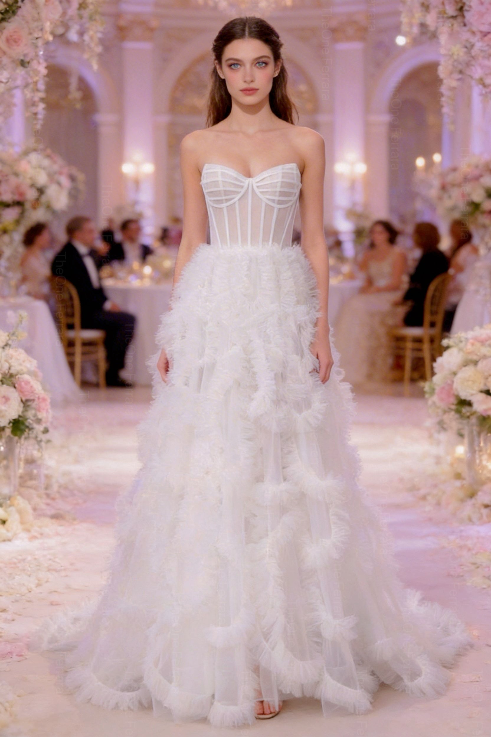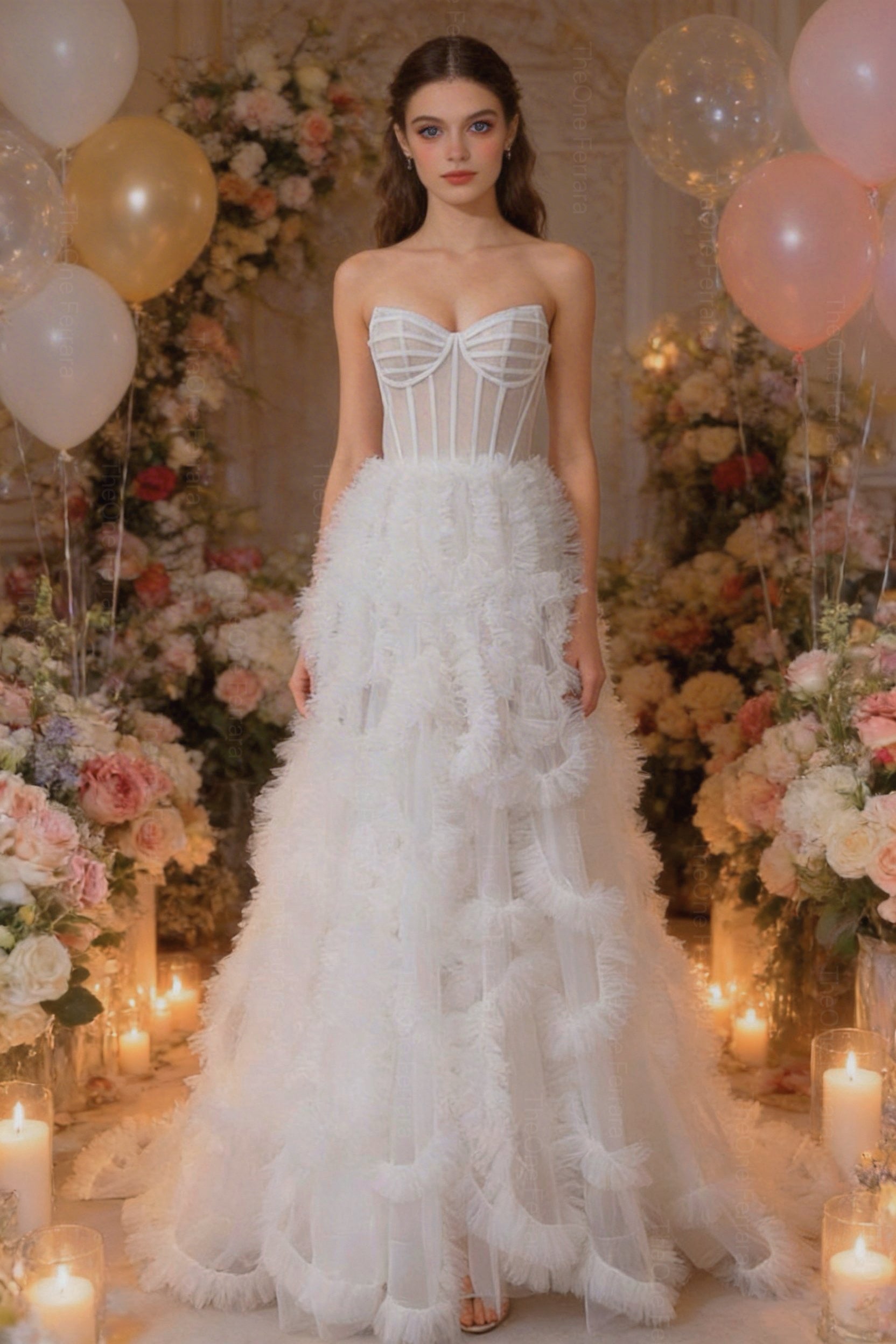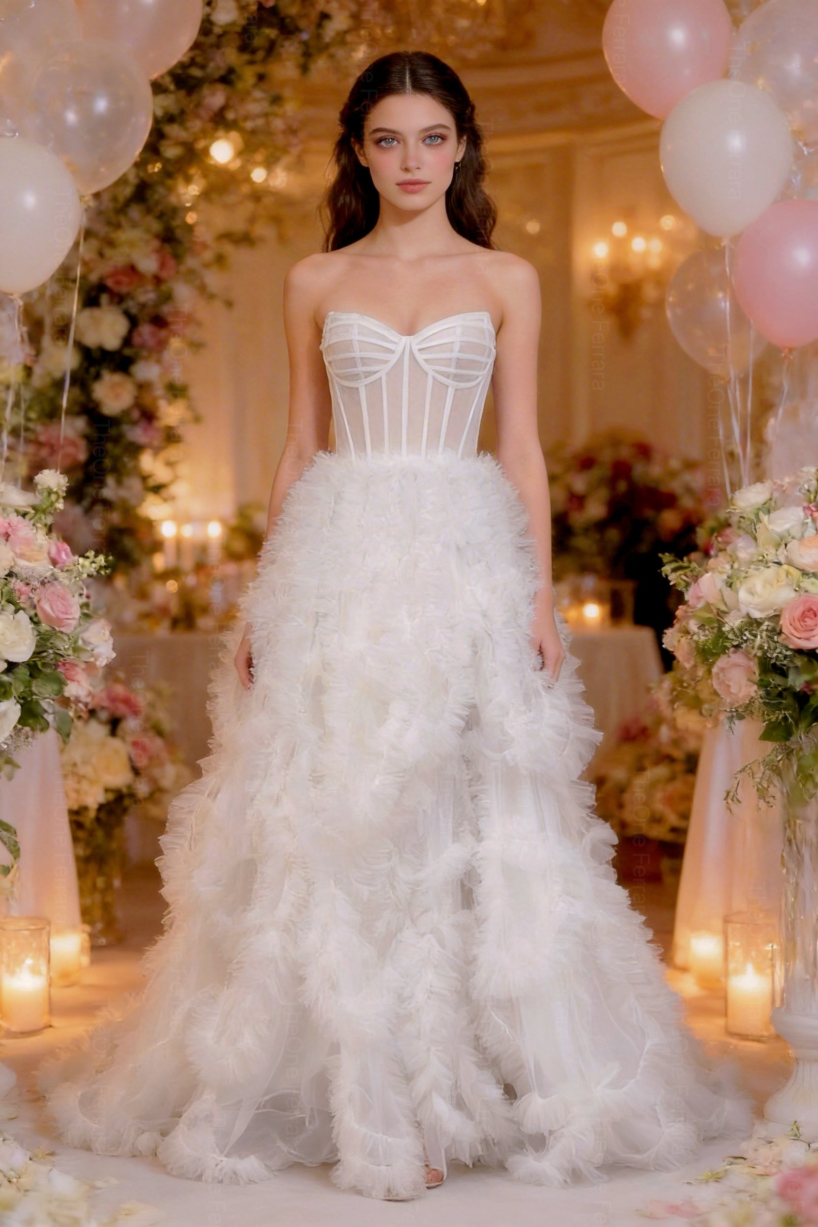 Abito da Sera Bianco con Corsetto e Tulle – Vestito Lungo Elegante Effetto Couture 883008