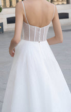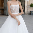 Il bustino include un sottostrato nude sotto il tulle bianco.