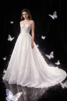 Abito da Sposa Principessa con Corsetto Nude e Strascico – Vestito Elegante in Tulle Glitter 828011