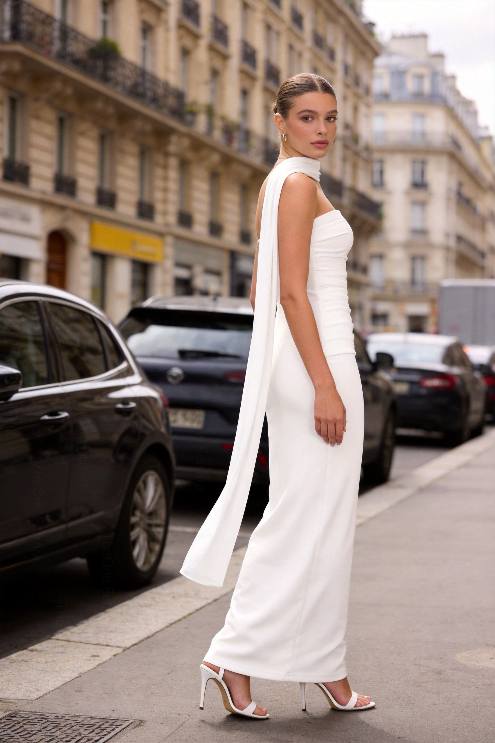 Disponibile in bianco luminoso o nero elegante, è perfetto per eventi serali, cerimonie minimal e occasioni formali contemporanee.