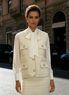 Questo gilet tweed è il capo transizionale perfetto che ti accompagna attraverso le stagioni. La sua versatilità lo rende indispensabile: aggiunge struttura ai look casual e raffina quelli formali, tutto mantenendo comfort e praticità.