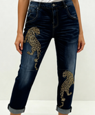 Jeans Donna con Strass Leopardo Oro - Boyfriend Fit Luxury 1600