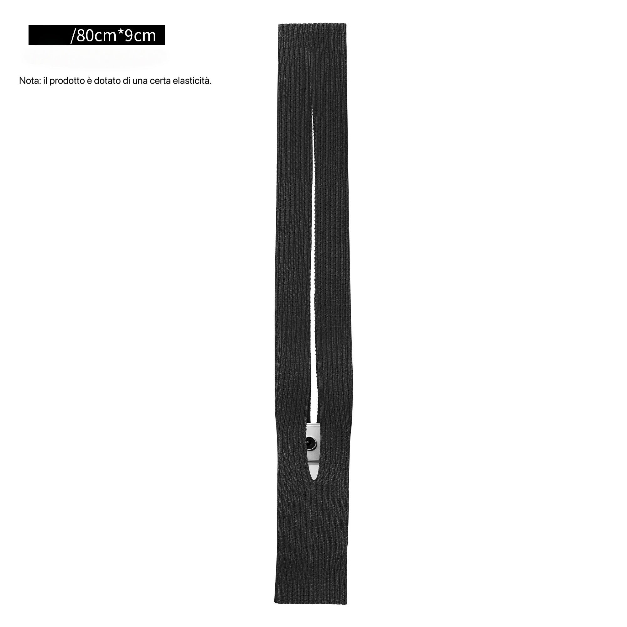 Formato lungo 80×9 cm, da indossare sul corpo per muoversi a mani libere nella vita quotidiana.