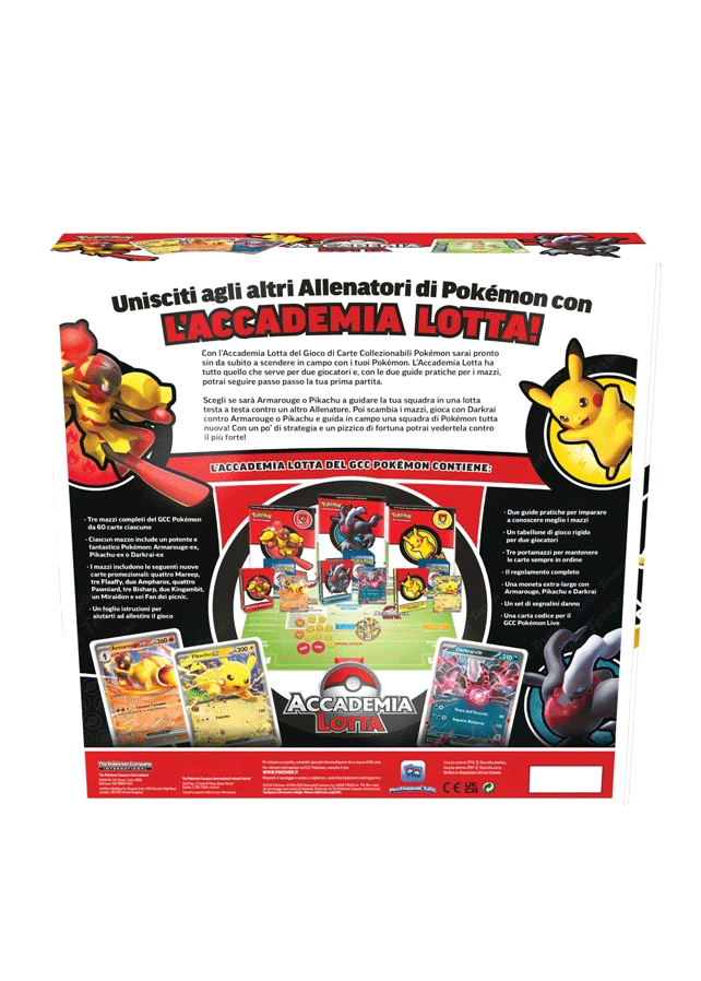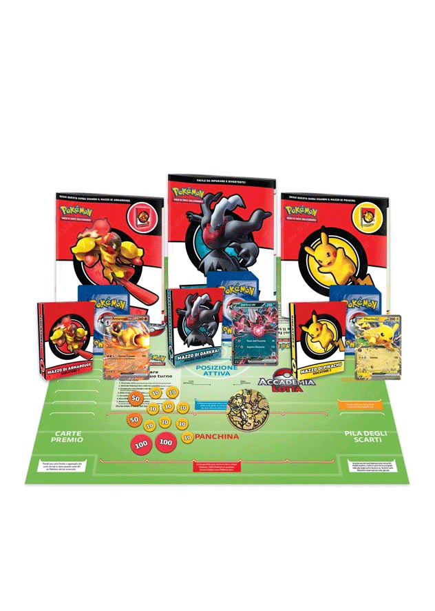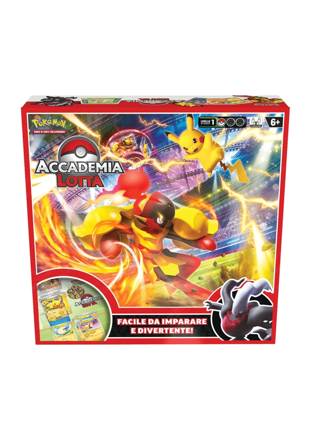con l'accademia lotta del gioco di carte collezionabili pokémon sarai pronto sin da subito a scendere in campo con i tuoi pokémon. l'accademia lotta ha tutto quello che serve per due giocatori e, con le due guide pratiche per i mazzi, potrai seguire passo passo la tua prima partita.