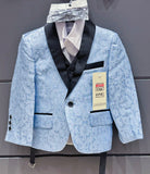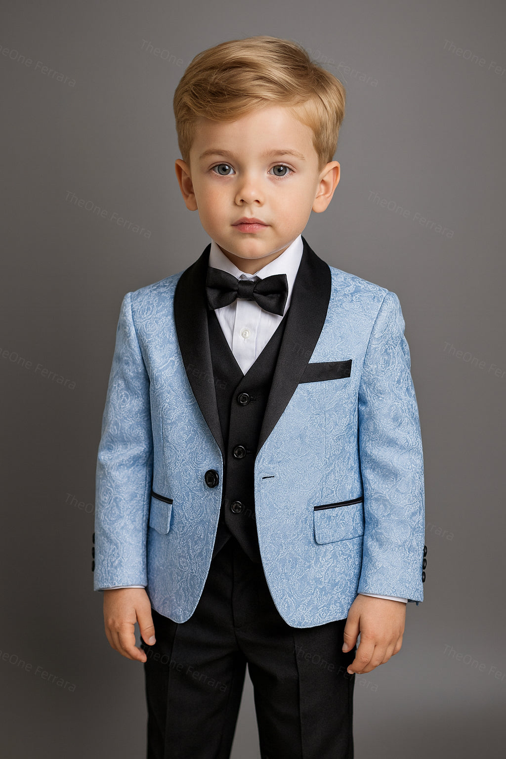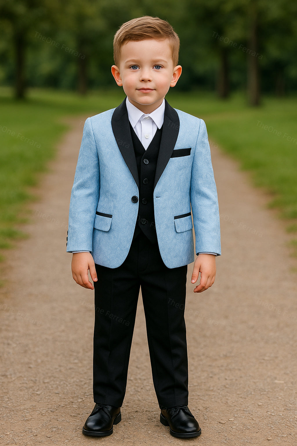 Completo Cerimonia Bambino 5 Pezzi – Abito Elegante Blu Jacquard con Gilet, Camicia, Pantaloni e Papillon Matrimonio & Eventi Speciali 1-16Anni A75 TheOne