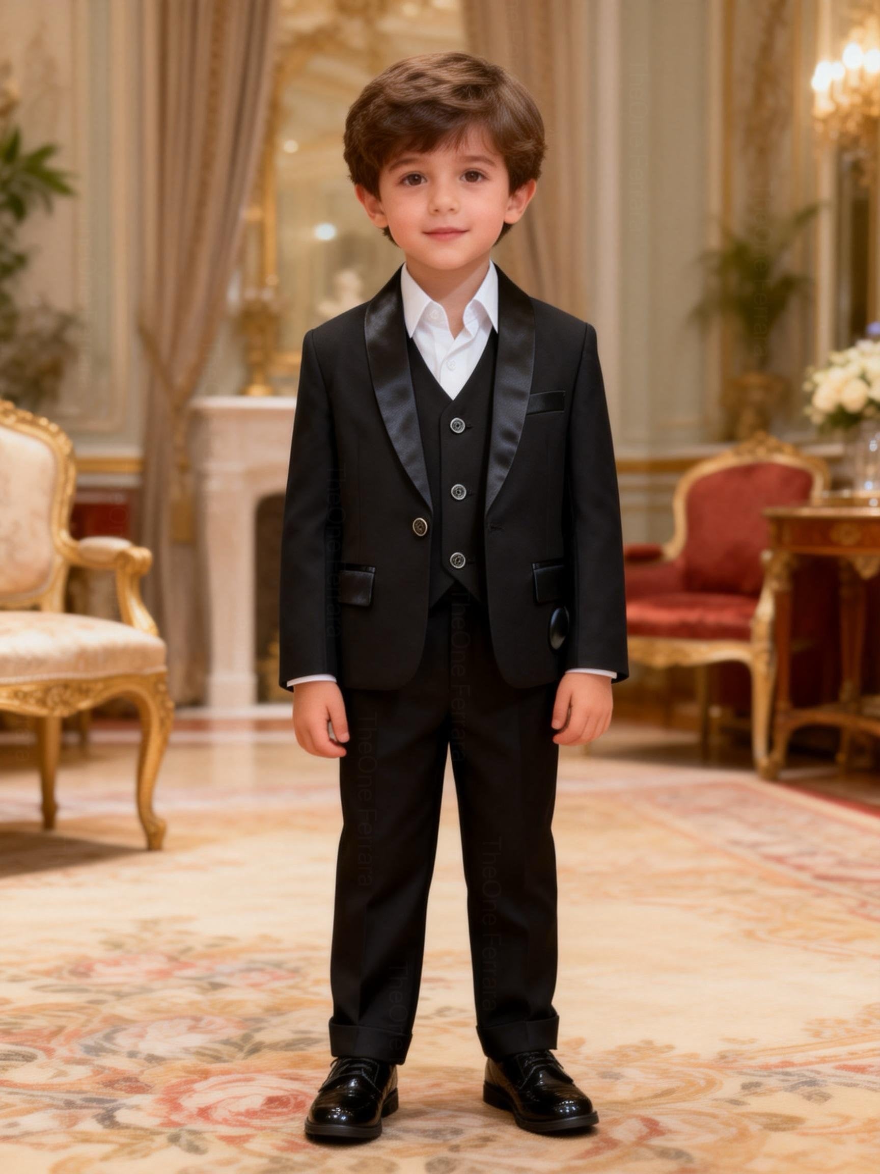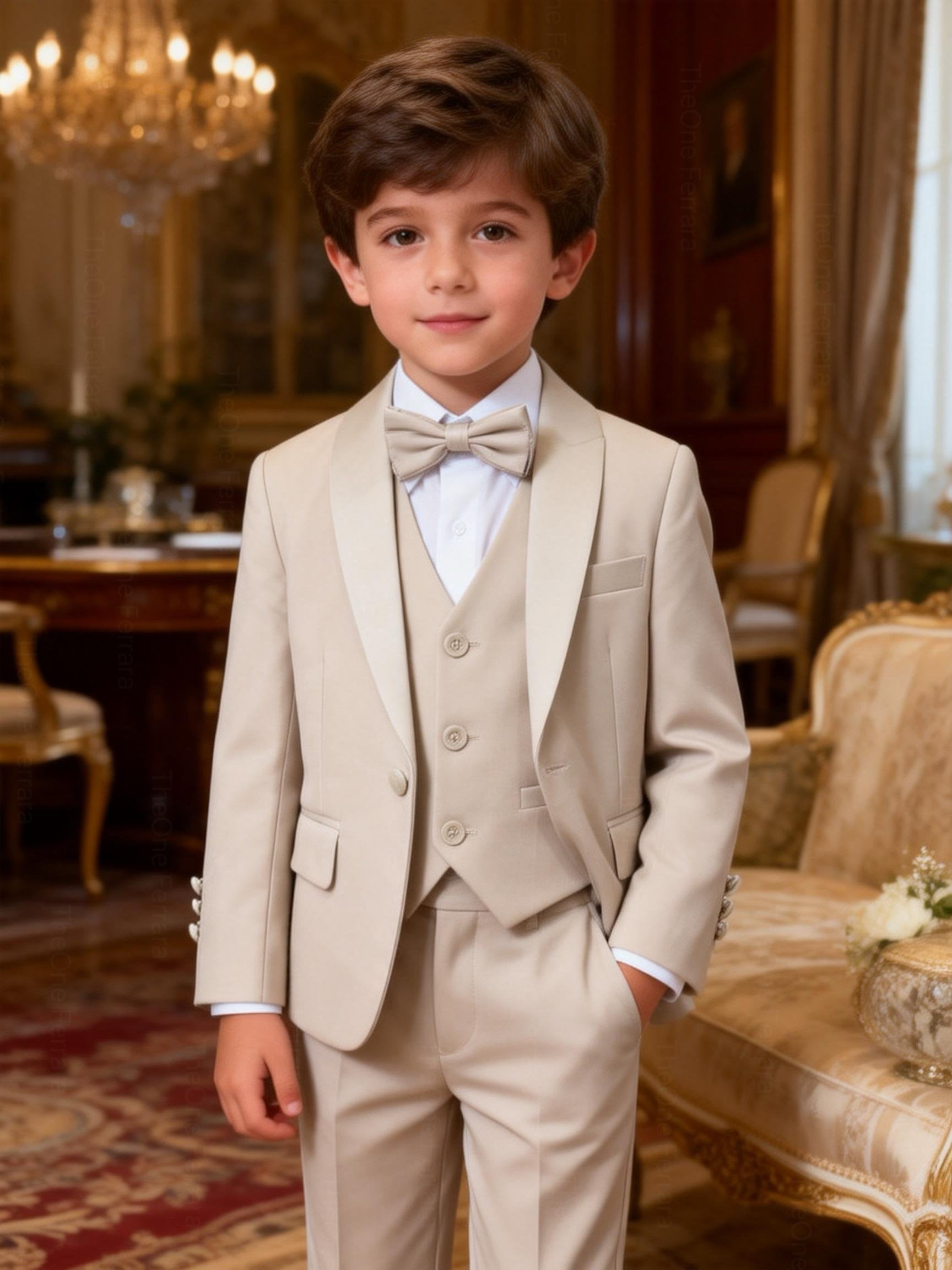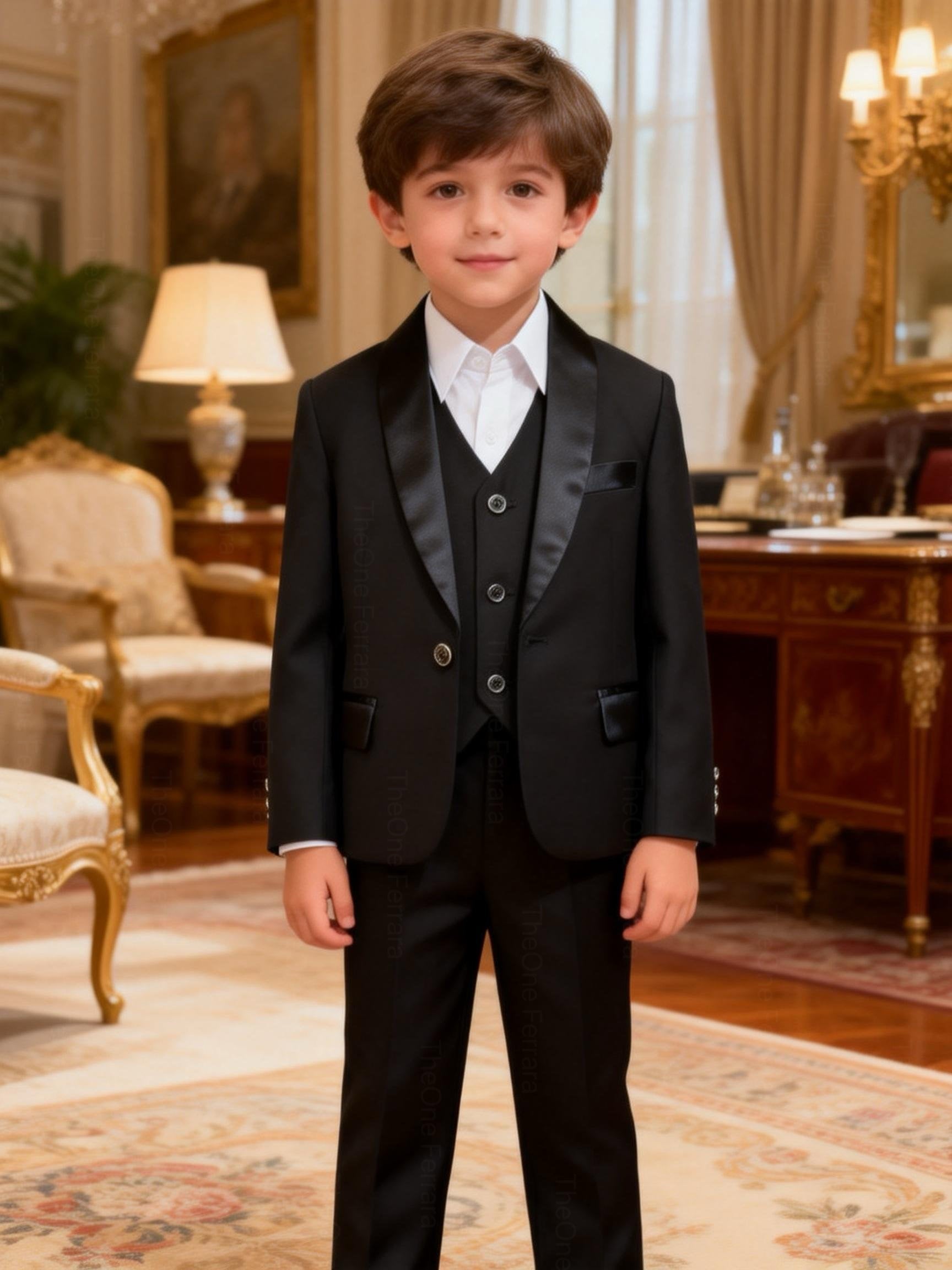 Elegante Completo Cerimonia 5 Pezzi per Bambini 1‑16 Anni – Giacca, Gilet, Camicia, Pantaloni e Papillon A17-TheOne Ferrara