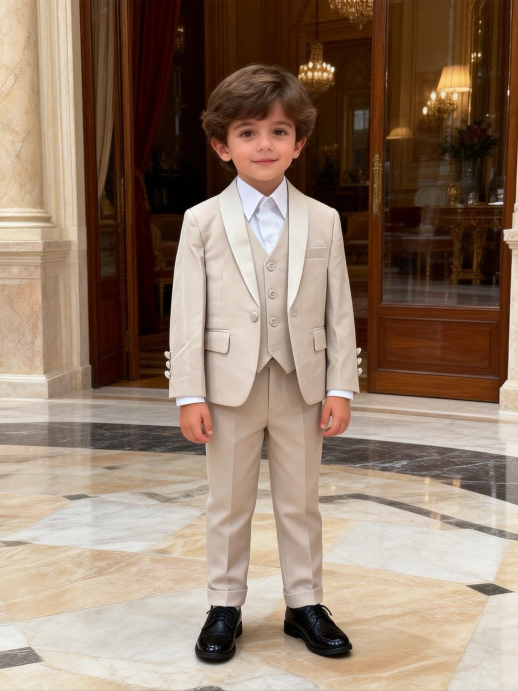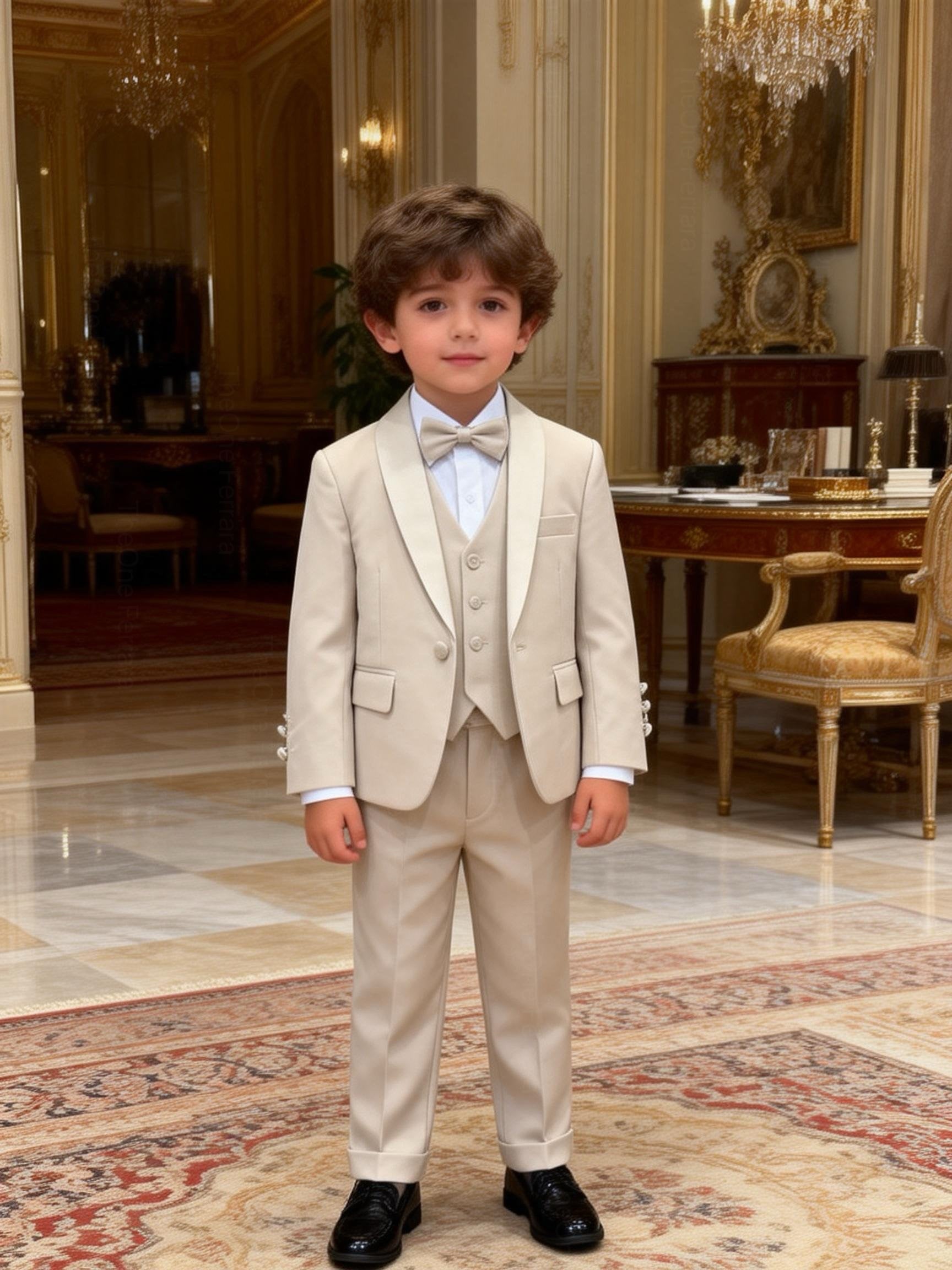 Fai brillare il tuo piccolo gentiluomo in ogni occasione speciale con questo completo cerimonia 5 pezzi per bambini da 1 a 16 anni. Un outfit classico e raffinato per matrimoni, battesimi, feste di famiglia e altri eventi importanti che combina stile, comfort e qualità.