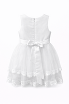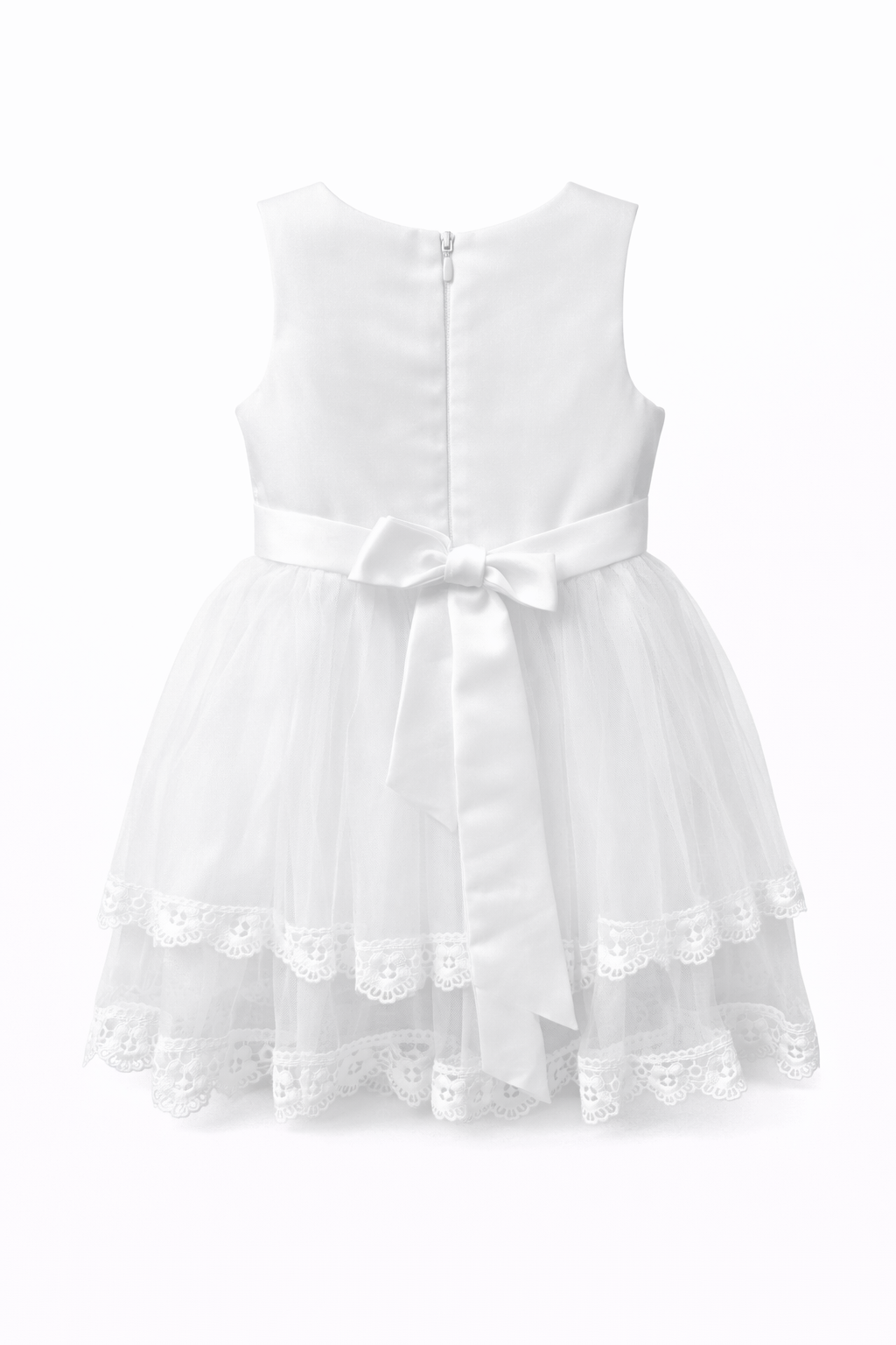 Abito da Battesimo Neonata Bianco 6–36 Mesi – Tulle a Strati con Bordo in Pizzo e Fiocco sul Retro Cerimonia Chiesa 660