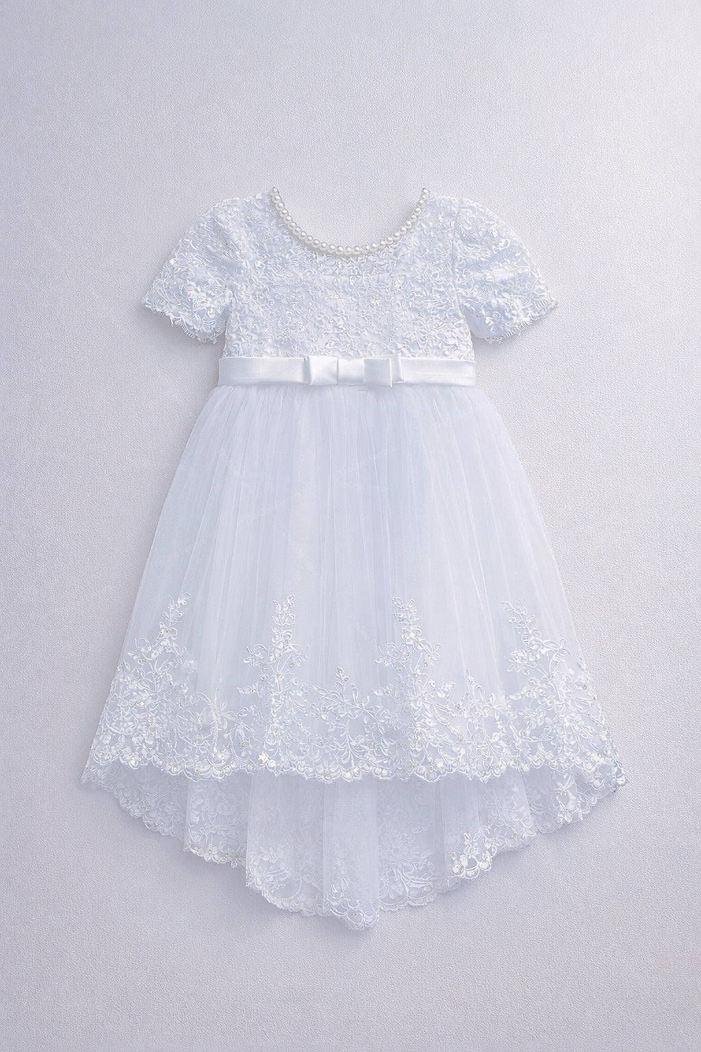 Elegante e delicato, questo abito da cerimonia per bambina è pensato per i momenti più importanti: Prima Comunione, matrimonio, damigella d’onore, feste eleganti e cerimonie religiose.