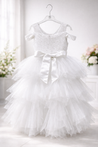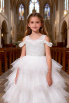 Abito da Cerimonia Bambina Bianco con Tulle e Paillettes 2–14 Anni 8238 -TheOne