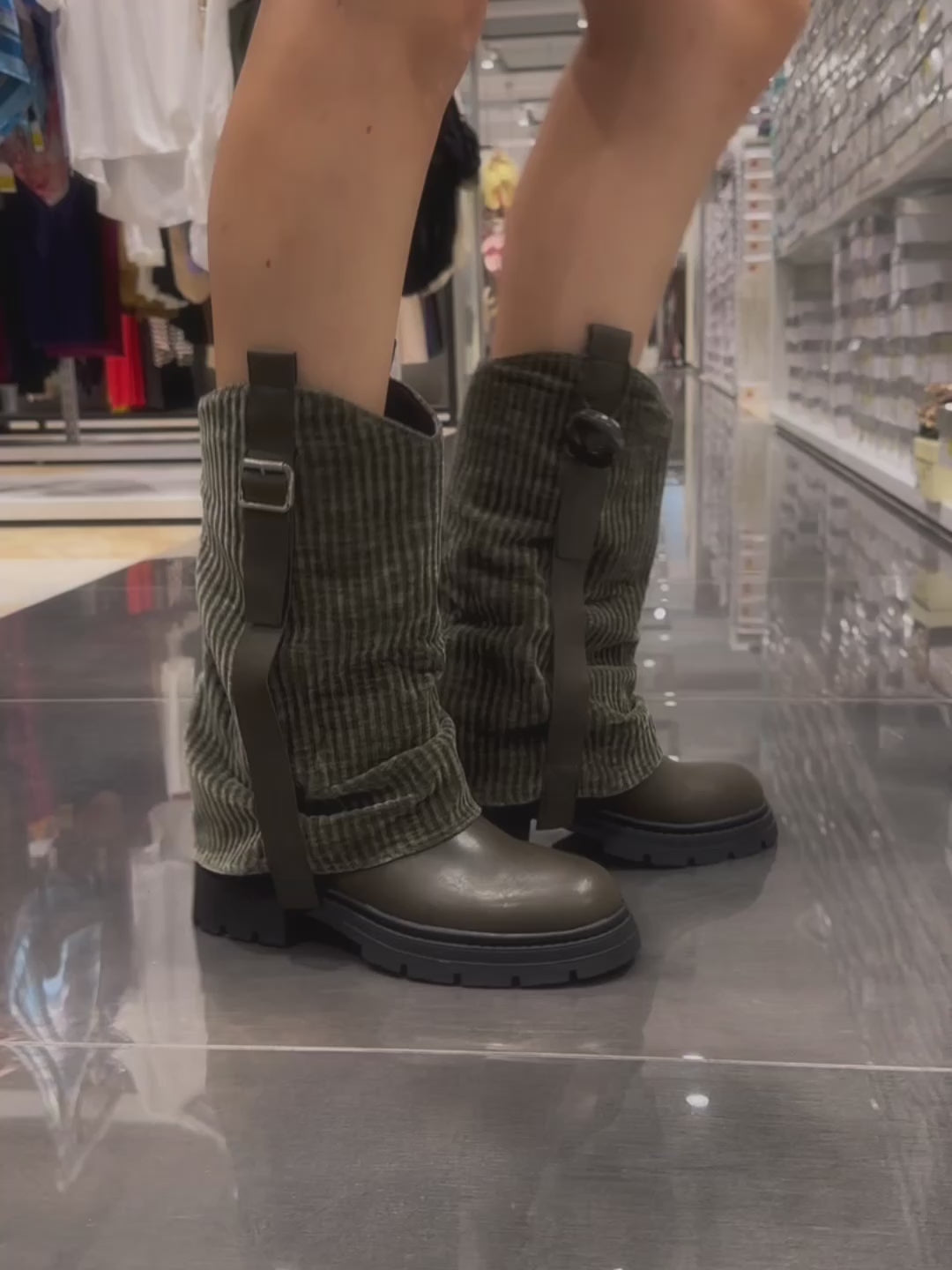 Dai un tocco unico al tuo look autunno/inverno con questi stivali verdi in velluto a coste con cinturino!