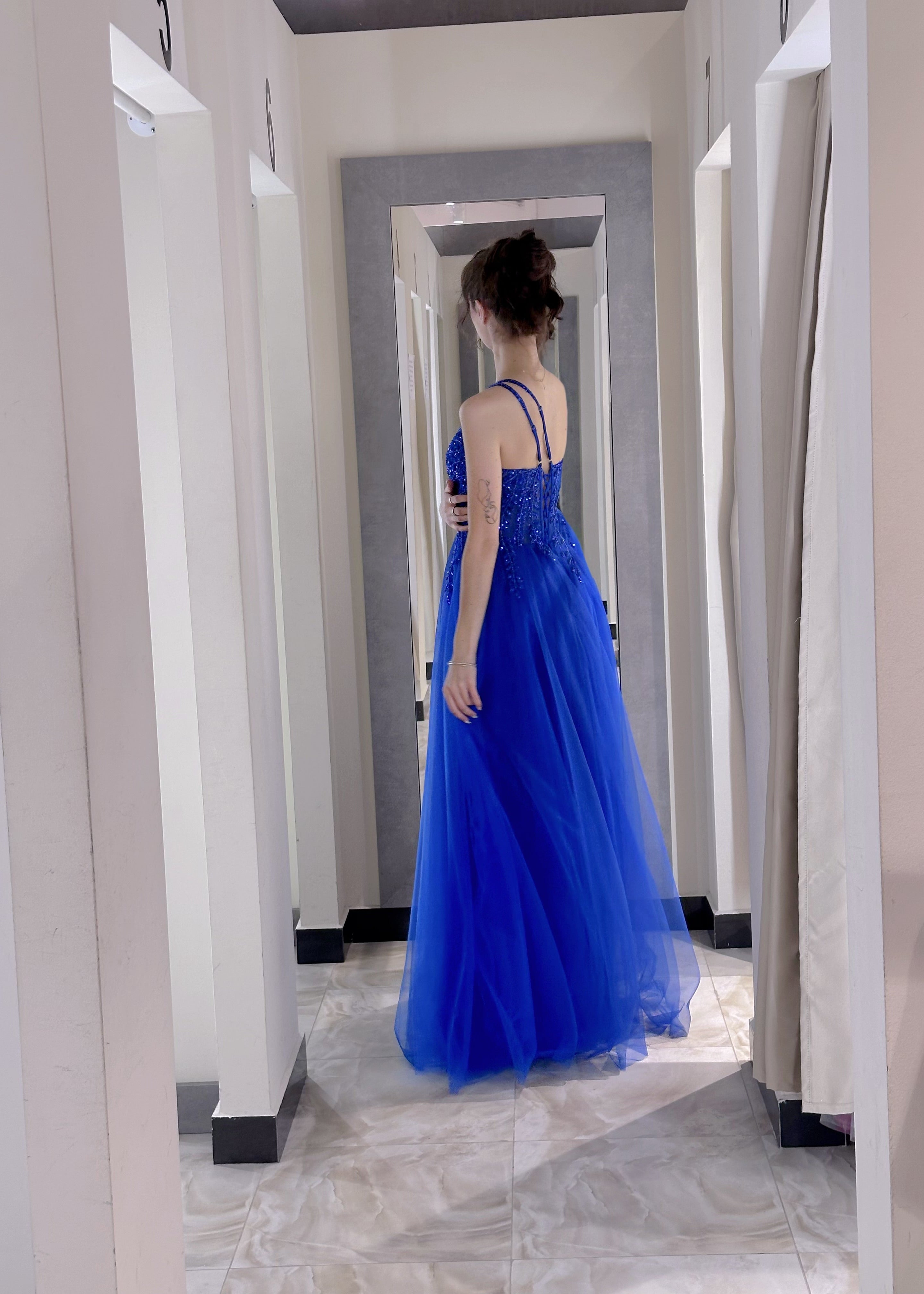 Abito da Sera Asimmetrico in Tulle Blu Reale