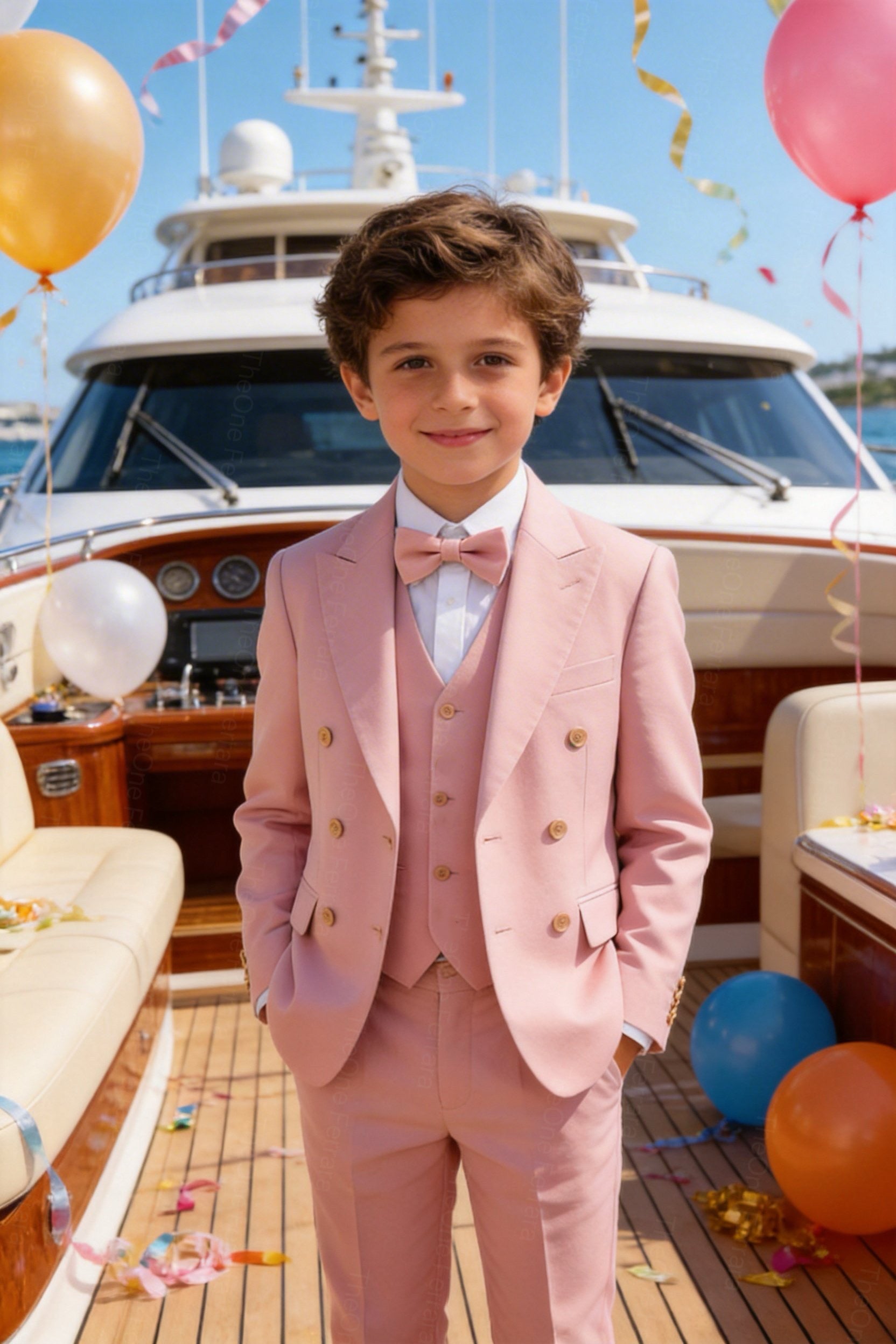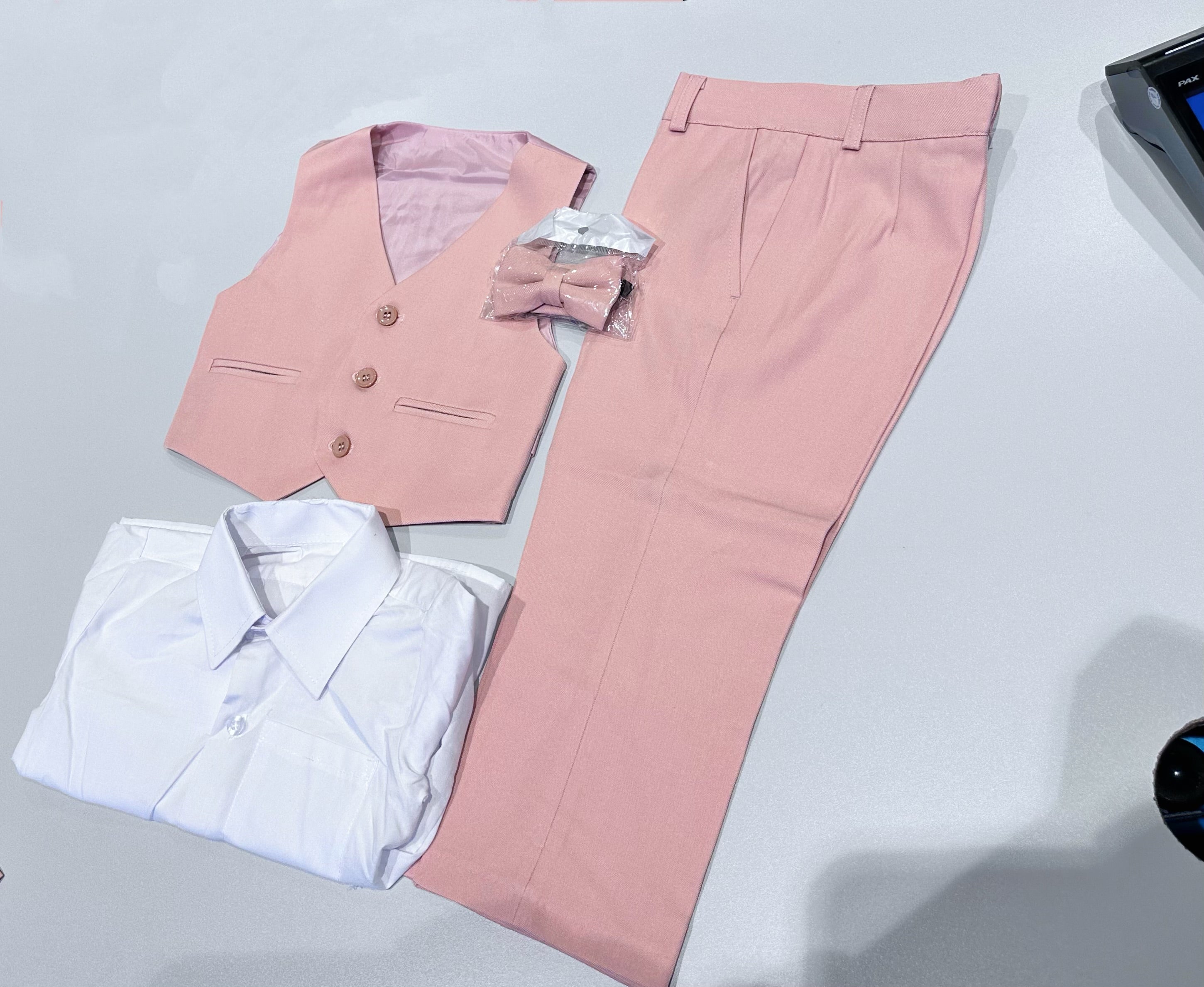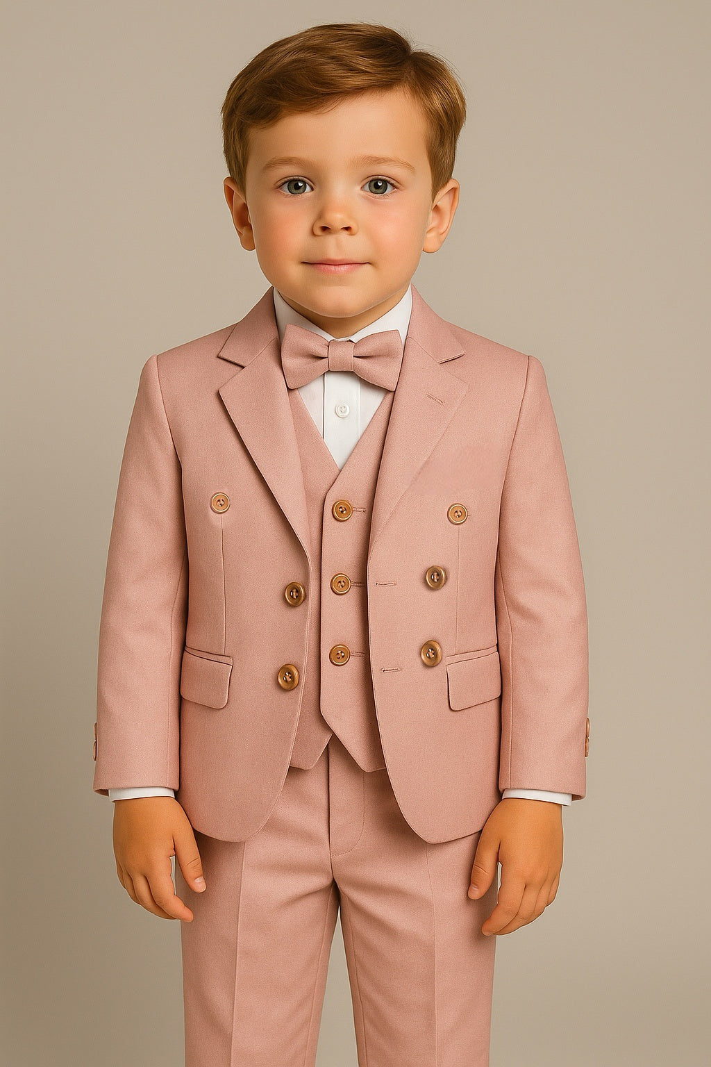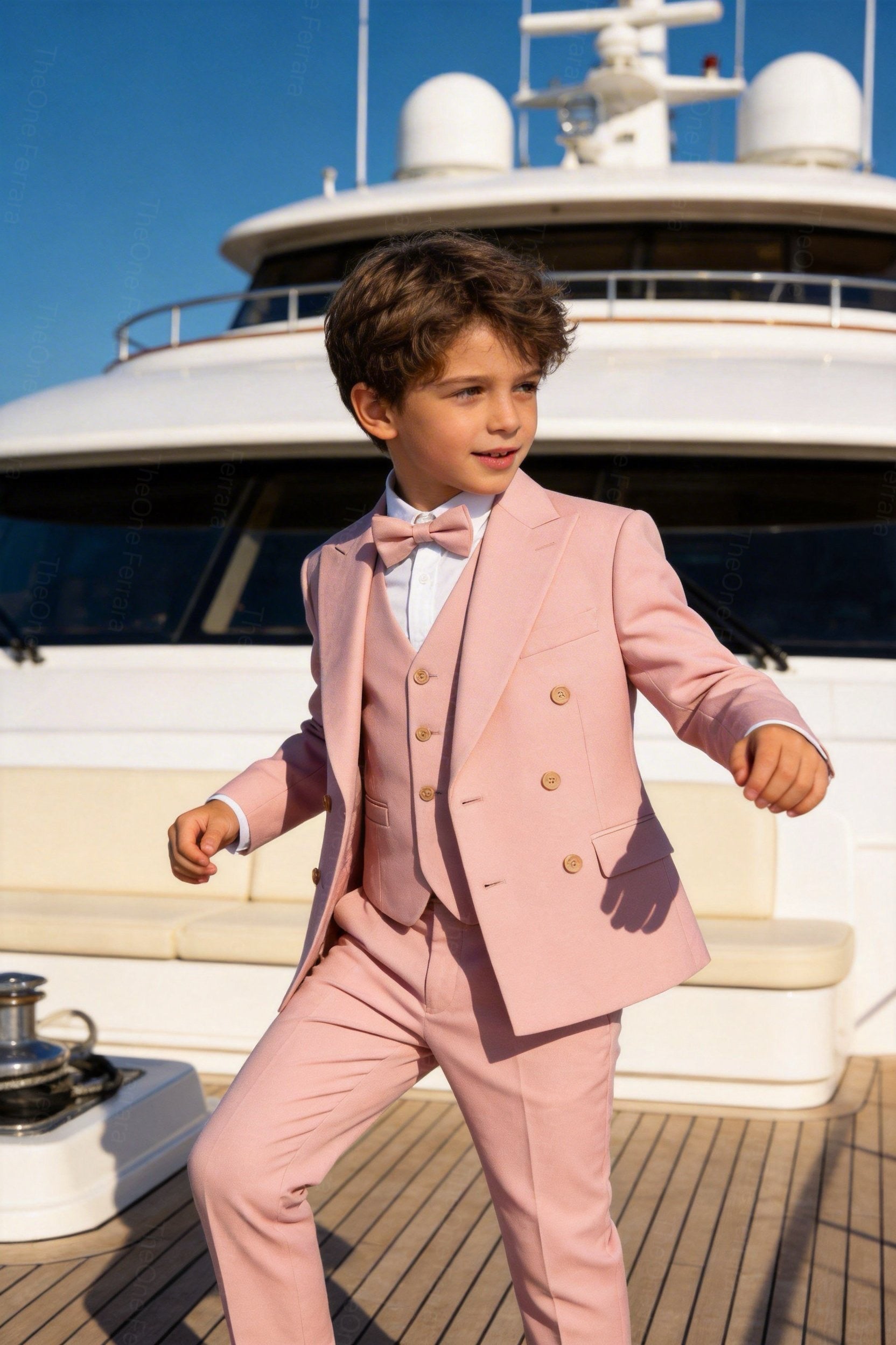 Completo Cerimonia Bambino in Stile Sartoriale – Abito Elegante Rosa Cipria con Gilet e Papillon | Perfetto per Matrimoni ed Eventi Speciali 1-16anni -218 TheOne
