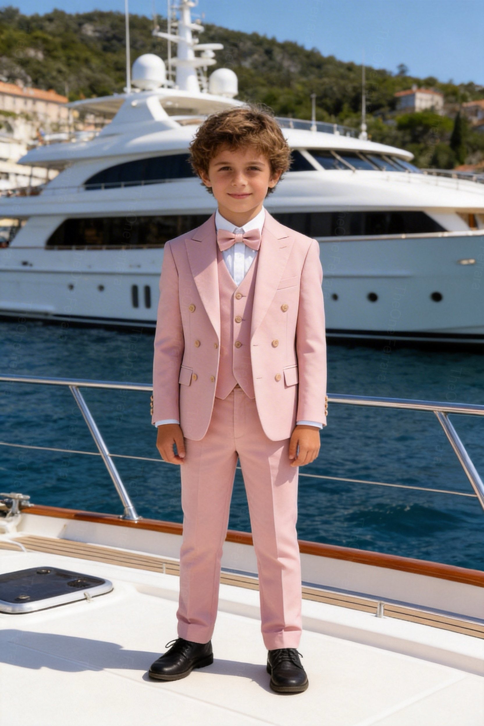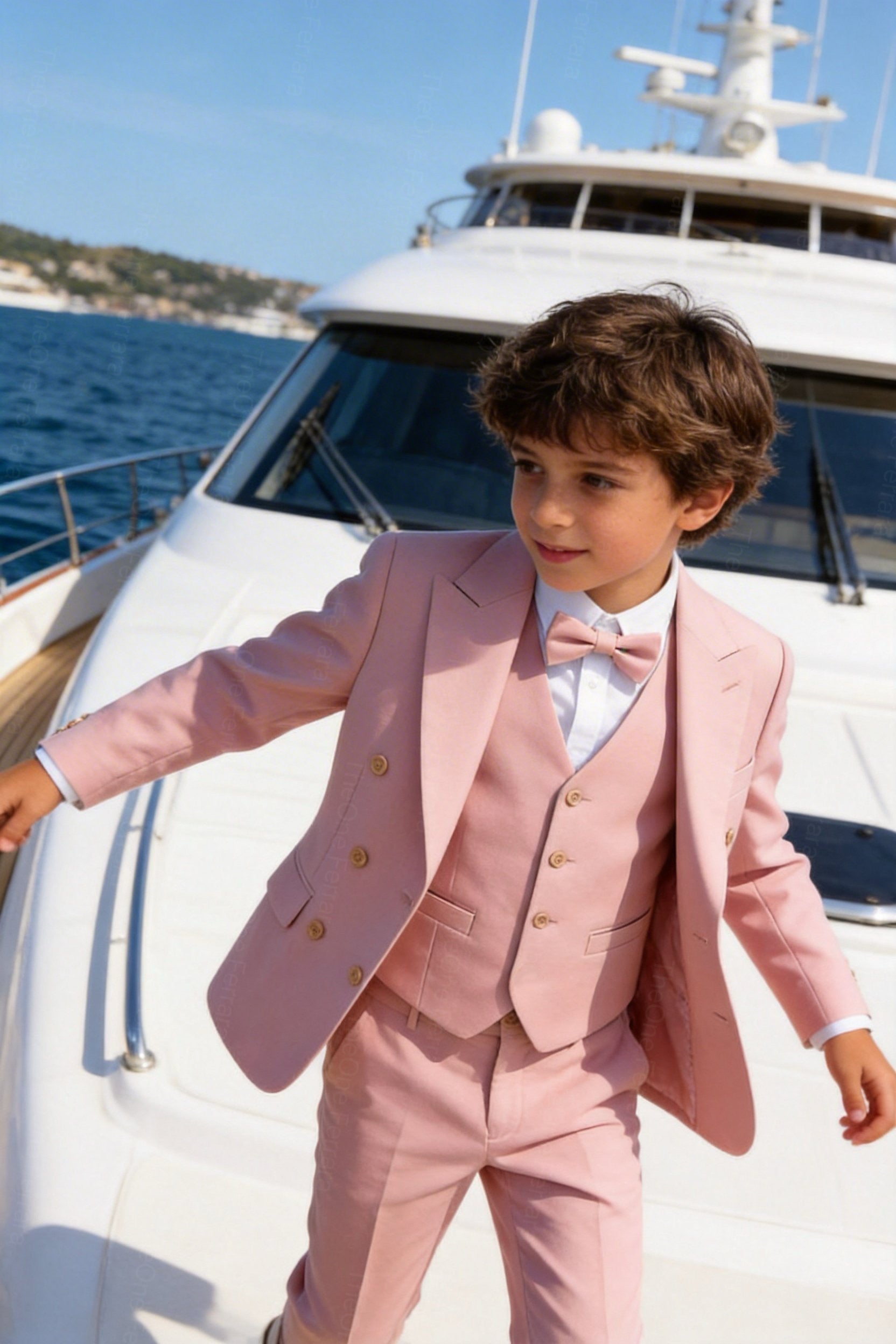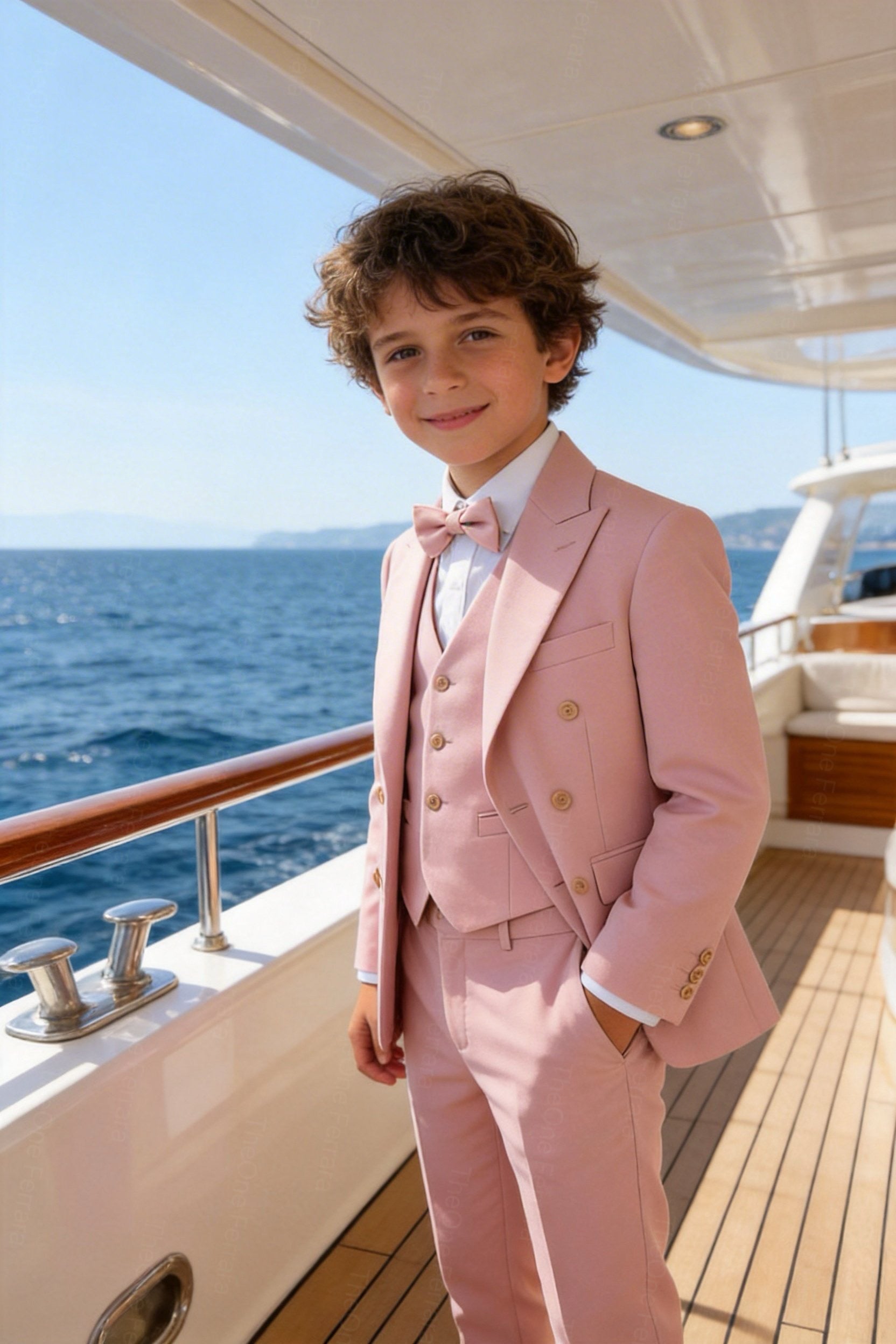 Completo Cerimonia Bambino in Stile Sartoriale – Abito Elegante Rosa Cipria con Gilet e Papillon | Perfetto per Matrimoni ed Eventi Speciali 1-16anni -218 TheOne