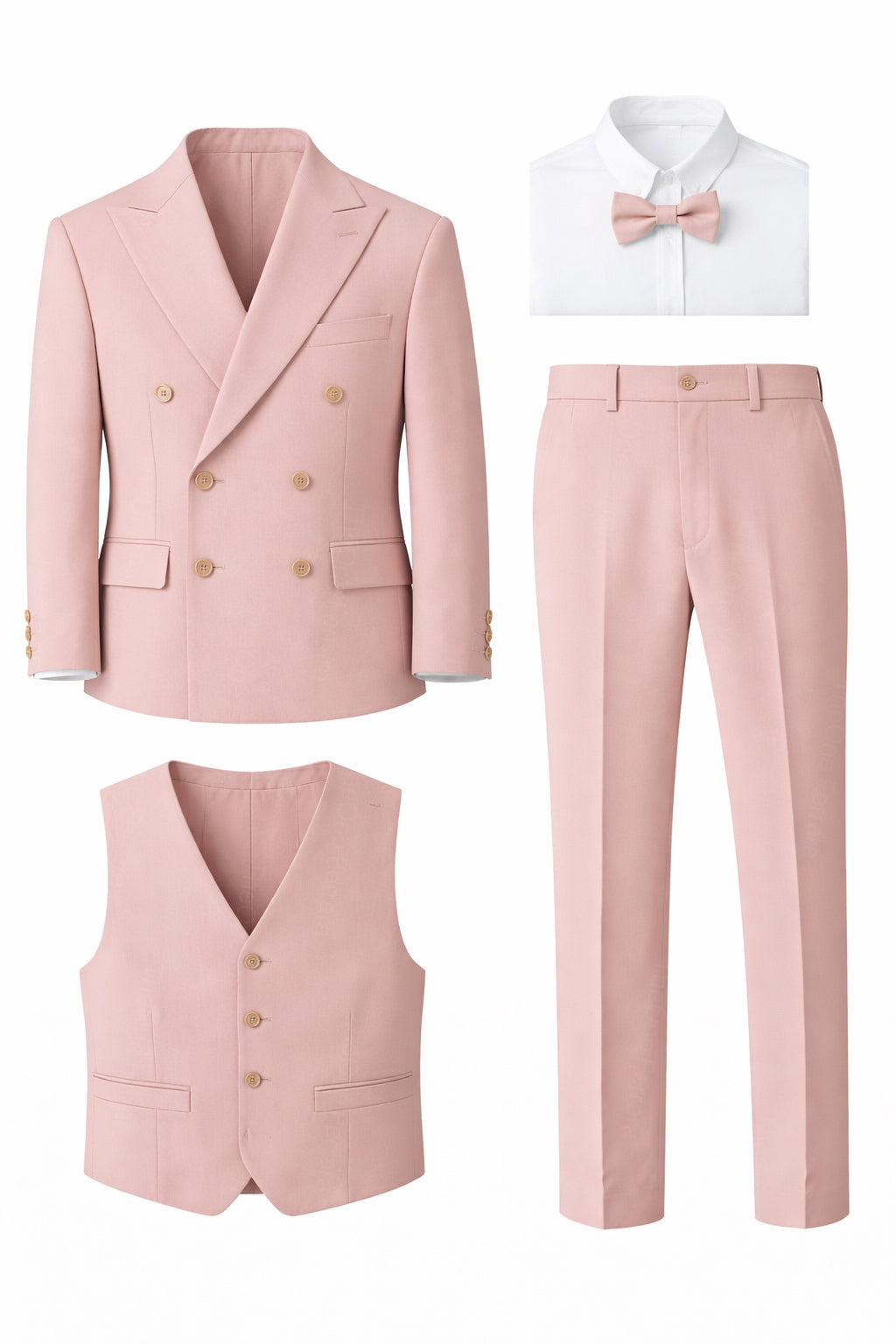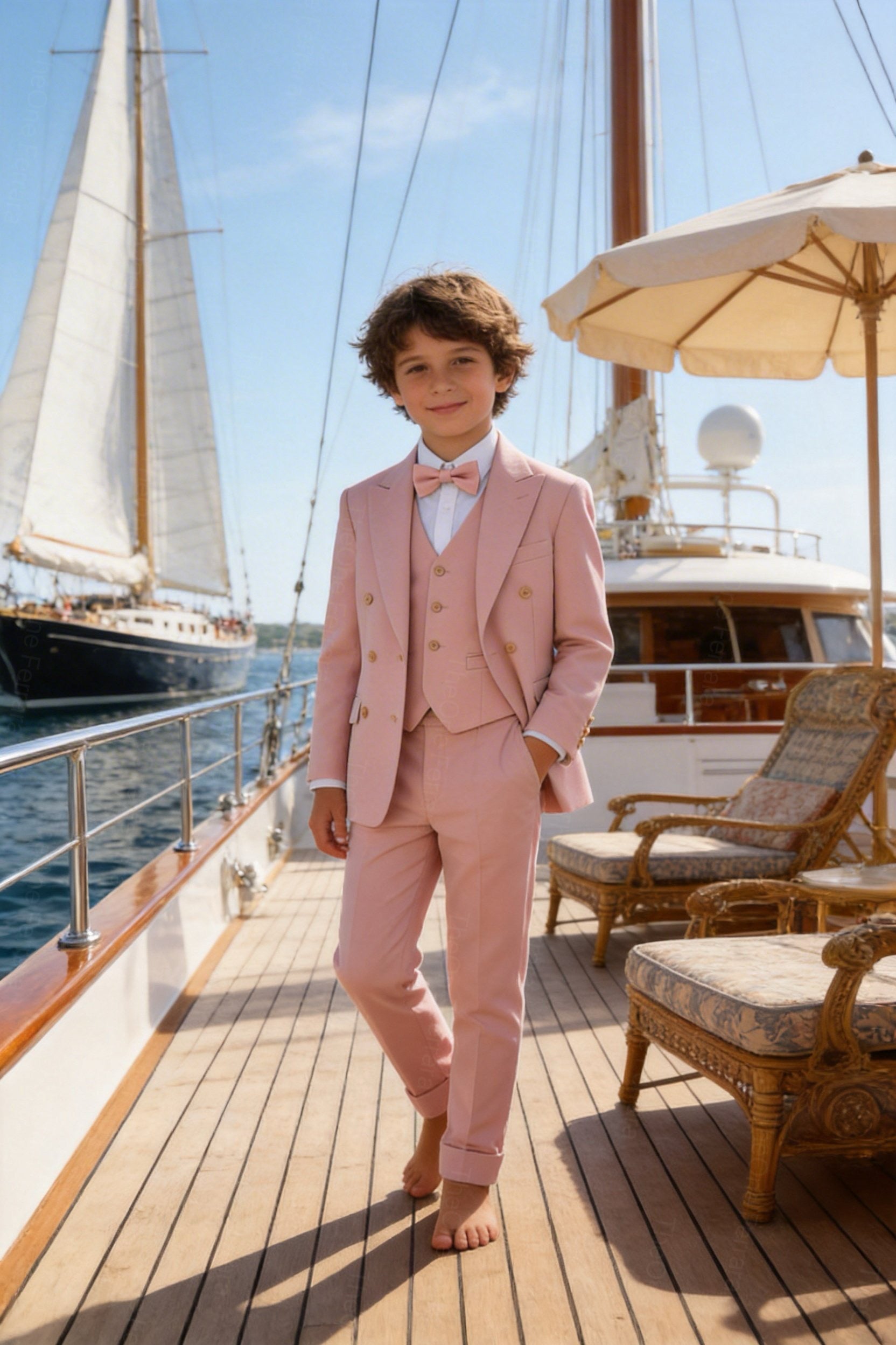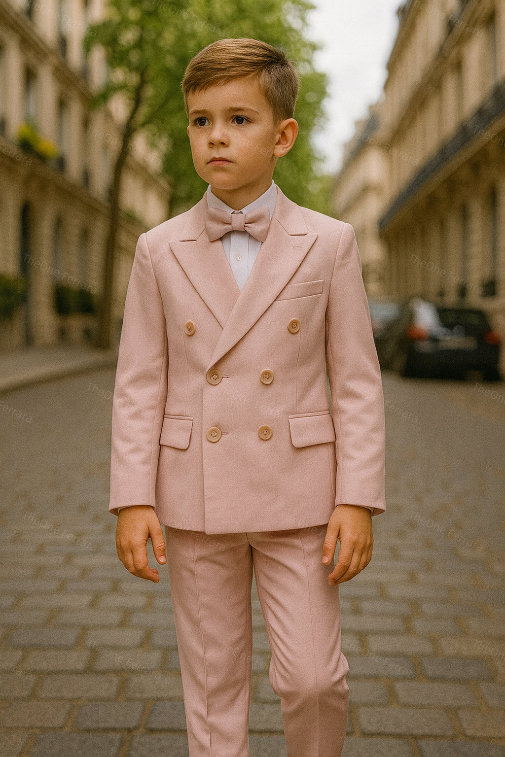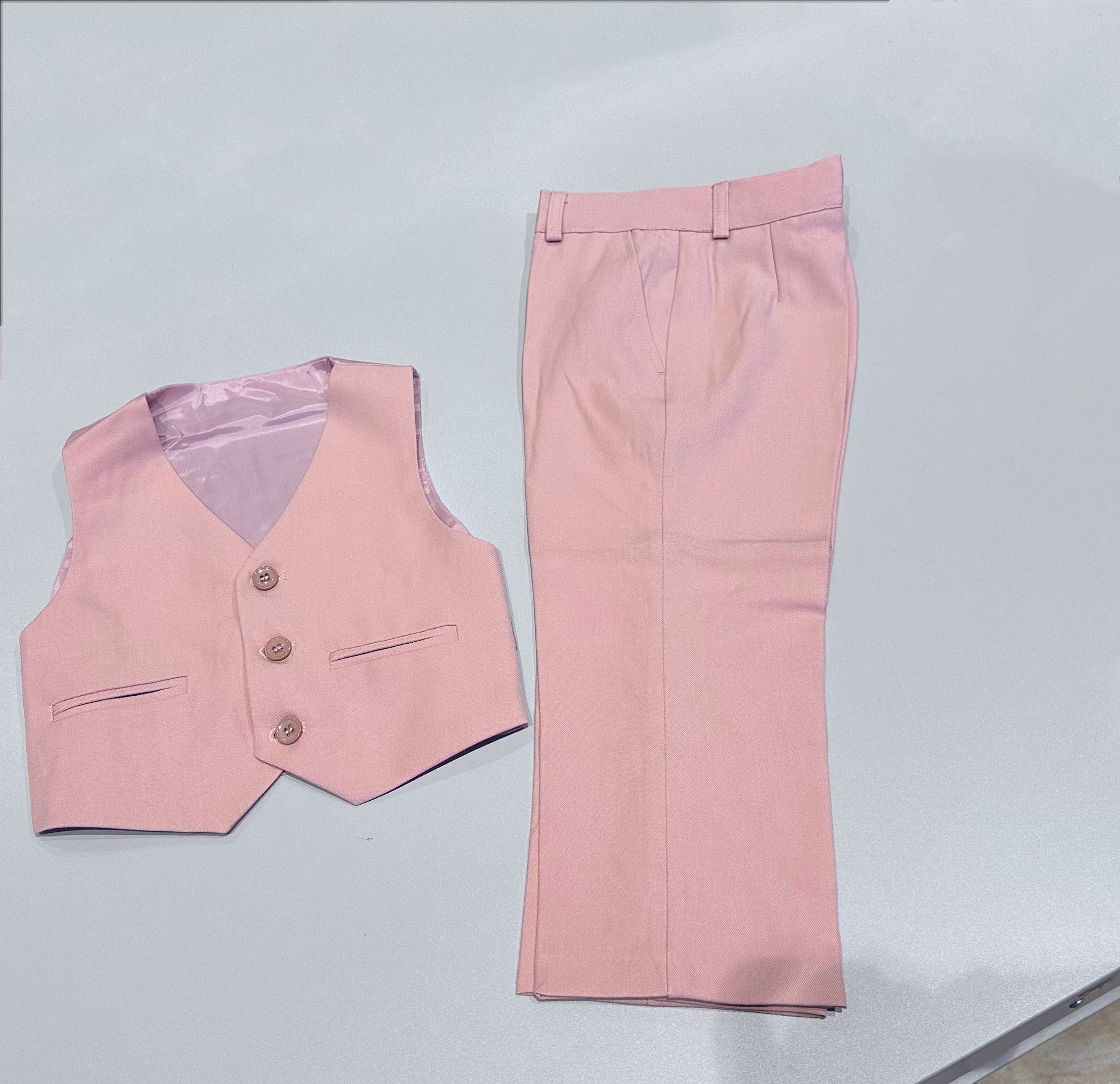 Completo Cerimonia Bambino in Stile Sartoriale – Abito Elegante Rosa Cipria con Gilet e Papillon | Perfetto per Matrimoni ed Eventi Speciali 1-16anni -218 TheOne