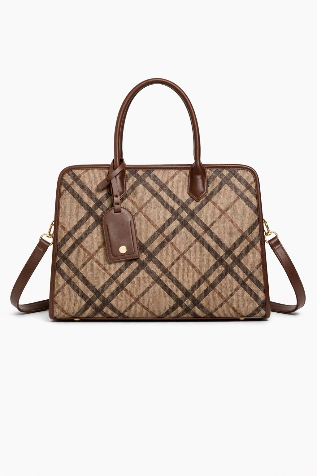 La struttura rigida mantiene la forma perfetta, mentre la stampa check dona un tocco elegante e senza tempo.