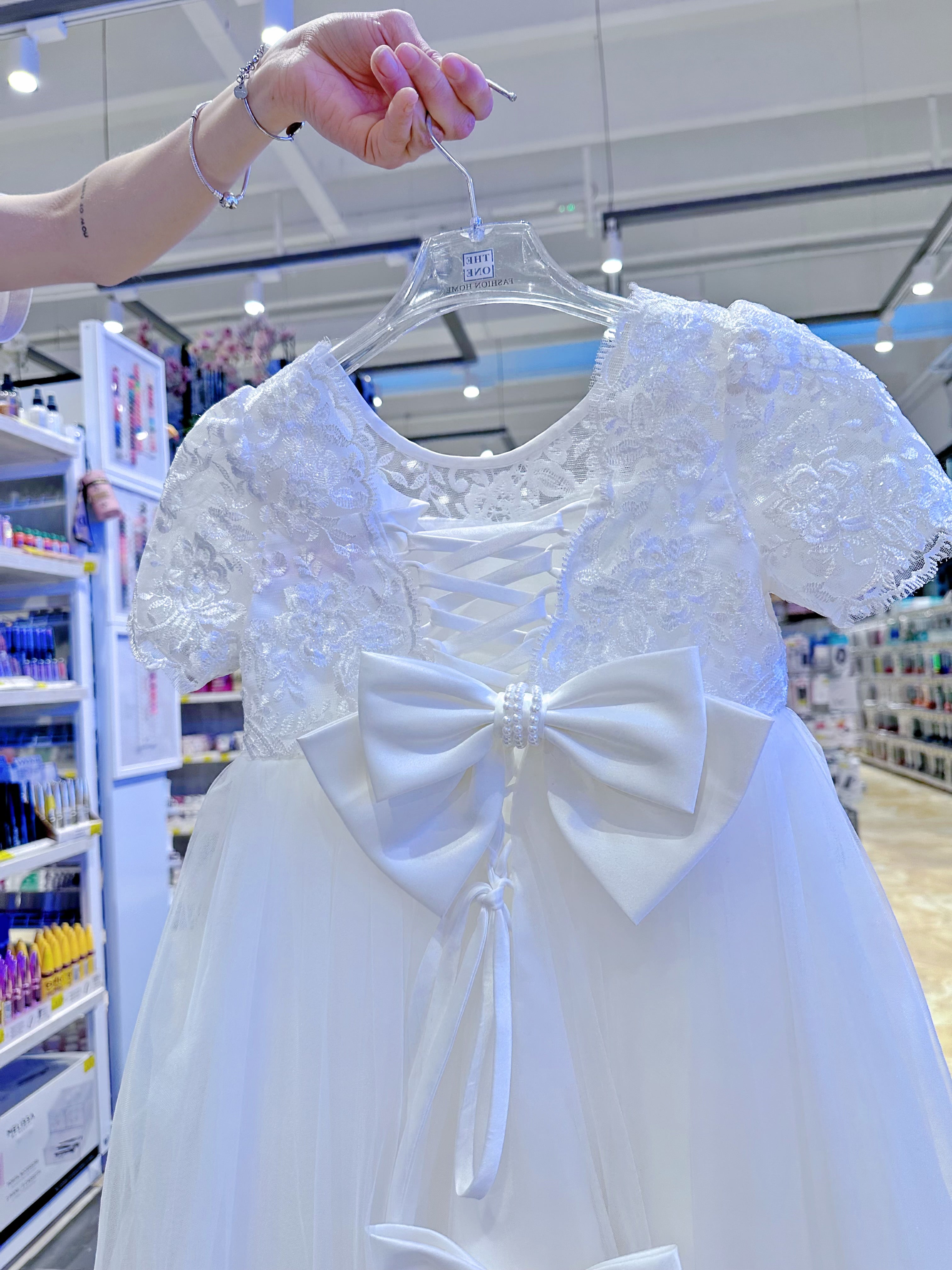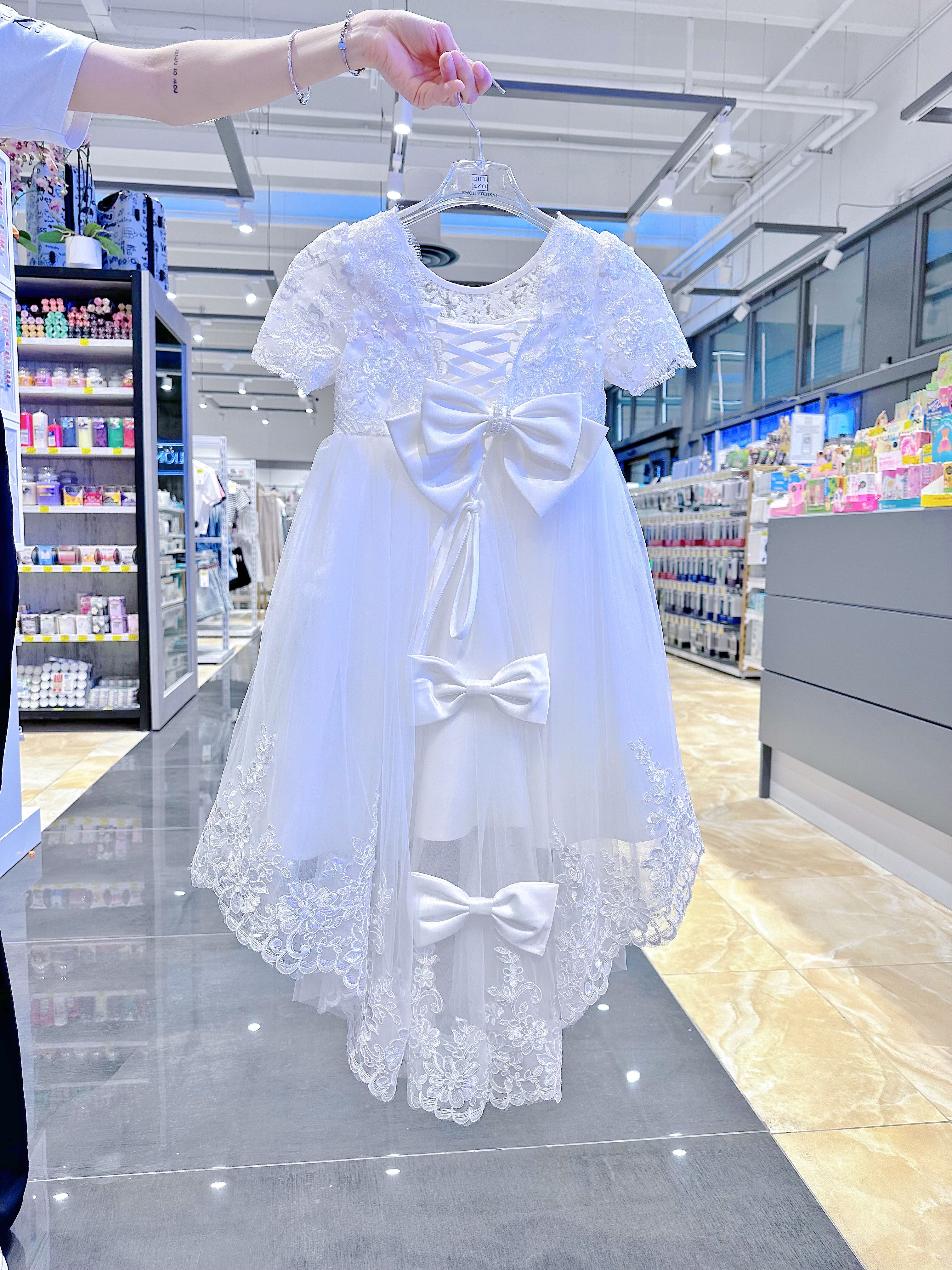 Crea un’atmosfera da favola per la tua piccola principessa. Questo abito in pizzo bianco con dettagli ricamati e fiocchi tridimensionali è perfetto per matrimoni, feste di compleanno e servizi fotografici.
