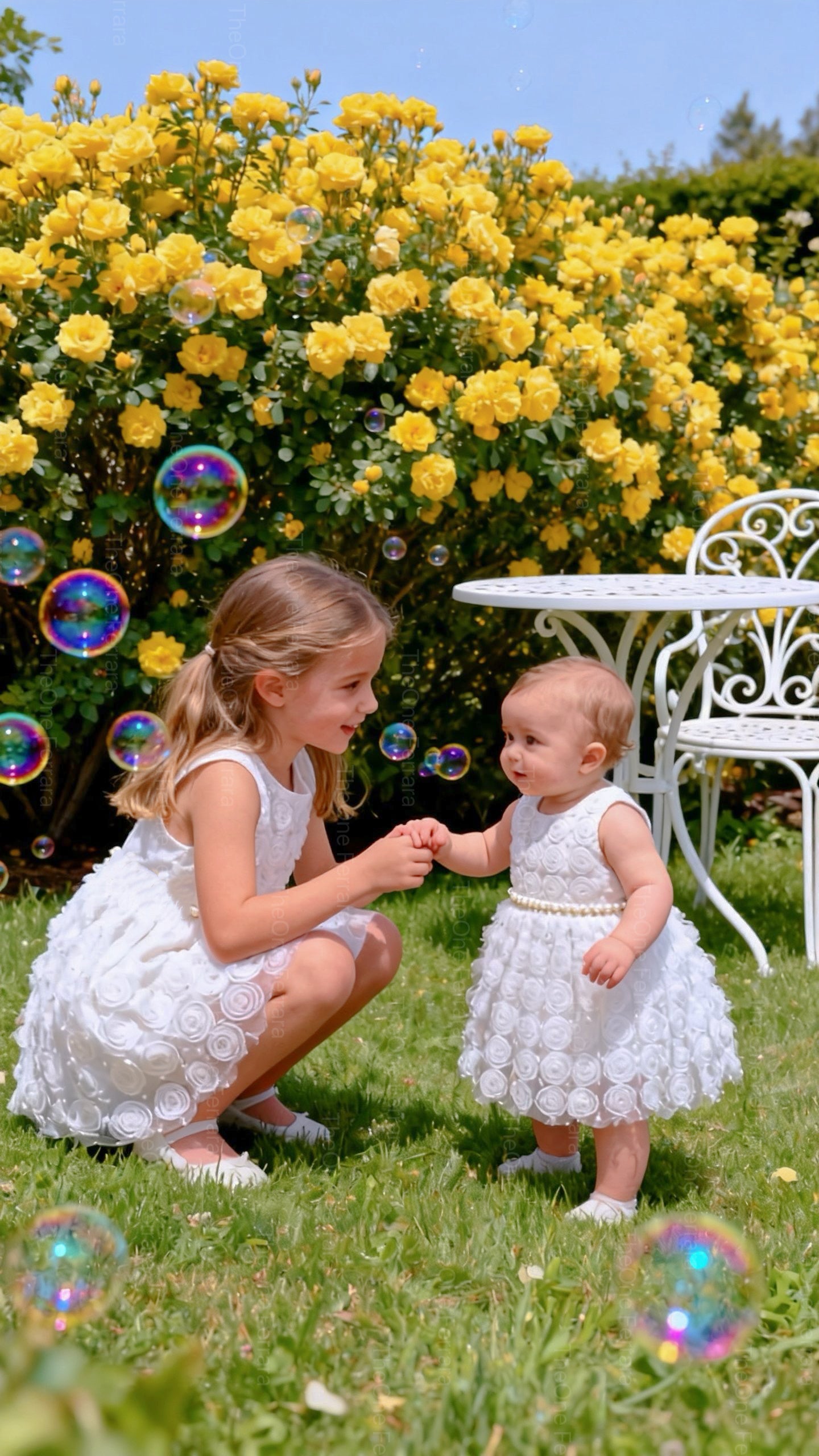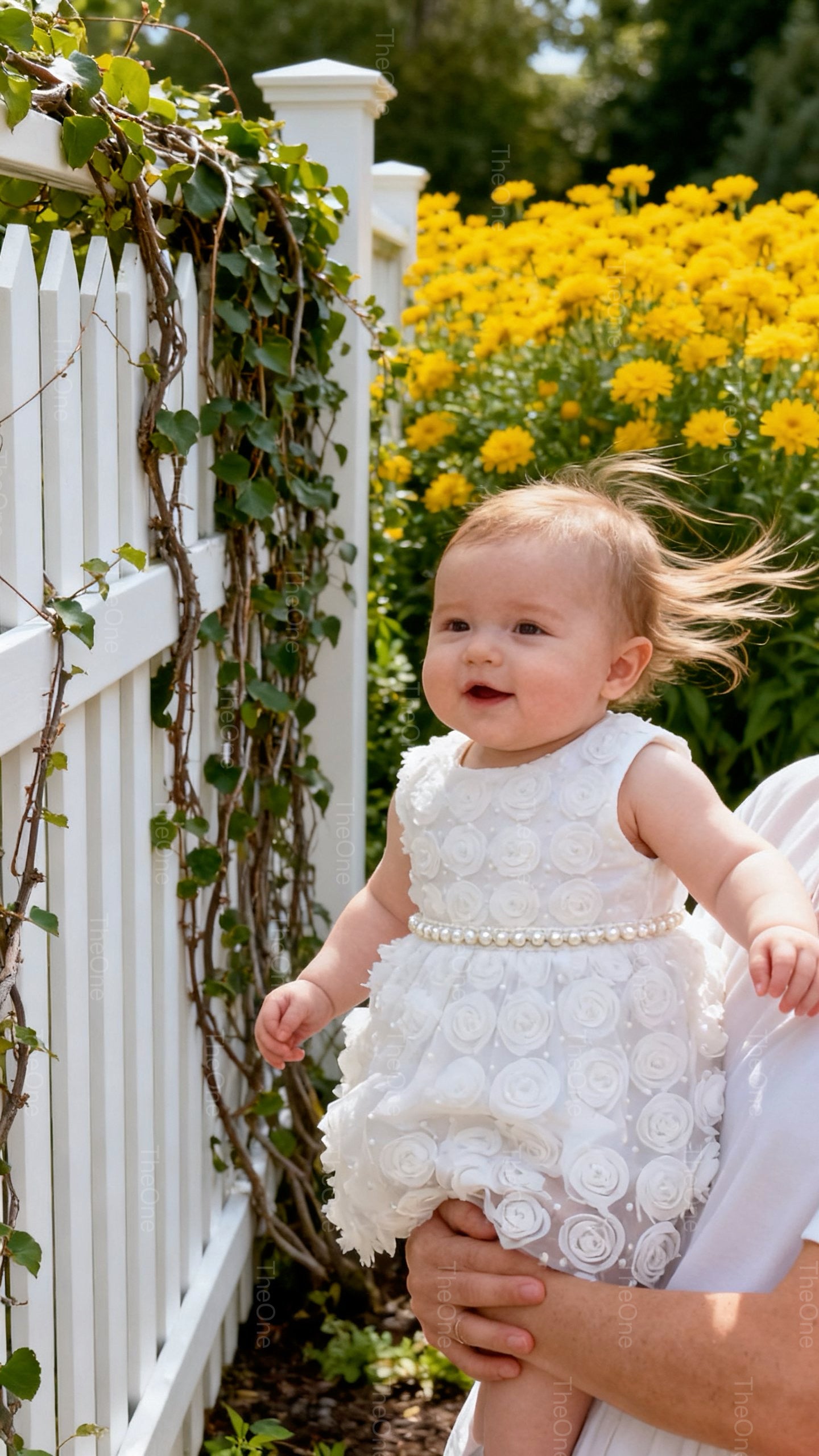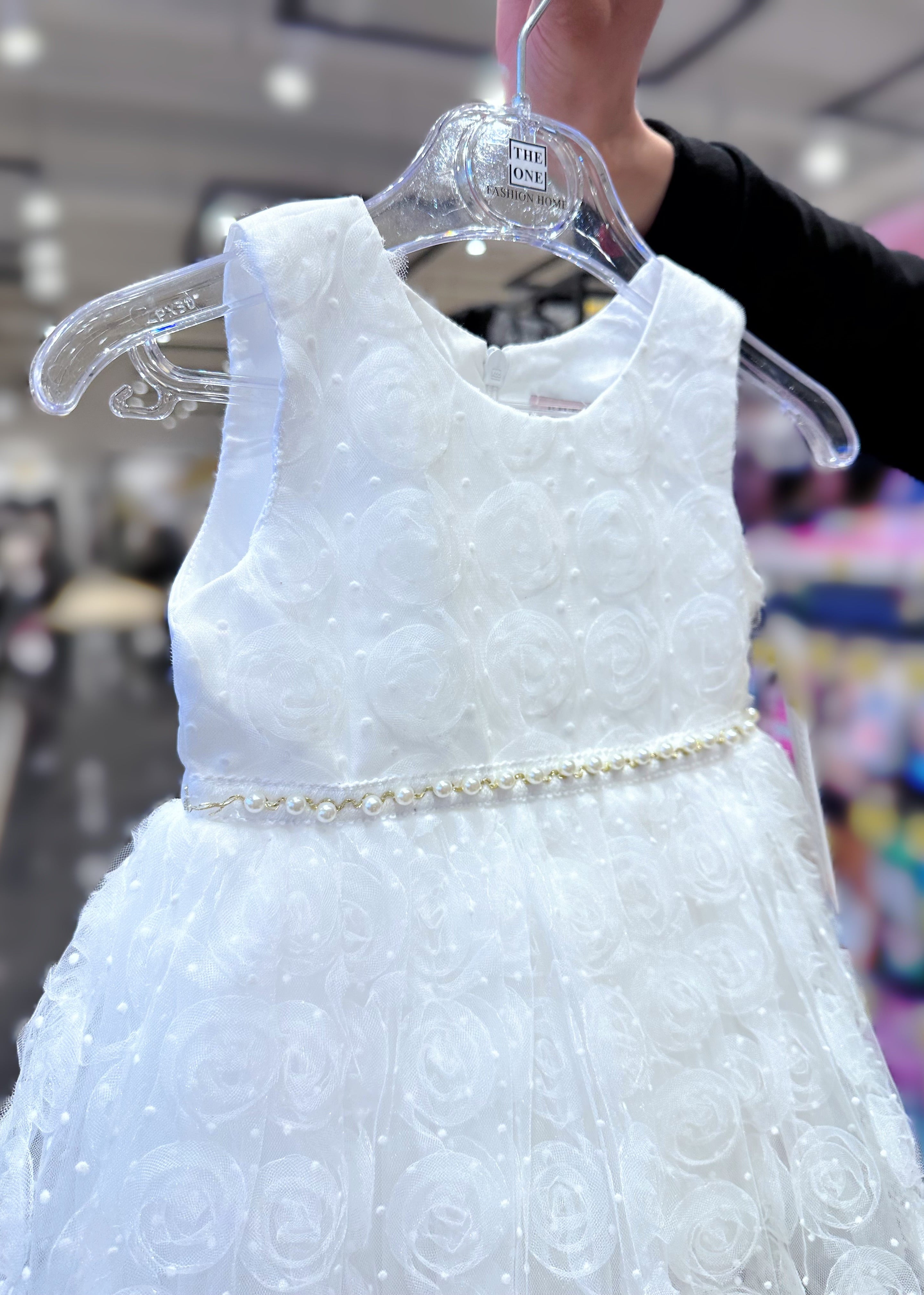 Elegante abito da cerimonia bambina 6 mesi–12 anni in bianco con tulle effetto rose 3D, raffinata cintura di perle e gonna vaporosa: perfetto per battesimo, comunione, matrimonio, compleanno e foto speciali.