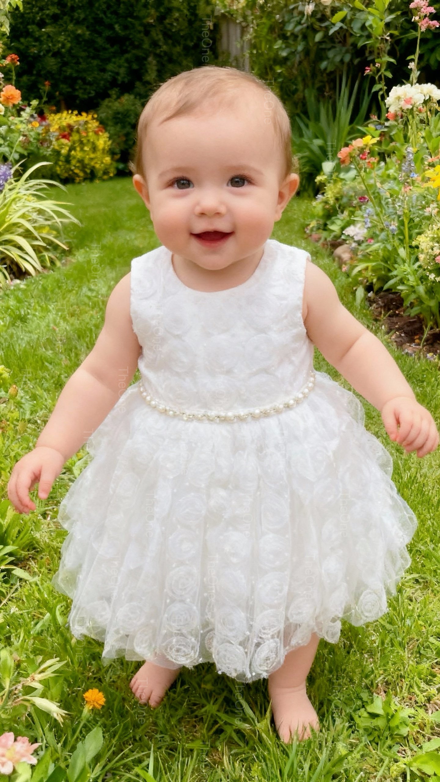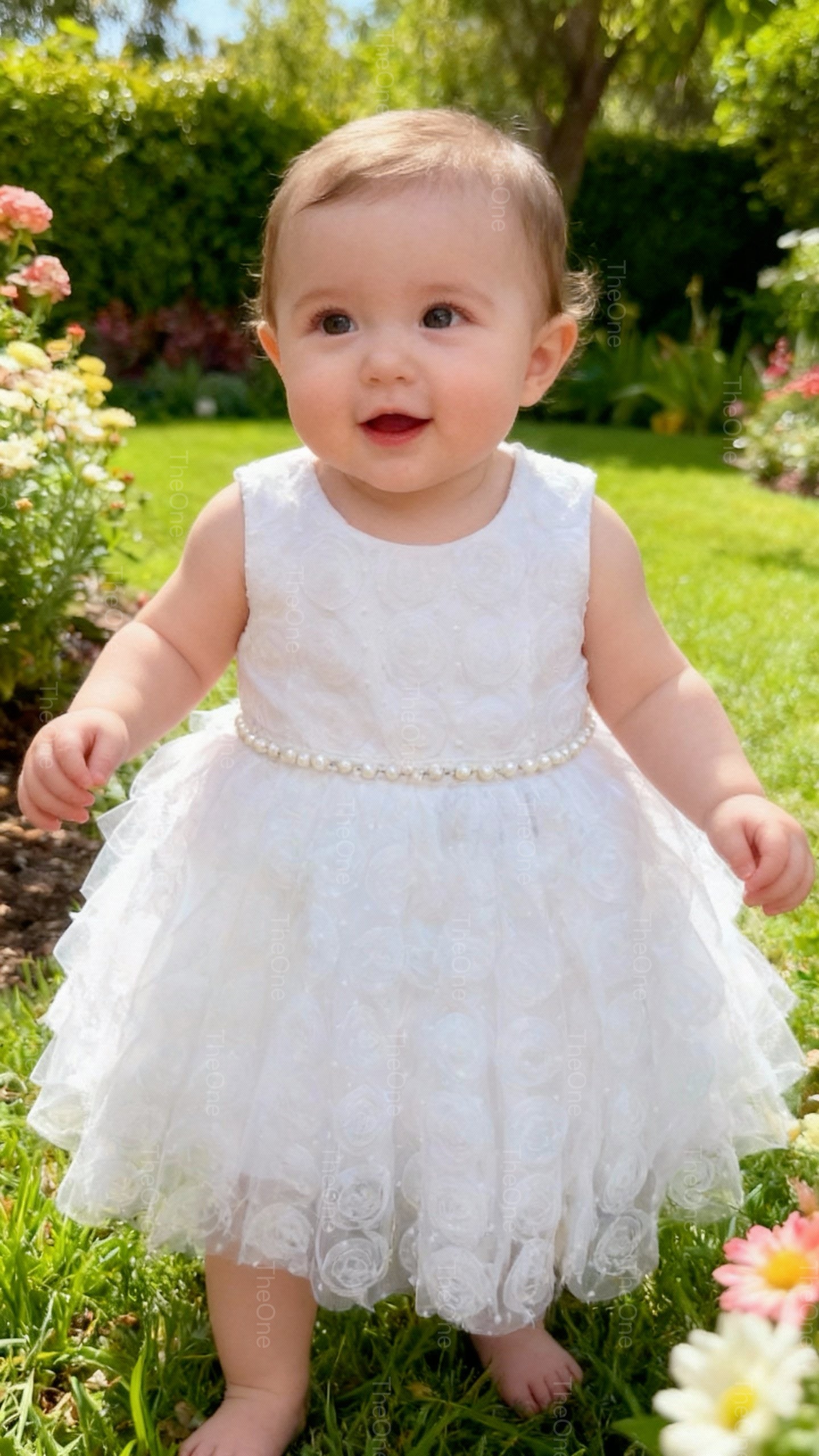 Abito da Battesimo Bambina Bianco 6M–12 Anni – Tulle con Rose 3D e Cintura di Perle | Cerimonia Compleanno 6678 678