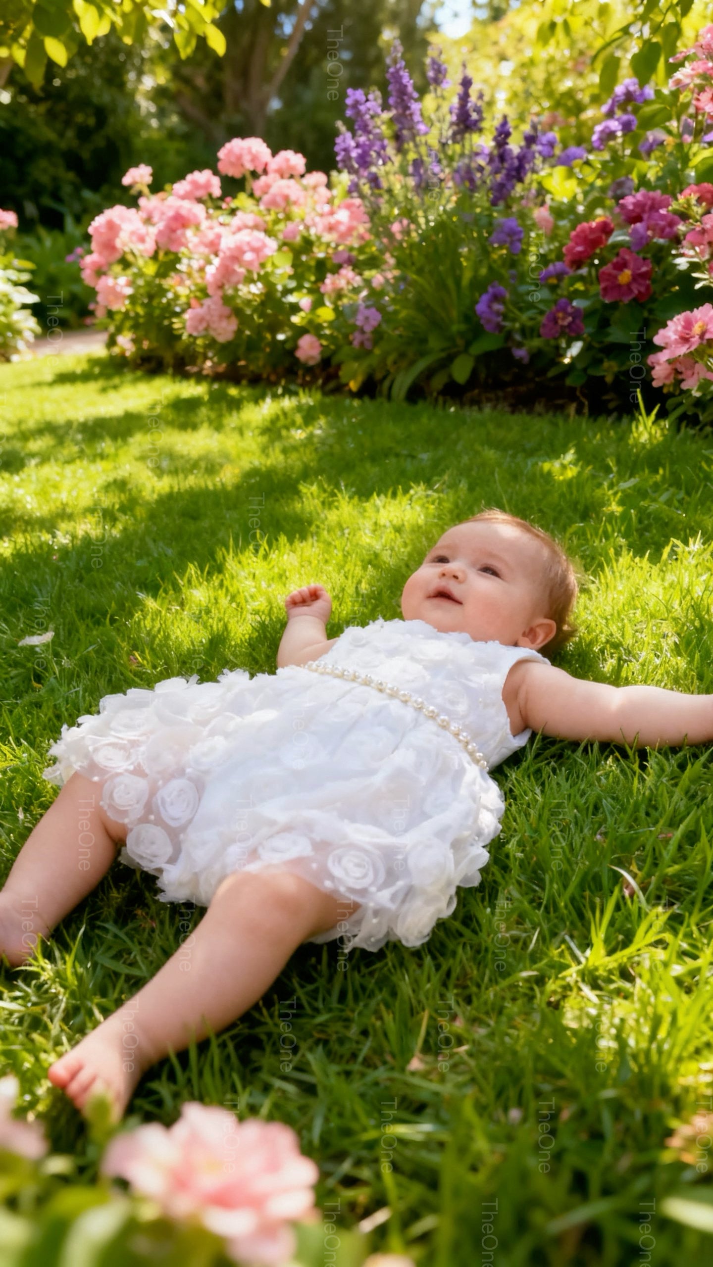 La cintura con dettagli in perle valorizza il punto vita e aggiunge un tocco prezioso, mentre la gonna ampia e leggera crea un look “principessa” perfetto per cerimonie, feste e servizi fotografici.