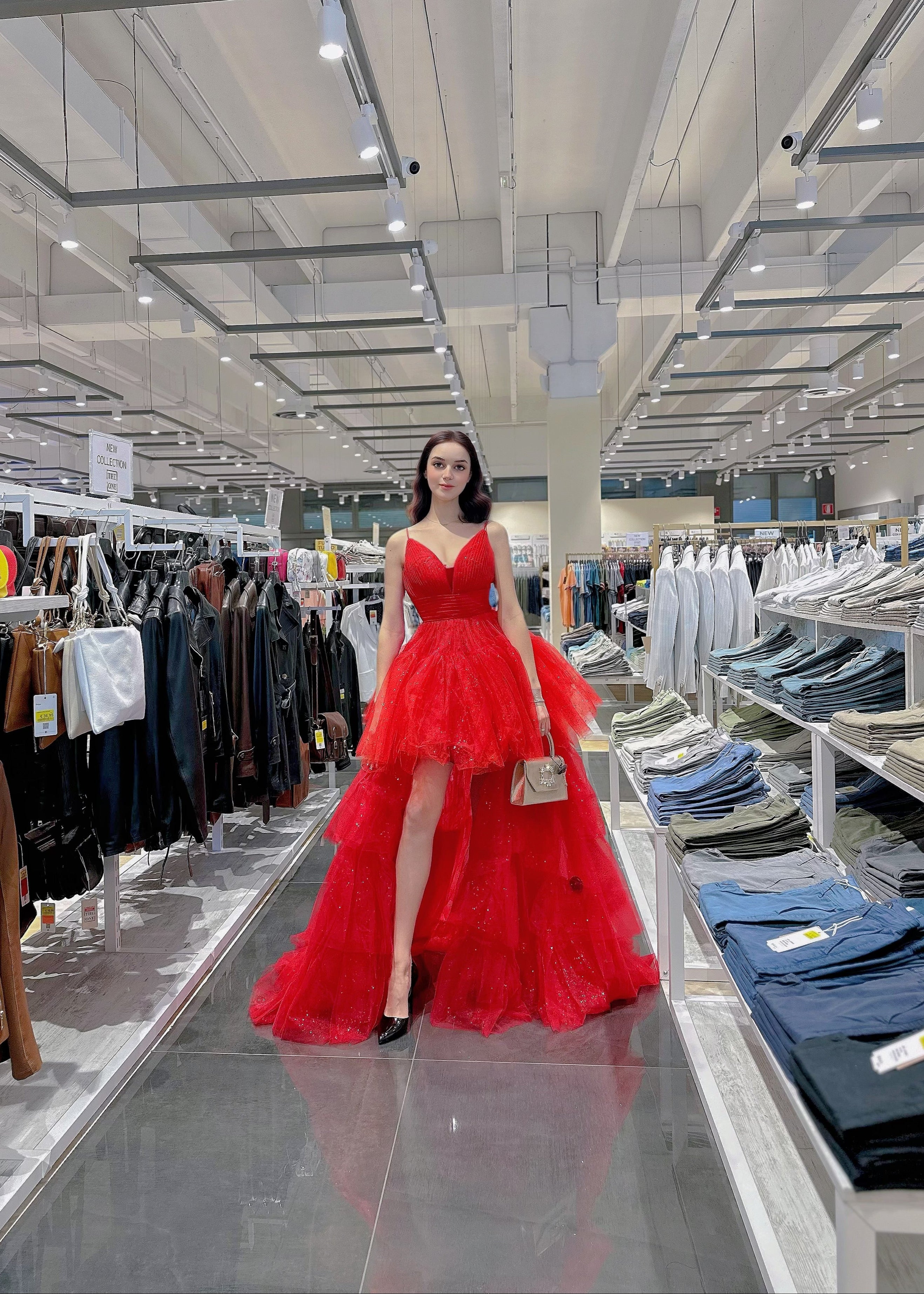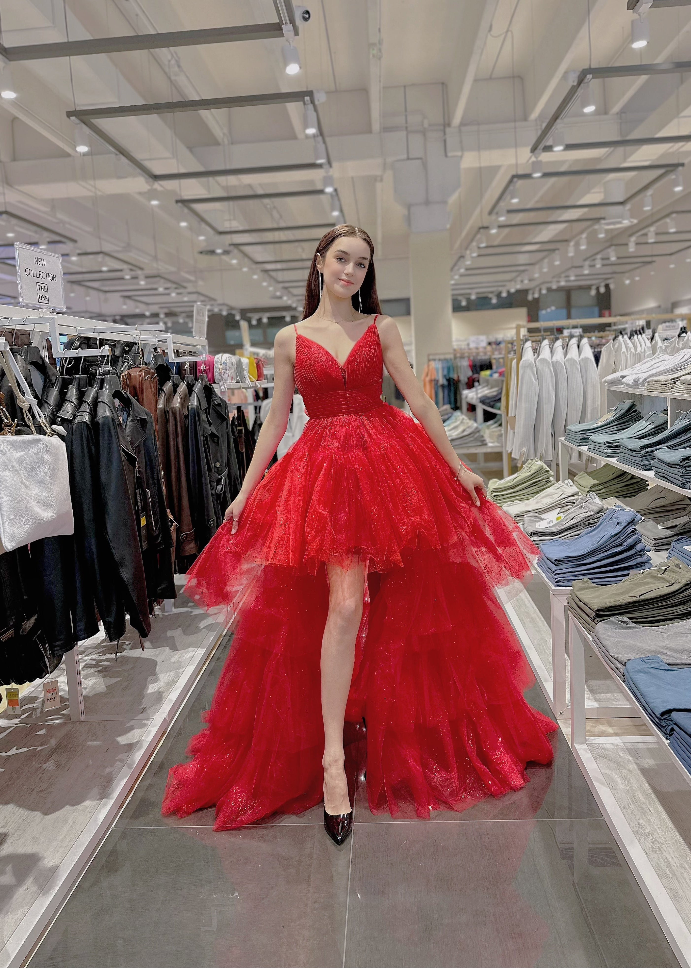 Scopri il perfetto equilibrio tra eleganza e versatilità con il nostro abito da sera trasformabile. Questo splendido abito rosso è progettato per adattarsi a ogni occasione speciale: indossalo lungo per un look regale, oppure rimuovi la gonna per trasformarlo in un mini abito audace e chic.