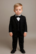 Completo Cerimonia Bambino 5 Pezzi – Abito Elegante Nero con Giacca, Gilet, Camicia, Pantaloni e Papillon 4-14Anni A07 TheOn