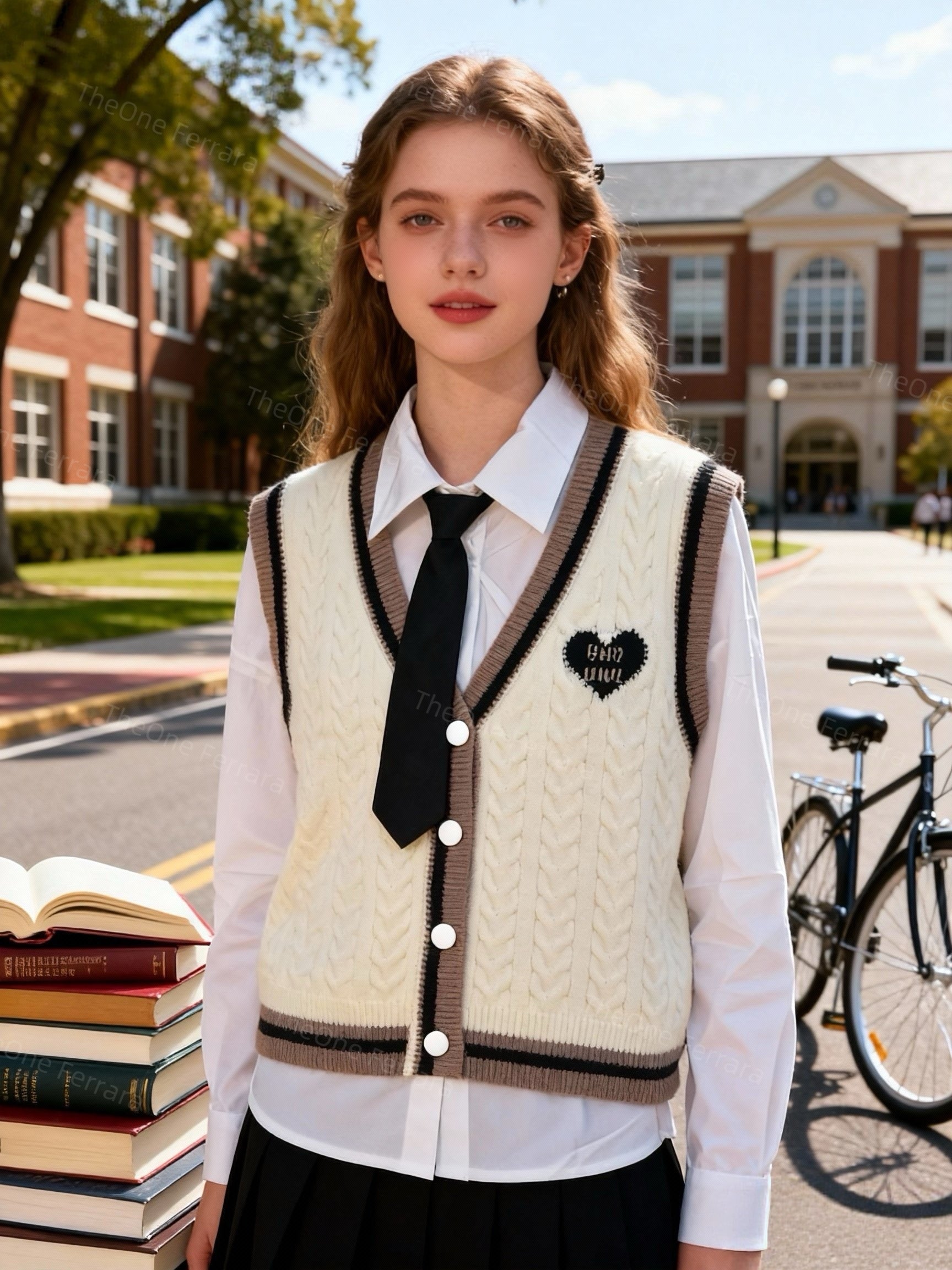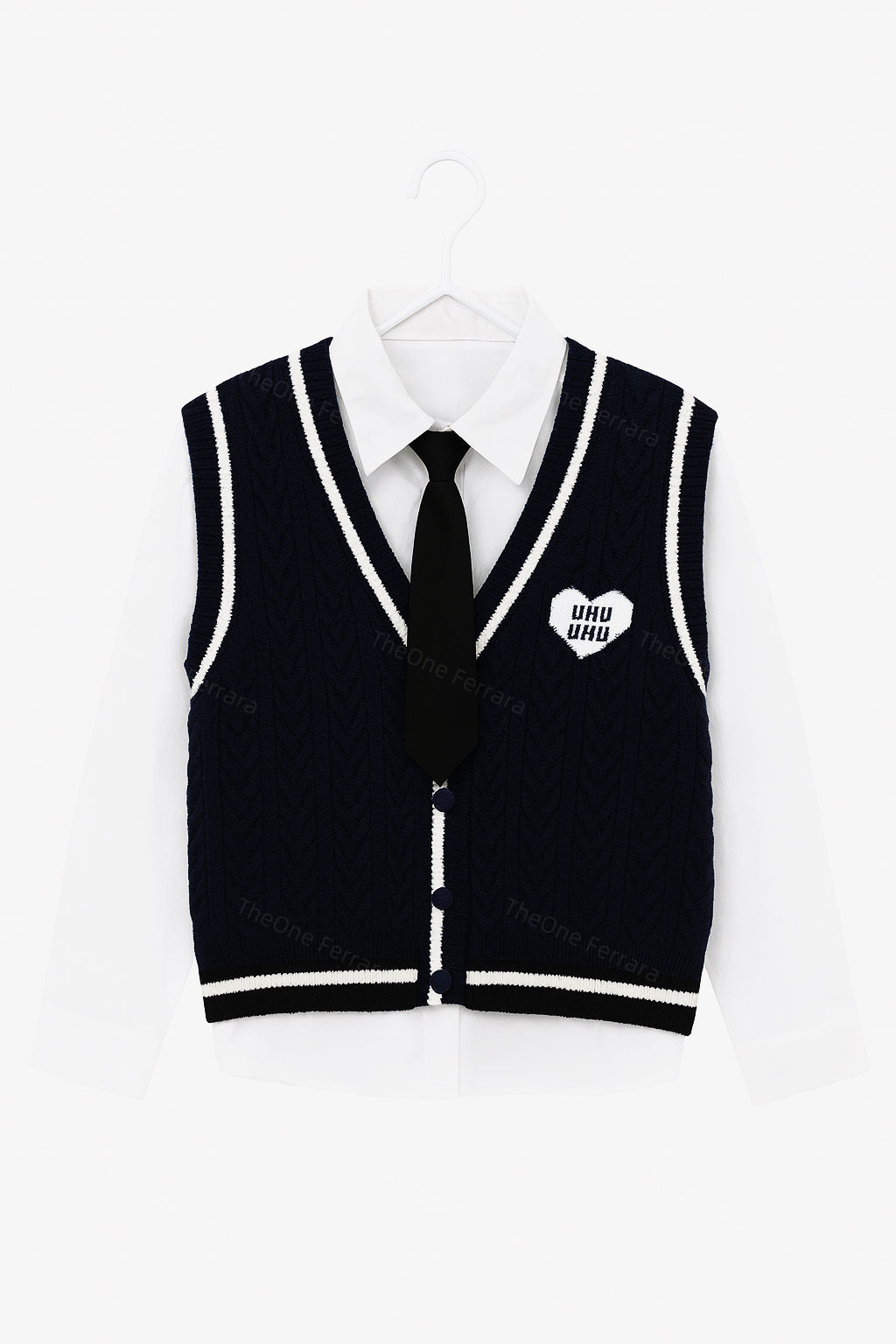 Completo Donna 3 Pezzi con Gilet in Maglia, Camicia e Cravatta – Stile College Mod. TC-1888-TheOne