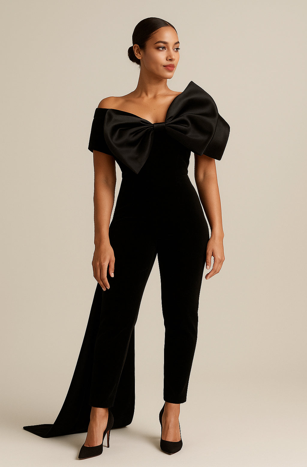 Eleganza Iconica – Tuta da Sera con Fiocco Oversize