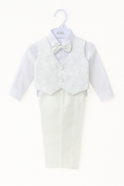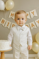 Elegante frac neonato colore bianco, completo cerimonia 5 pezzi per bambini da 3 a 36 mesi. Perfetto per battesimo, feste ed eventi speciali.
