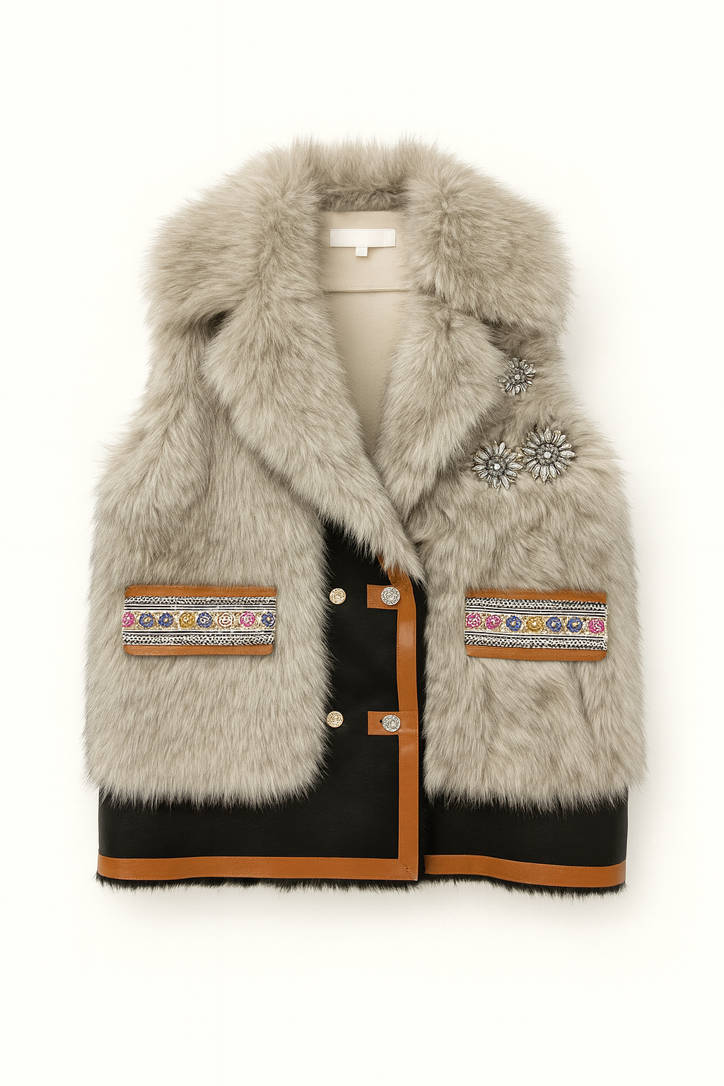 Gilet Donna in Ecopelliccia con Dettagli Gioiello e Inserti effetto Pelle – Elegante e Caldo | DL30061-TheOne