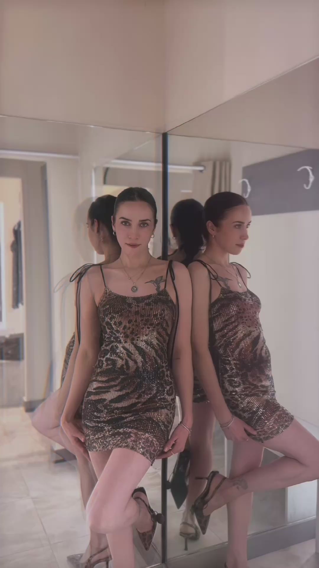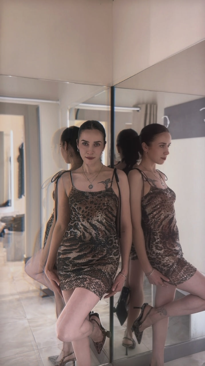 Mini abito leopardato con spalline – Il must-have per regine della notte