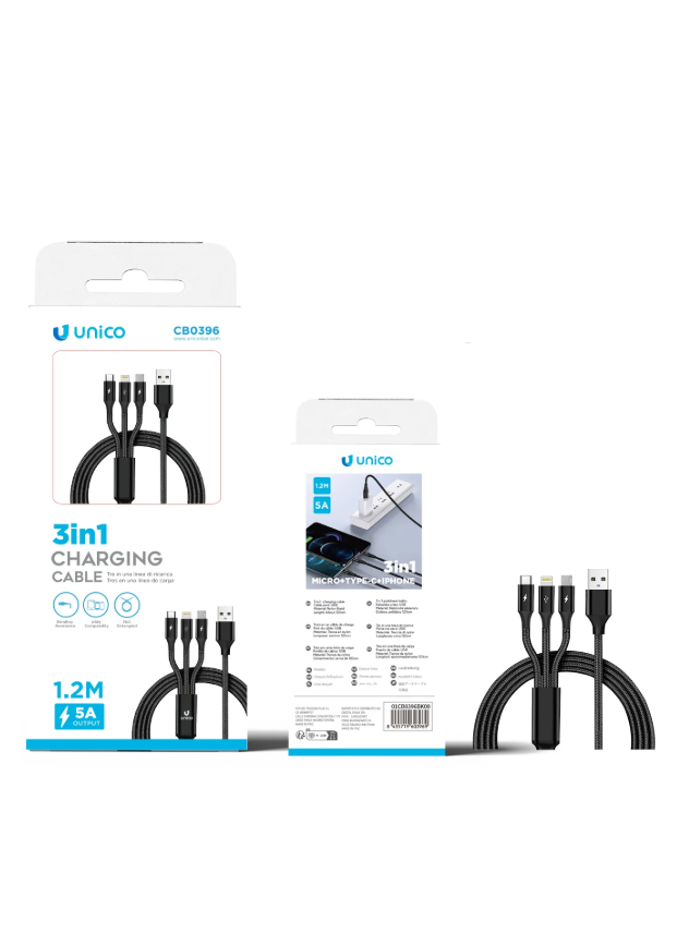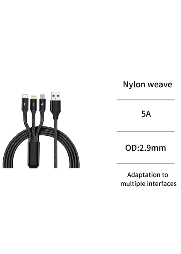 Cavo dati USB-a a micro+c+l 5a 3 in 1 da 1,2 m