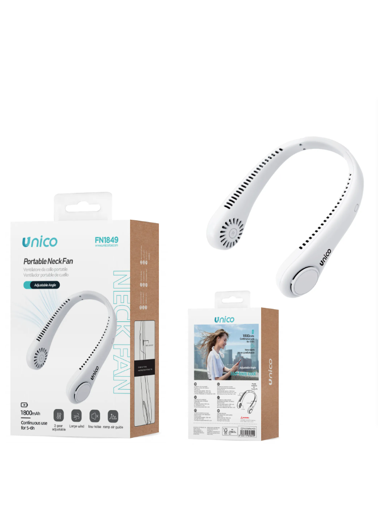 Il ventilatore portatile da collo FN1849 è la soluzione perfetta per affrontare le giornate calde. Leggero, flessibile e silenzioso, ti segue ovunque: in ufficio, in palestra, durante una passeggiata o in viaggio.