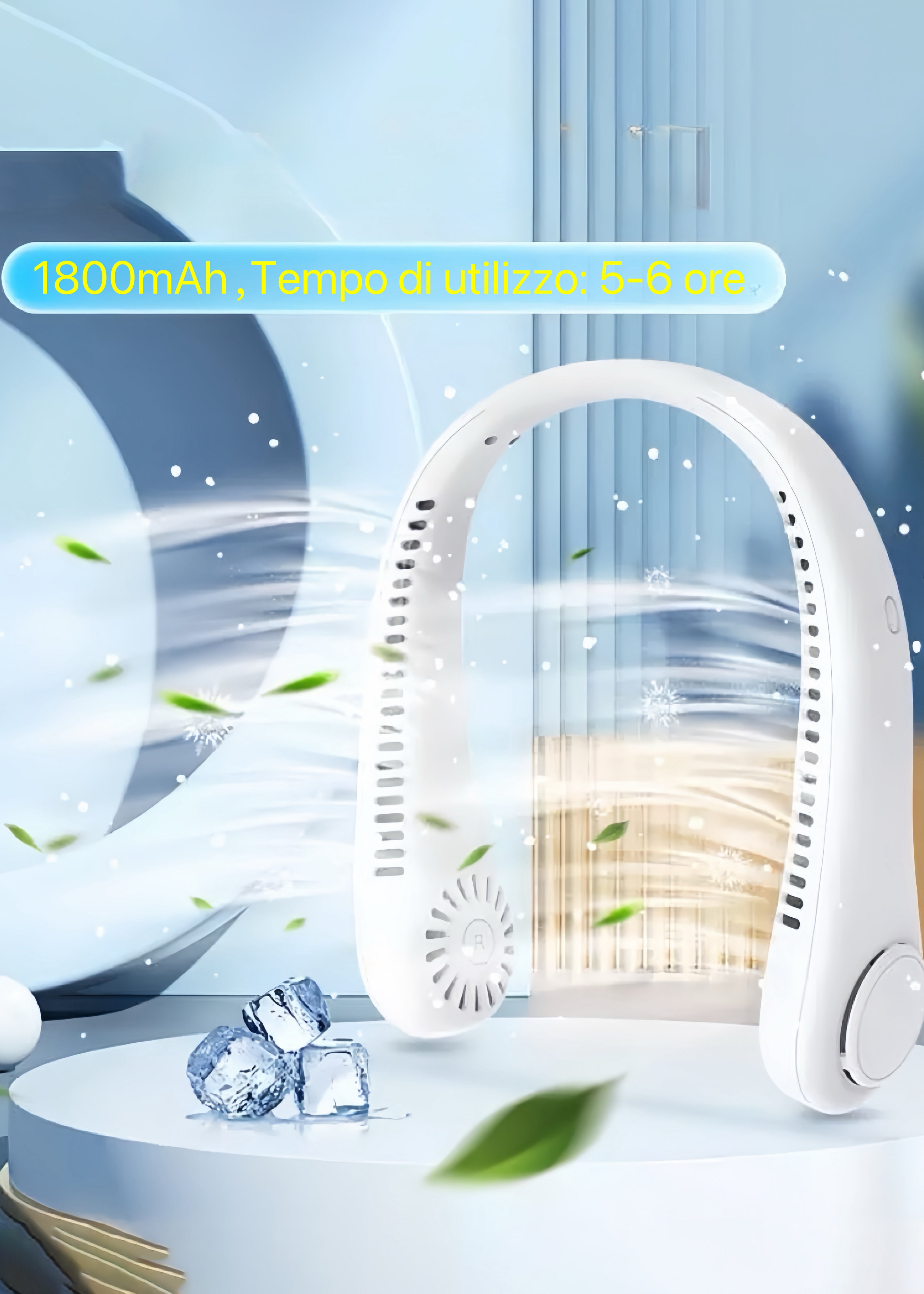 Ventilatore Portatile da Collo FN1849 - Silenzioso, 3 Velocità, Angolo Regolabile, 1800mAh