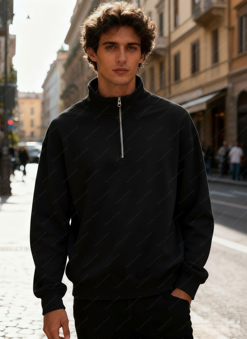 Felpa Unisex con Mezza Zip Foderata in Pile - Pullover Caldo Invernale