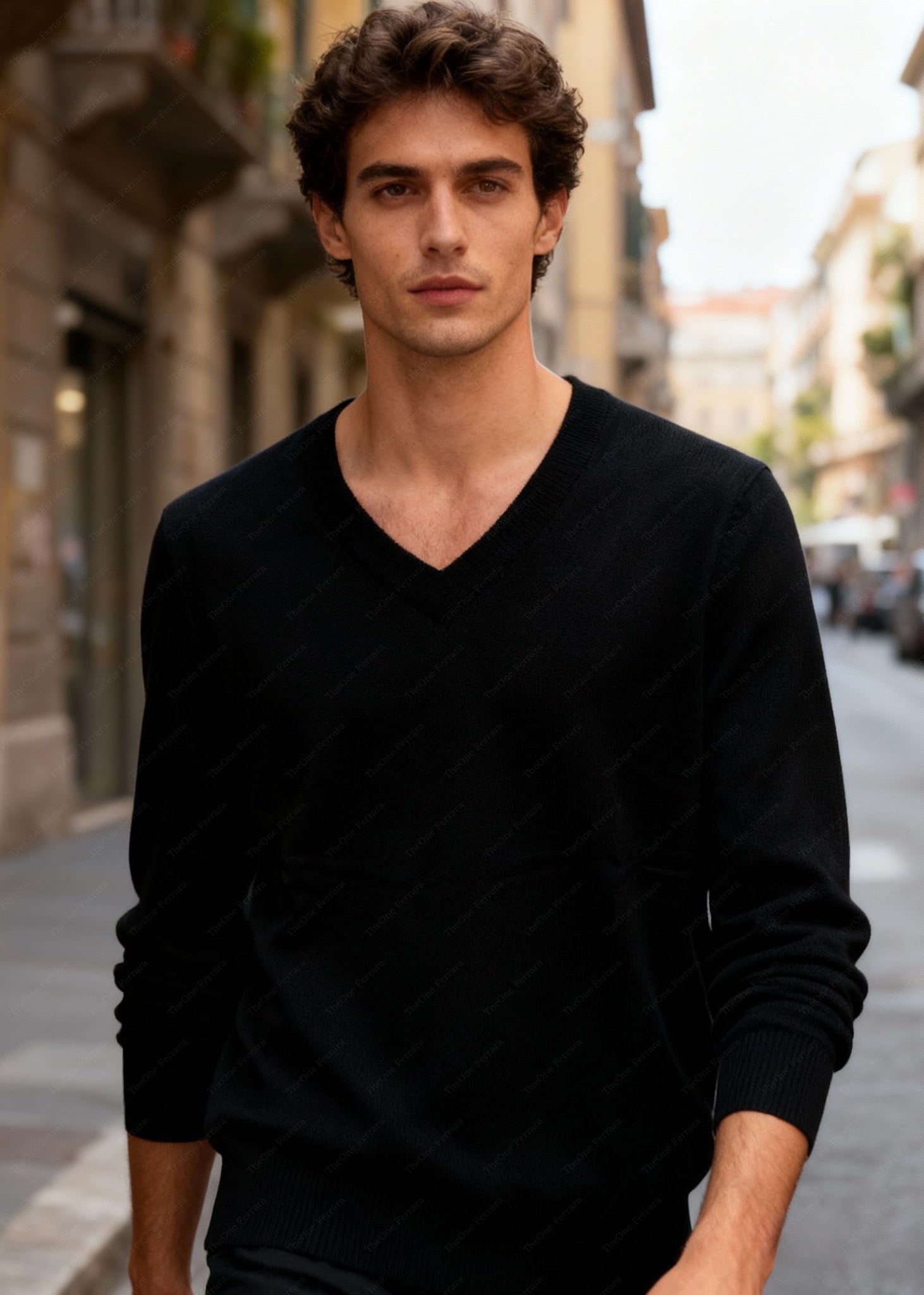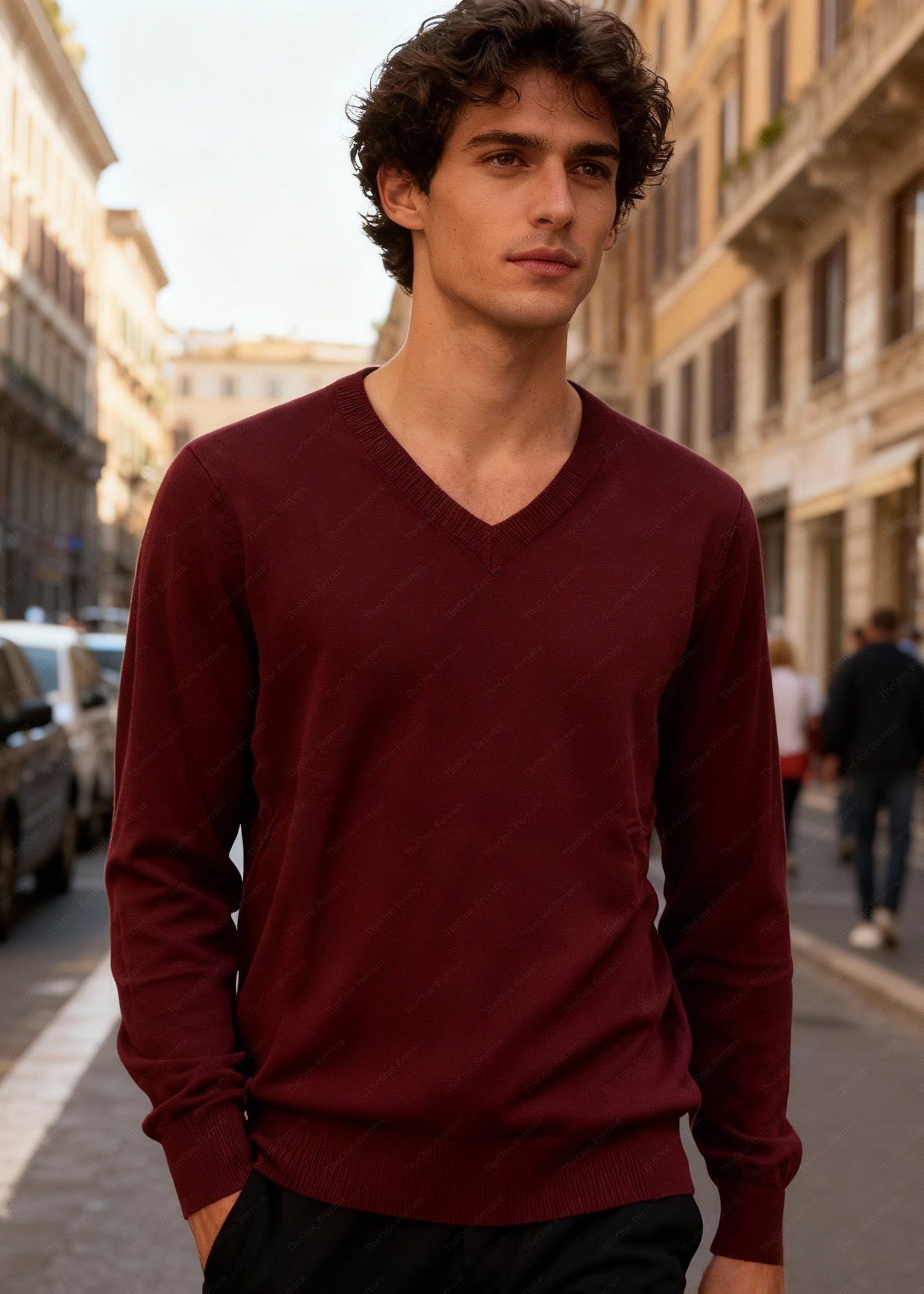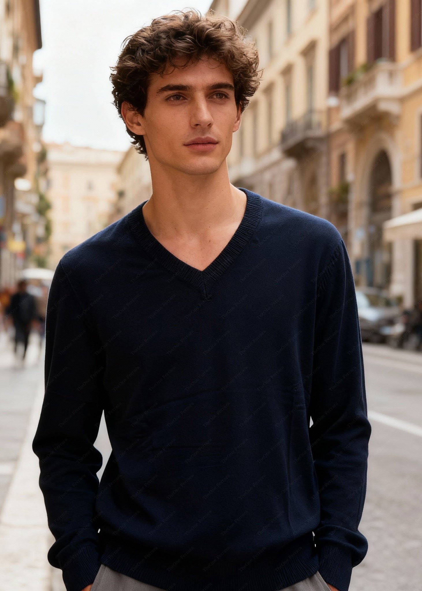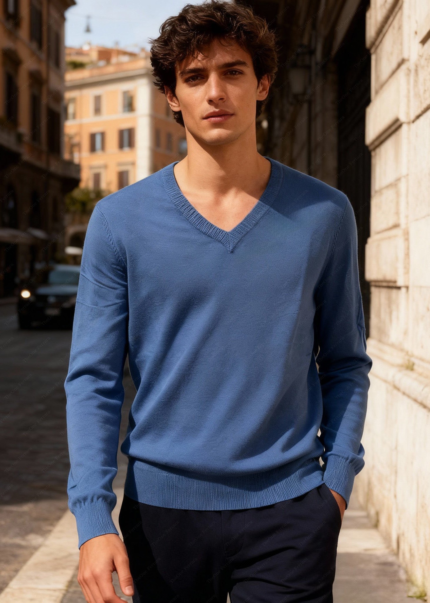 Questo maglione uomo con scollo a V è il capo essenziale per un guardaroba maschile moderno. Realizzato con una miscela premium di fibre naturali e sintetiche, offre comfort eccezionale, elasticità e stile raffinato per ogni stagione.
